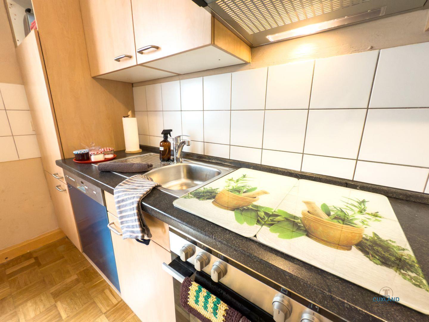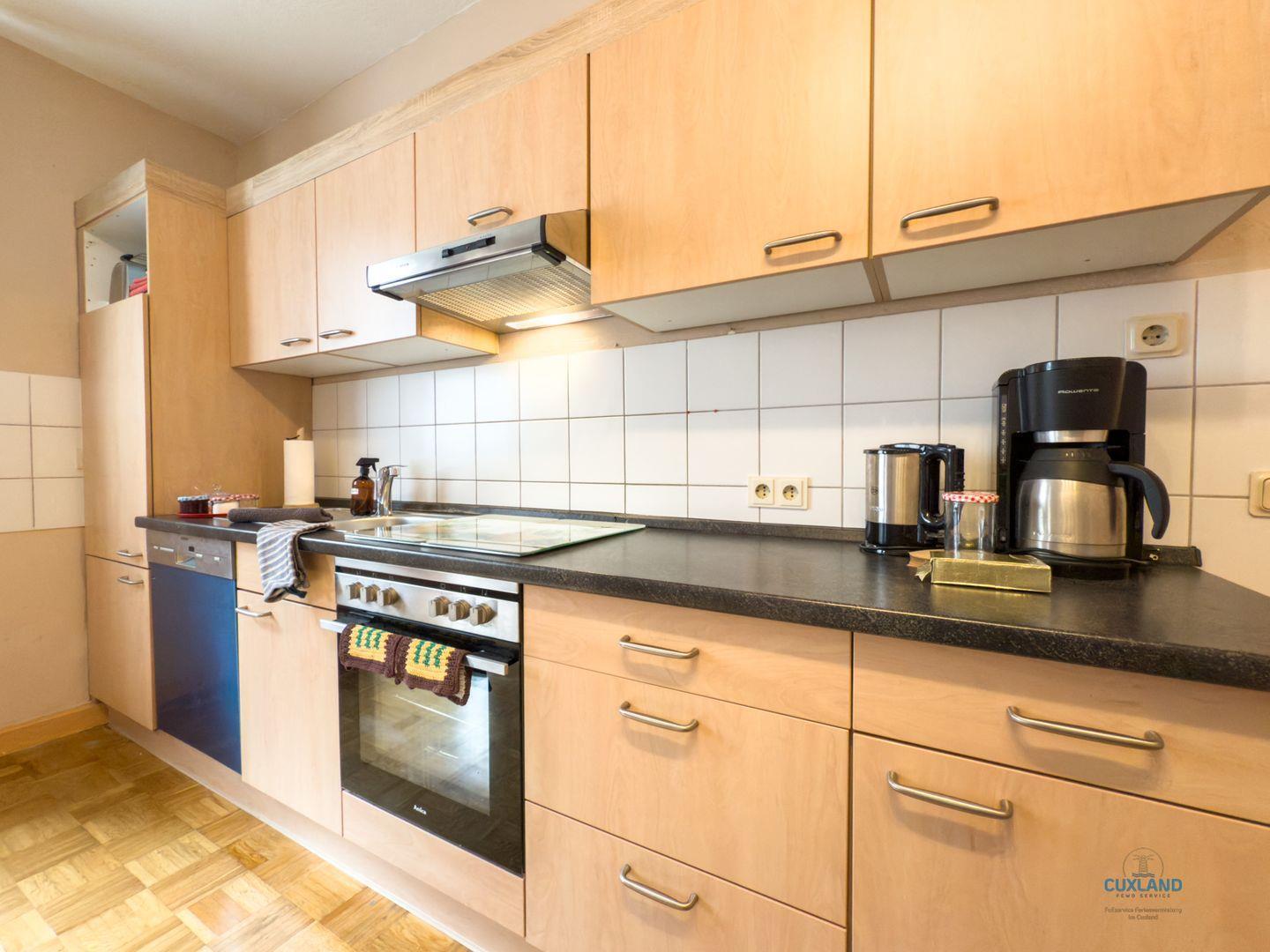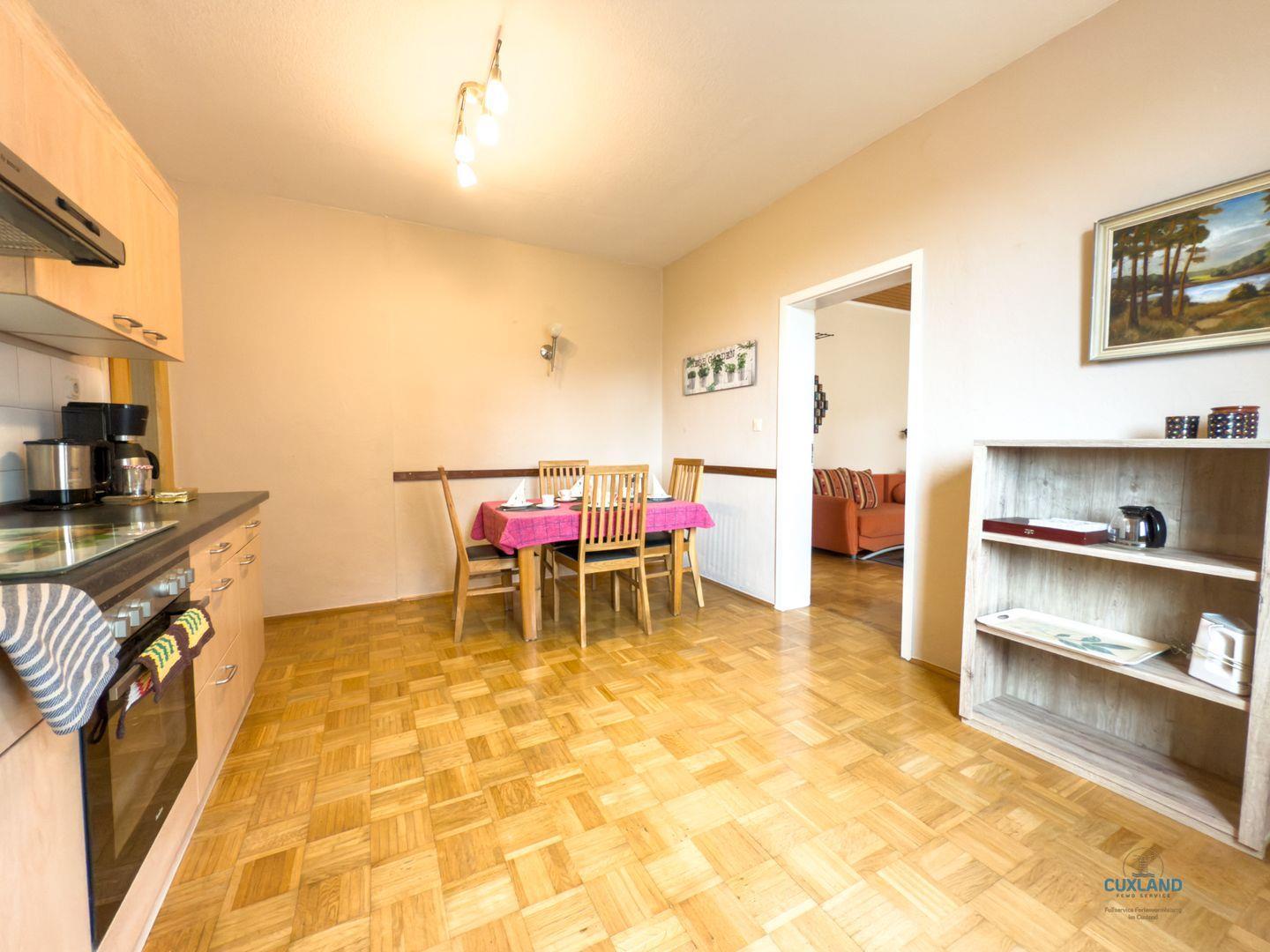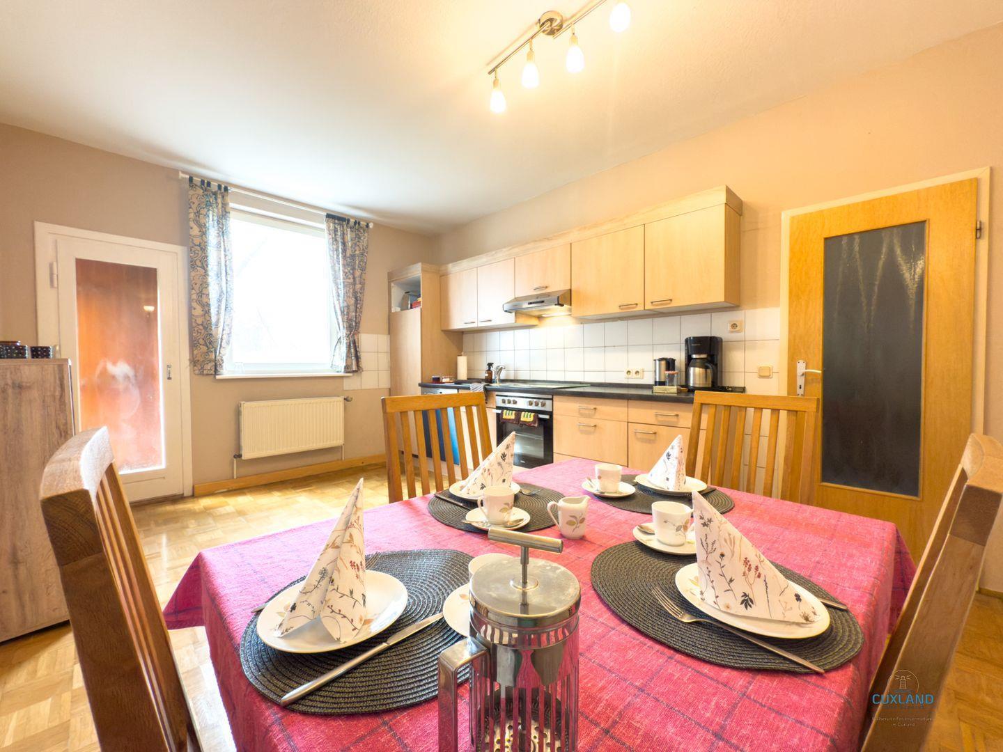 Die stilvolle Einrichtung verbindet modernen Komfort mit historischem Flair und sorgt dafür, dass sich Gäste sofort wohlfühlen. Der großzügige Wohnbereich ist mit Parkett ausgestattet und bietet eine bequeme Sofaecke, perfekt für gemütliche Abende vor dem Fernseher. Darüber hinaus sorgt der grosse Esstisch dafür, dass die ganze Familie zusammen die Mahlzeiten genießen kann. Für die kulinarischen Bedürfnisse steht Ihnen eine komplett ausgestattete, geschlossene Küche mit einem weiteren Essplatz zur Verfügung. Diese ist mit einem modernen Cerankochfeld, einem Elektrobackofen, einem Kühlschrank mit Gefrierfach, einer Spülmaschine sowie allen notwendigen Küchenutensilien ausgestattet.