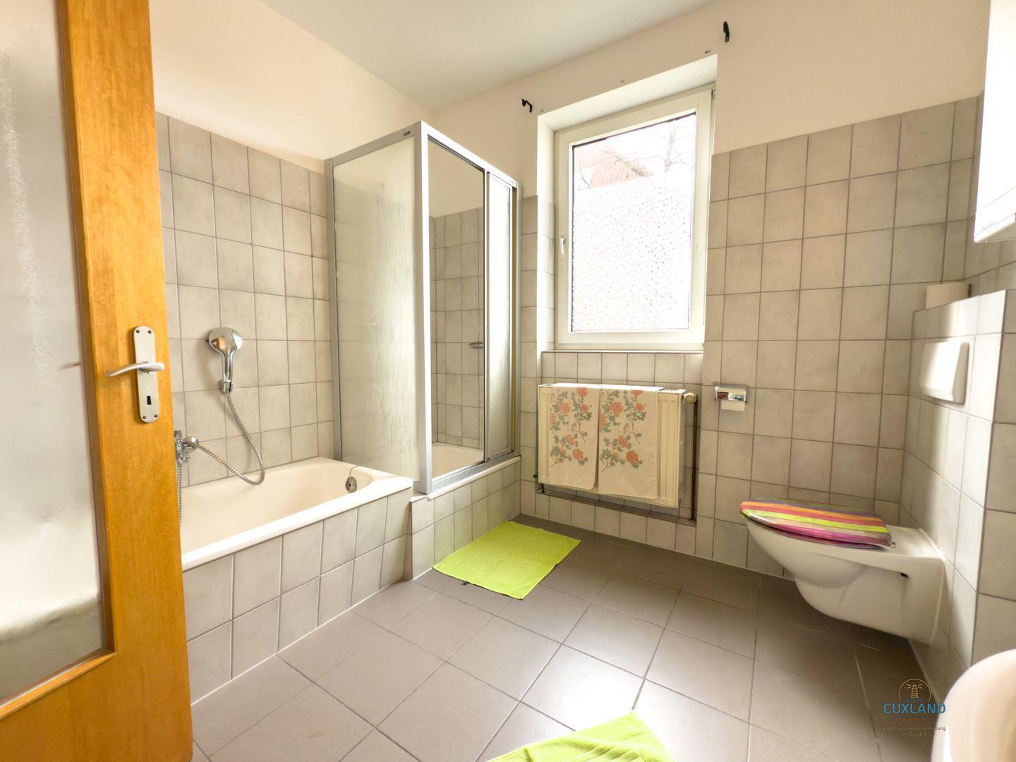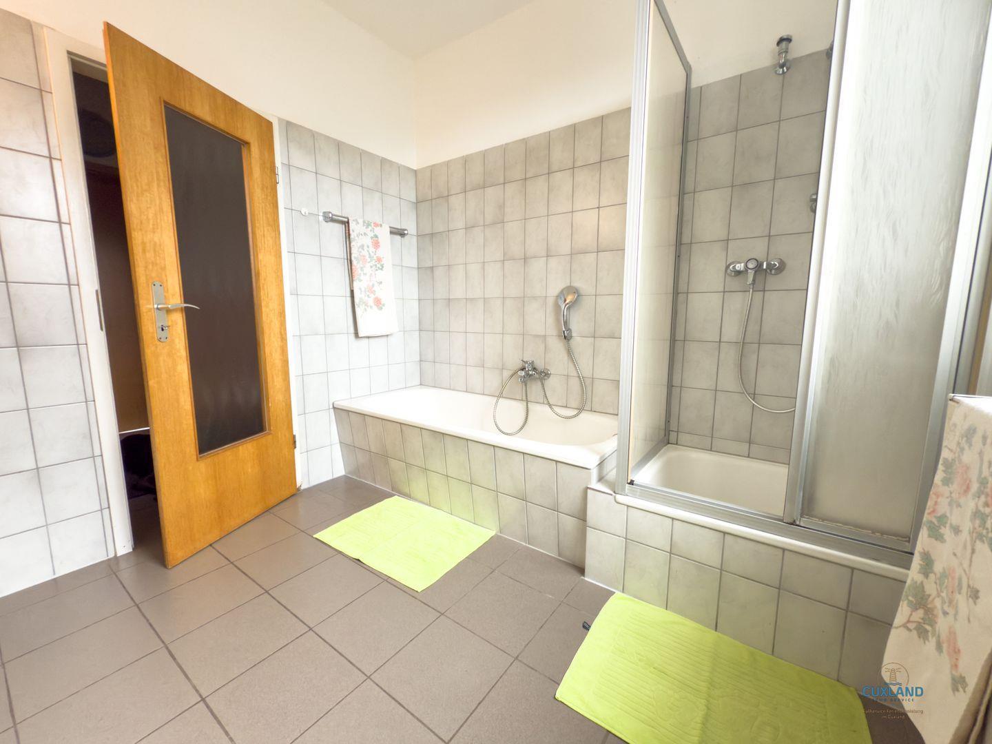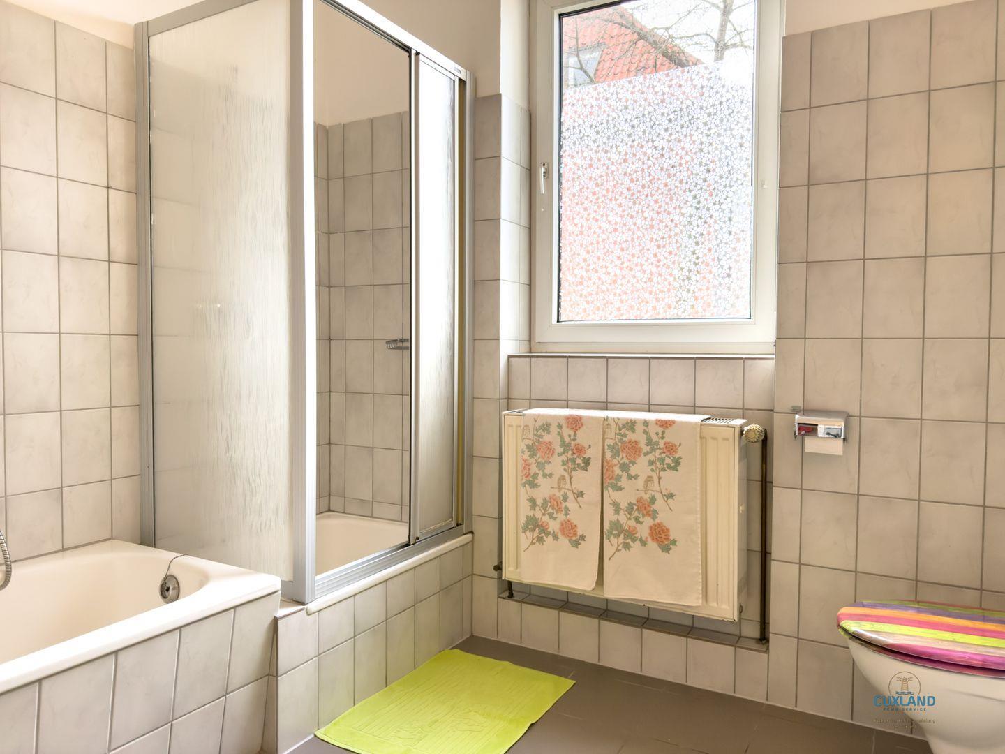 Die beiden Schlafzimmer sind komfortabel gestaltet und mit Laminatboden versehen. Das Badezimmer ist mit einer Dusche sowie einer Badewanne ausgestattet und bietet durch ein helles Fenster ausreichend Licht.