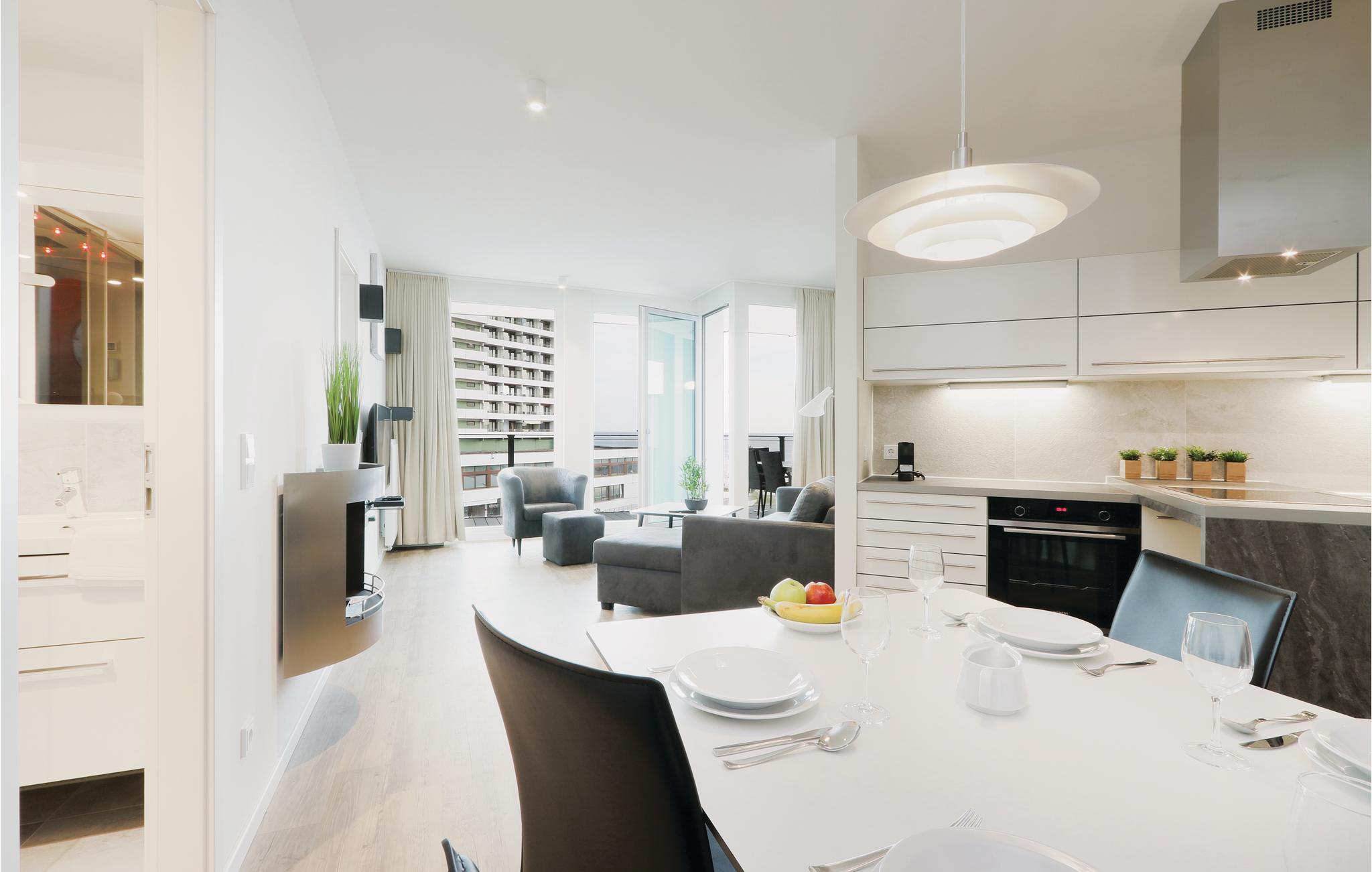 Disse eksklusive ferielejligheder ligger i Lejlighedskomplekset High End hvor kvalitetsindretning, design og en direkte beliggenhed lige ud til stranden i Lübeck Travemünde går op i en højere enhed. Her vil I straks føle jer godt tilpas og hjemme.