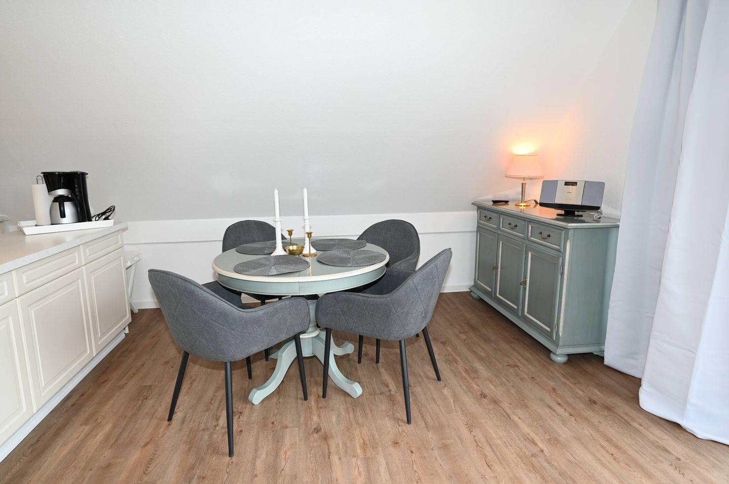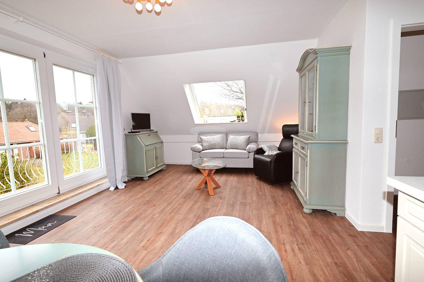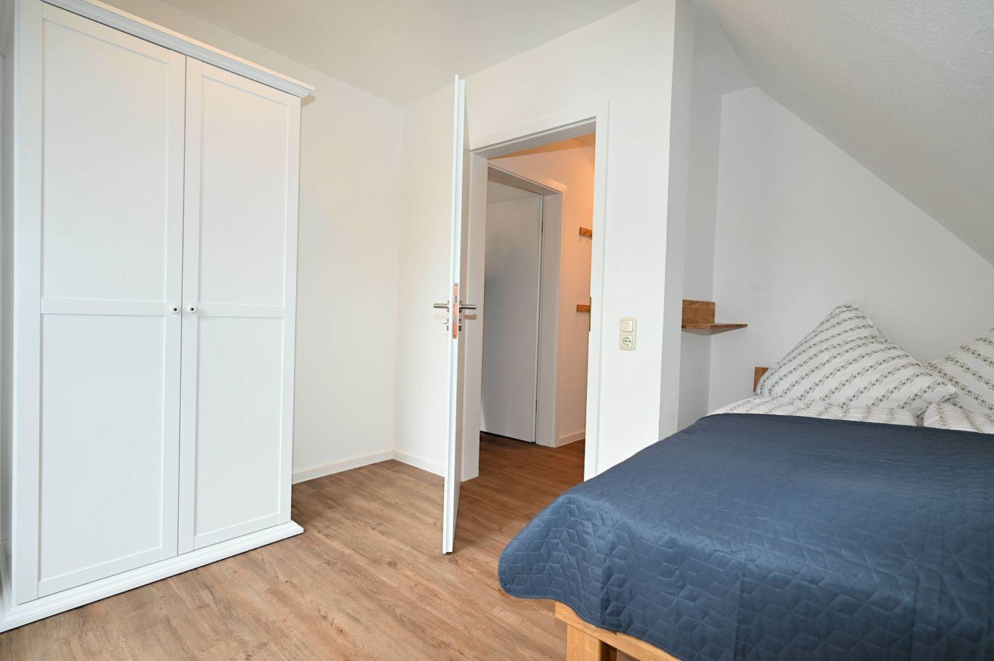 Die 3-Zimmer-Ferienwohnung ist für 4 Personen ausgelegt. Sie besteht aus einem offenen Wohn- und Essbereich mit integrierter Küche, die bestens ausgestattet ist: Backofen, Mikrowelle, Kühlschrank mit Gefrierfach, Kaffeemaschine, Wasserkocher, Toaster und Herd. Der Wohnbereich lädt mit einem gemütlichen Sofa und einem bequemen Sessel auch in den Abendstunden zum Verweilen ein. Beide Schlafzimmer verfügen über ein komfortables Doppelbett mit geräumigem Kleiderschrank und Nachttischlampen. Die Fenster in den Schlafzimmern lassen sich durch Verdunkelungsgardinen verdunkeln, sodass Sie in Ruhe ausschlafen können.