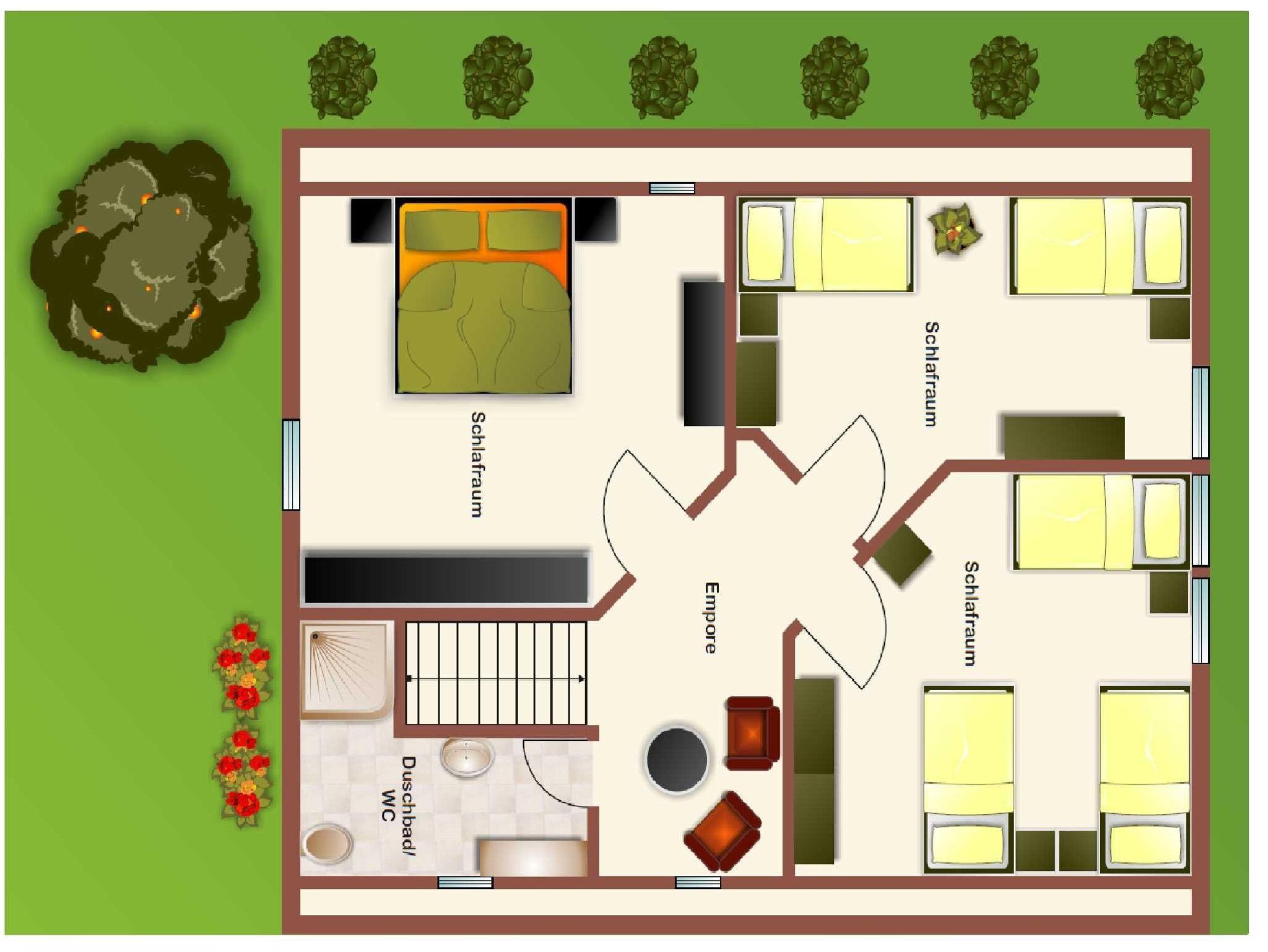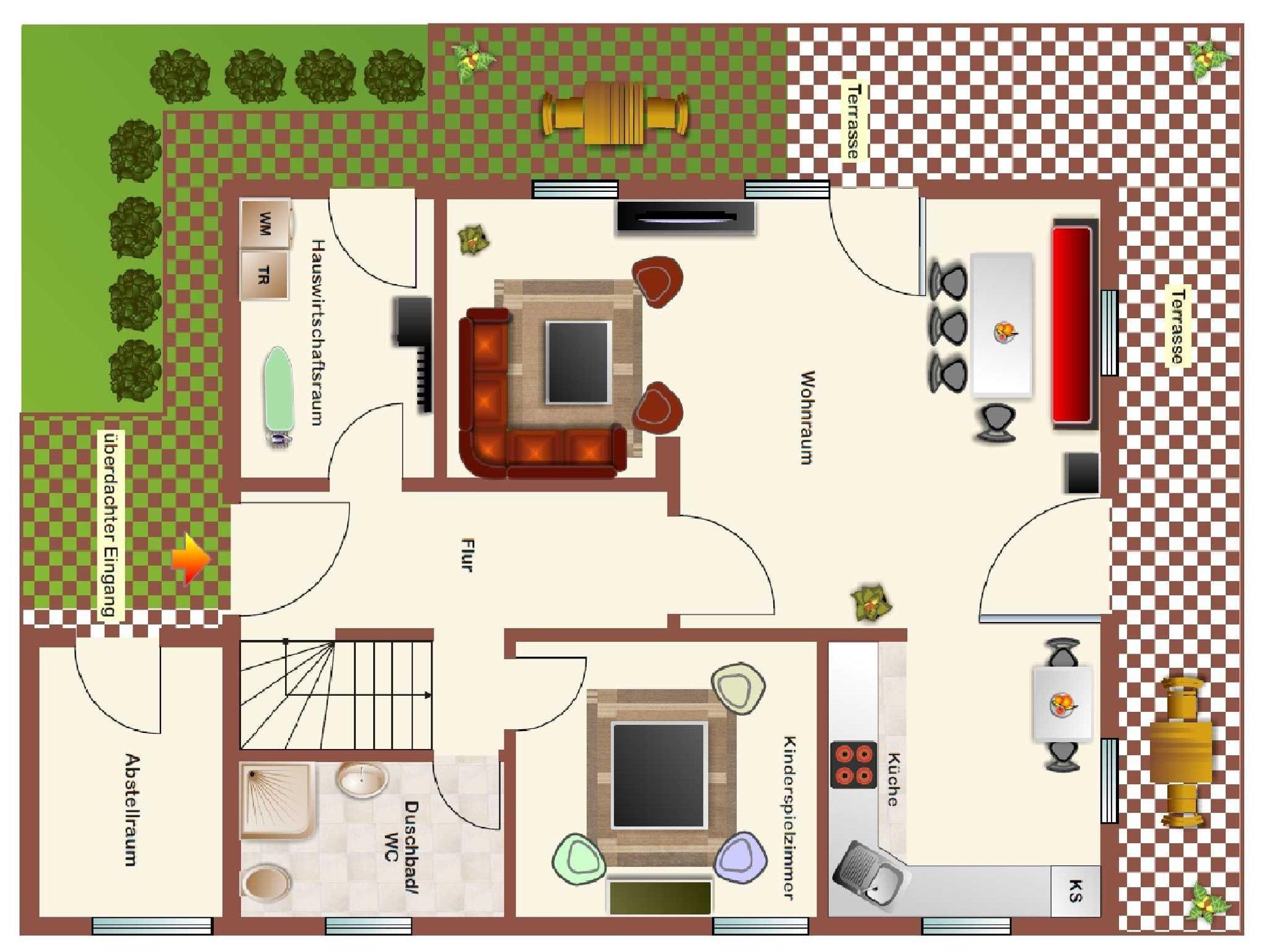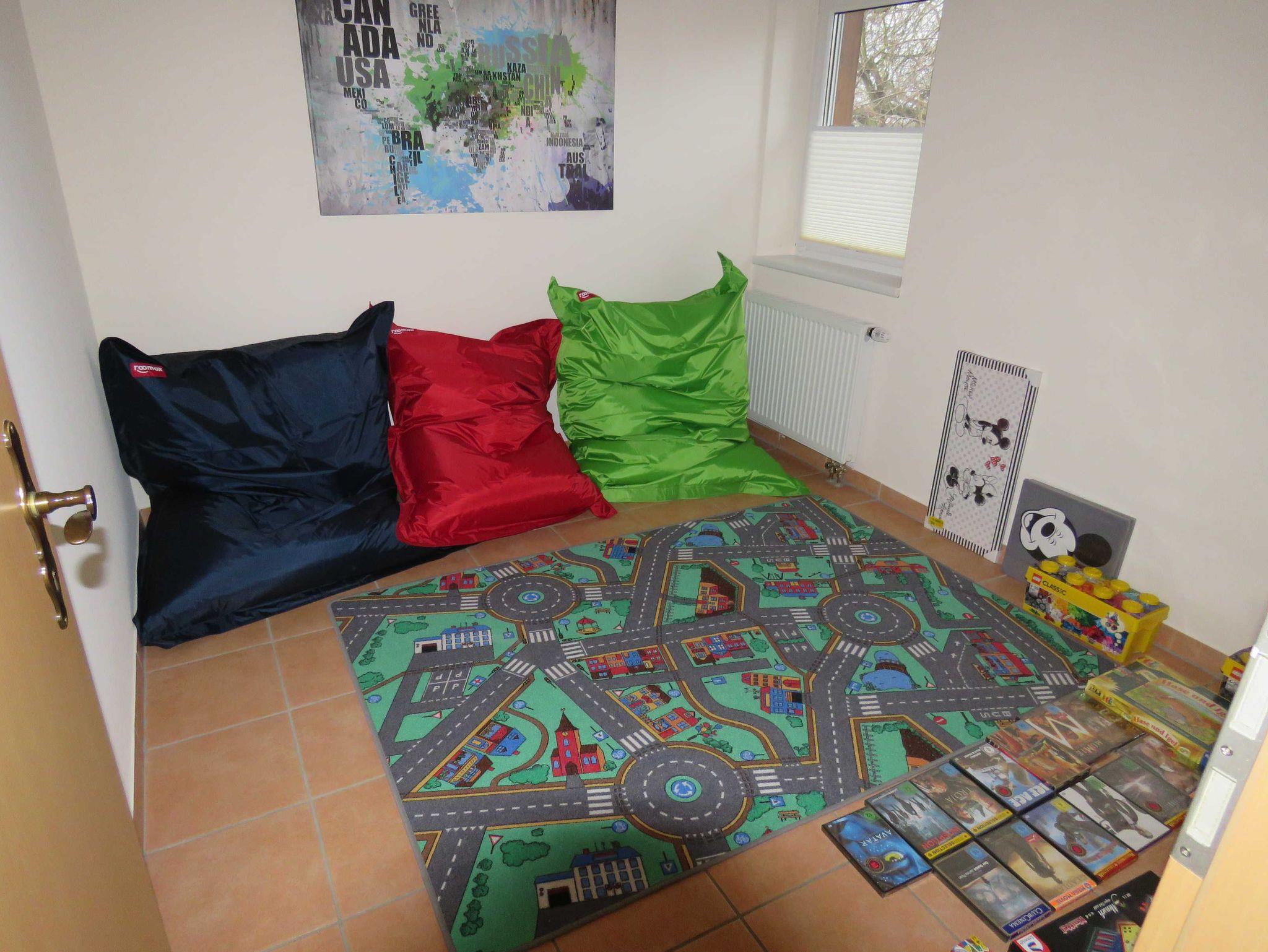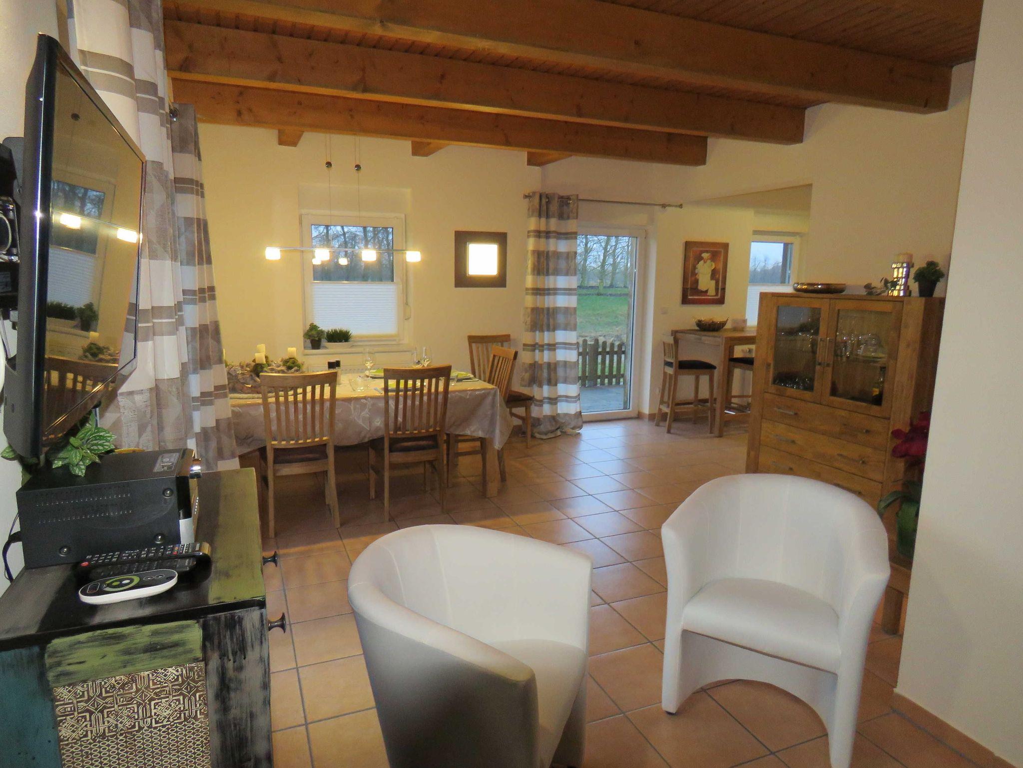 Das Ferienhaus Herbstprinz Nr. 331 gibt es nur einmal im Feriendorf - ein echtes Fachwerkhaus mit ca. 105 m² Wohn- und Nutzfläche. Der Herbstprinz kann mit bis zu 7 Personen (+1 Kleinkind im Kinderreisebett) belegt werden und befindet sich im absolut autofreien Teil unseres schönen Feriendorfes - ruhige Randlage mit Blick auf ein Gewässer und einen alten Obsthof. Das Haus verfügt über eine moderne, ansprechende und gehobene Ausstattung, da es Ende 2016 renoviert und neu eingerichtet wurde. Im Erdgeschoss befindet sich ein Hauswirtschaftsraum (mit Gaderobe, Waschmaschine, Trockner und Ausgang zur Terrasse), ein Badezimmer (Dusche/WC), das Spielzimmer (mit Spielen, Büchern, Playstation ...) und der geräumige Wohn/-Essraum (Zugang zur möblierten Terrasse) mit gemütlicher Sitzecke, großzügigem Esstisch und angrenzender Küche (Ceran-Kochfeld, Backofen, Kühlschrank/Gefrierfach, Mikrowelle und Spülmaschine) mit kleinem Bistro-Tisch. Zugang zur möblierten Terrasse vom Wohnraum. Vom überdachten Hauseingang gelangt man ebenfalls in den außenliegenden Abstellraum. Im Obergeschoss befinden sich ein Schlafraum mit einem Doppebett, ein Schlafraum mit zwei Einzelbetten, ein Schlafraum mit 3 Einzelbetten und ein weiteres Badezimmer (Dusche/WC). Alle Schlafräume, das Wohnzimmer und das Spielzimmer verfügen über ein Flachbild-TV. Für den Gepäcktransport befindet sich im Abstellraum ein Bollerwagen. Nichtraucherhaus - kostenloses WLAN - Haustiere erlaubt - Brötchenservice von Ostern bis Oktober!