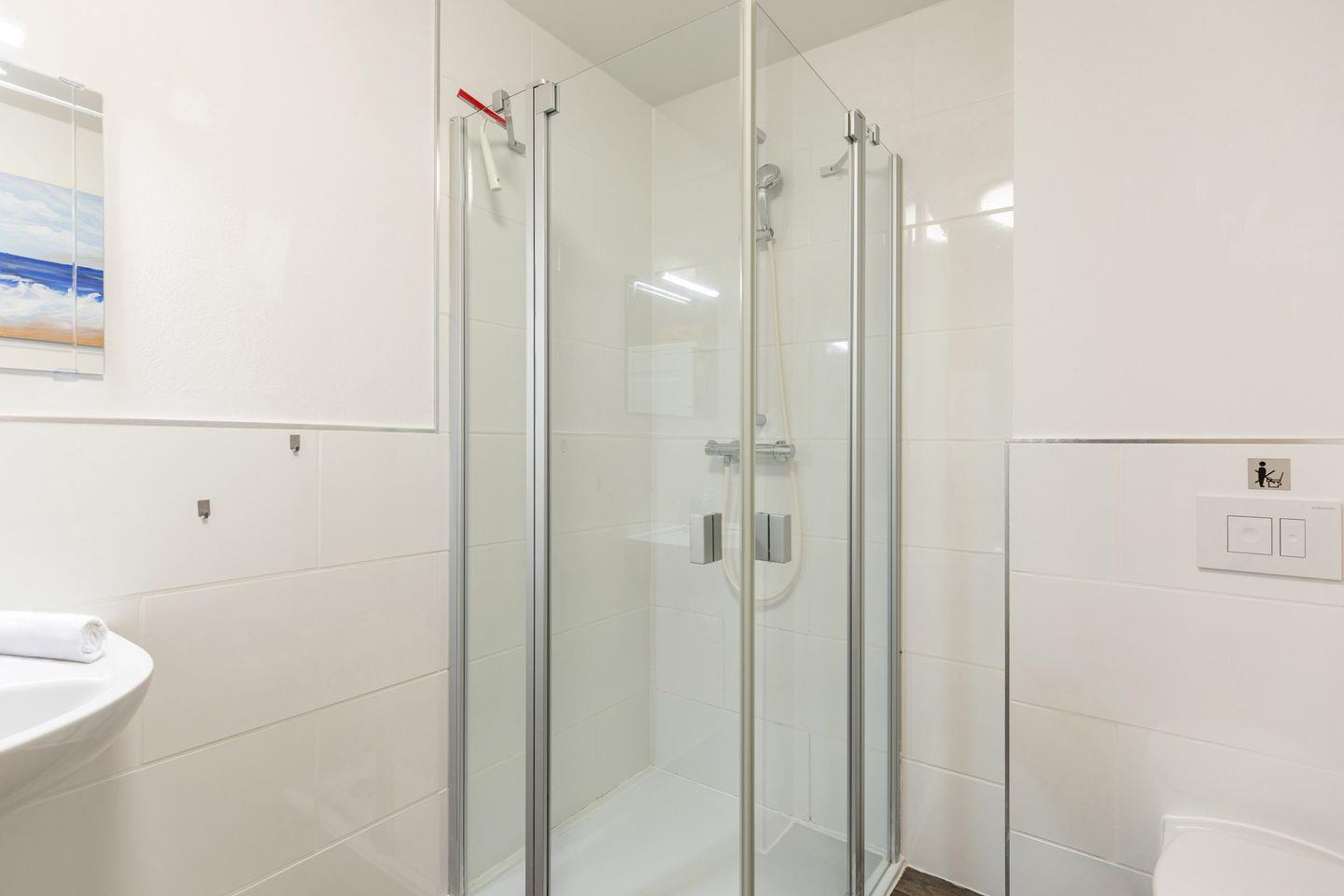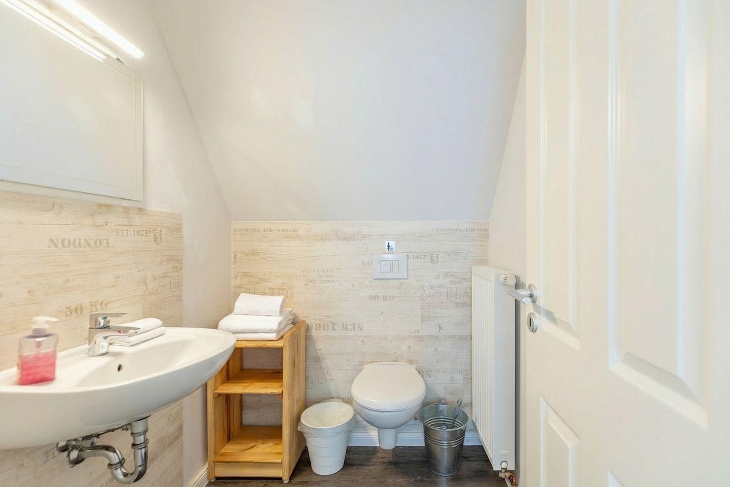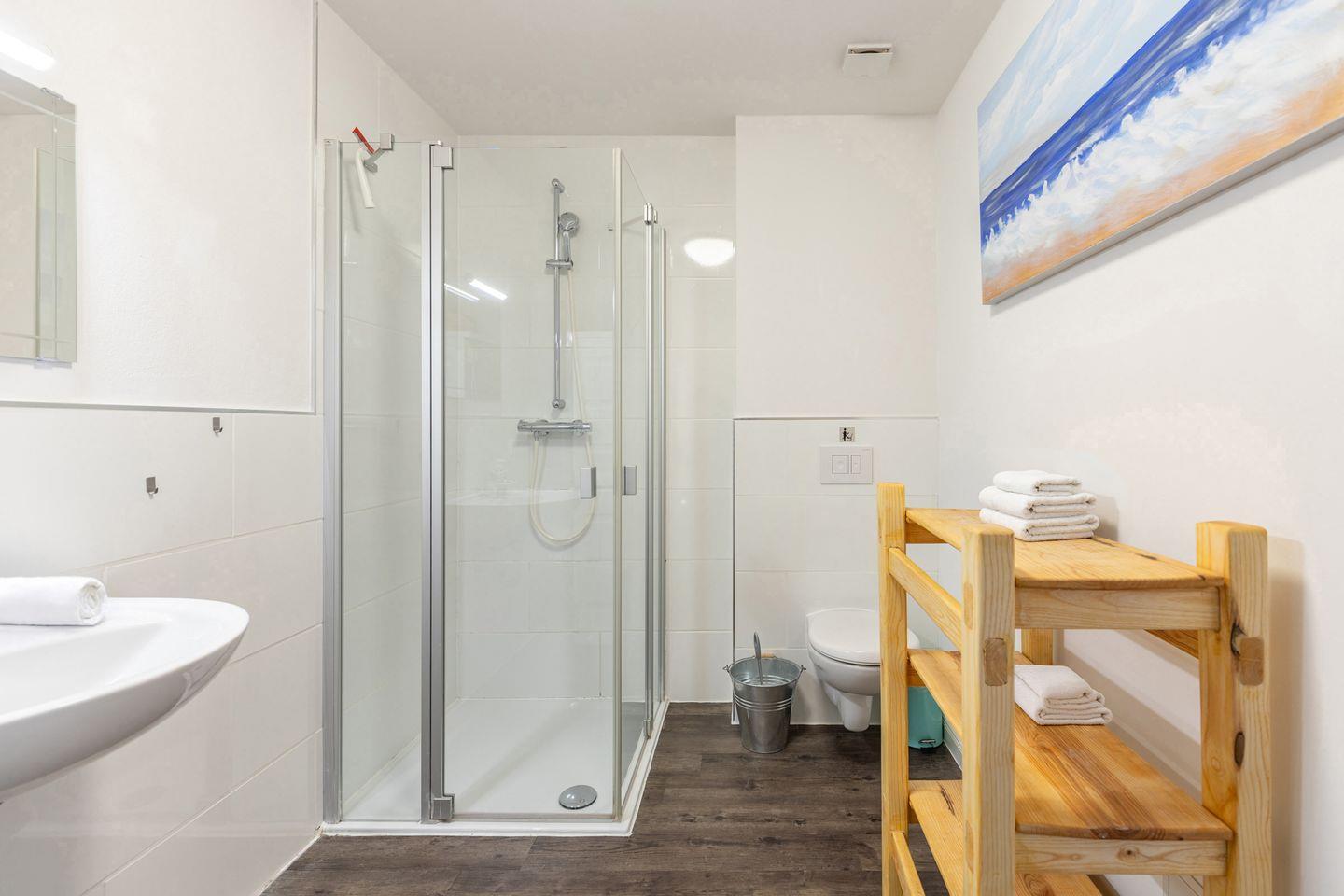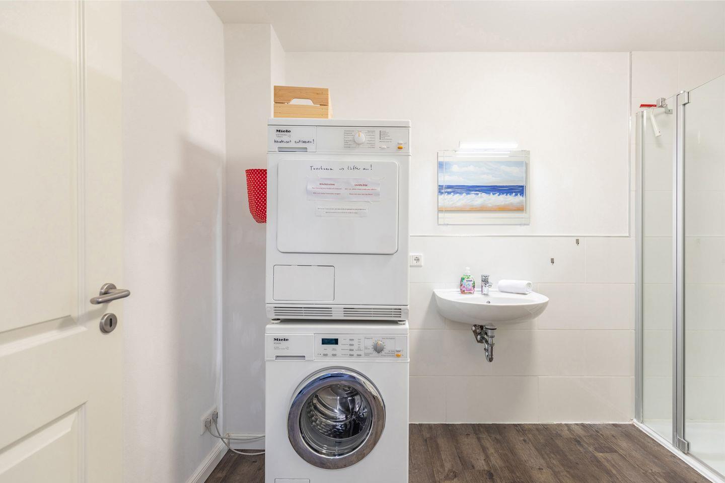 Das Duschbad befindet sich ebenfalls im Erdgeschoss. Hier stehen Ihnen auch Waschmaschine und Trockner zur Verfügung.