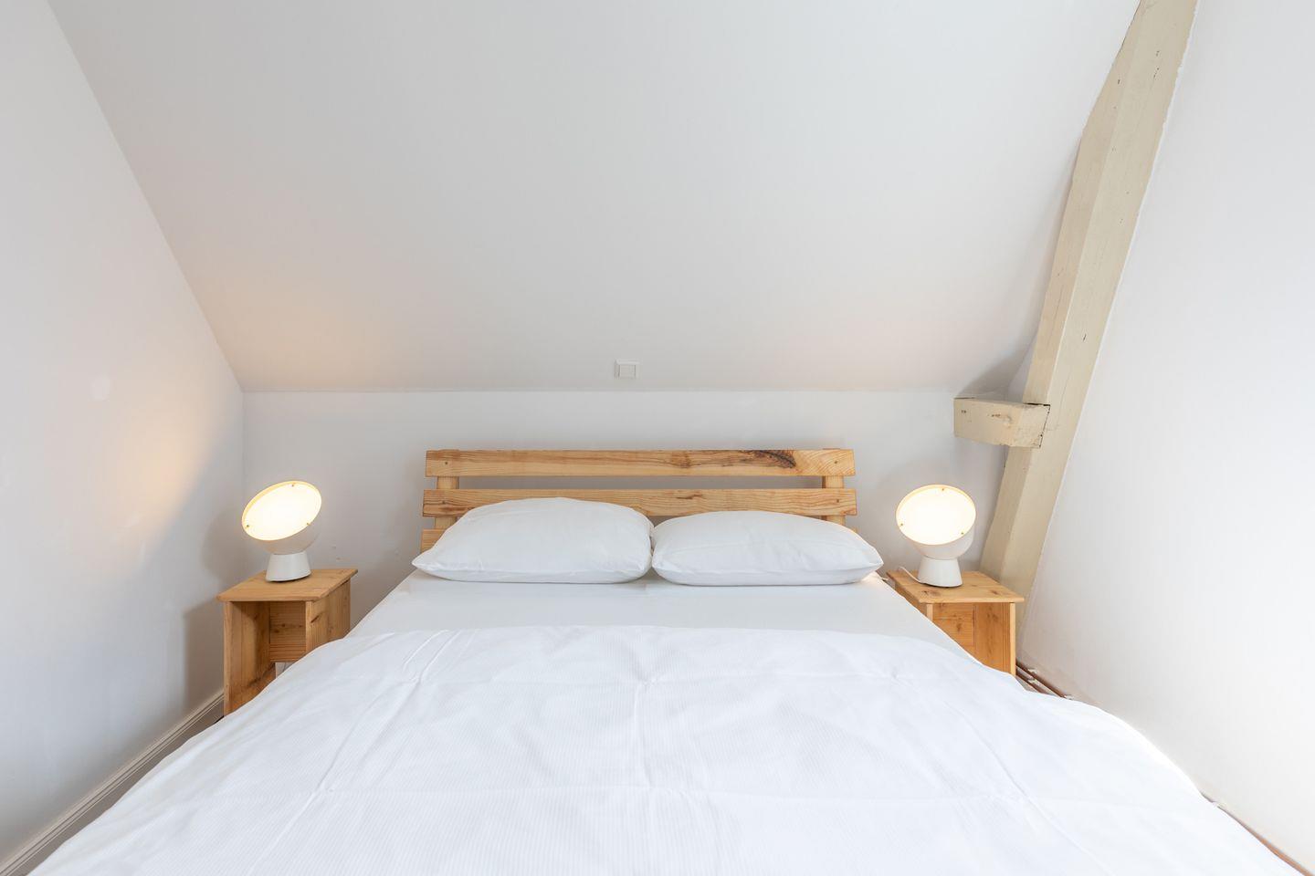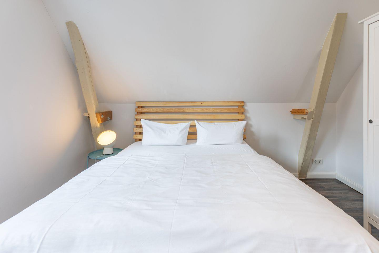 Im Obergeschoss befinden sich zwei Schlafzimmer mit Doppelbetten (je 160 × 200 cm).