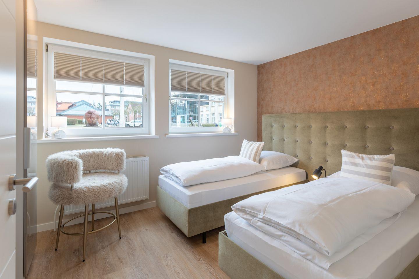 Die Ferienwohnung bietet Ihnen zwei Schlafzimmer, die je mit einem bequemen Boxspringbett (180 x 200) und Kleiderschrank ausgestattet sind. Genießen Sie entspannte Wellnesszeiten in unserer einladenden Sauna und lassen Sie den Alltagsstress hinter sich.