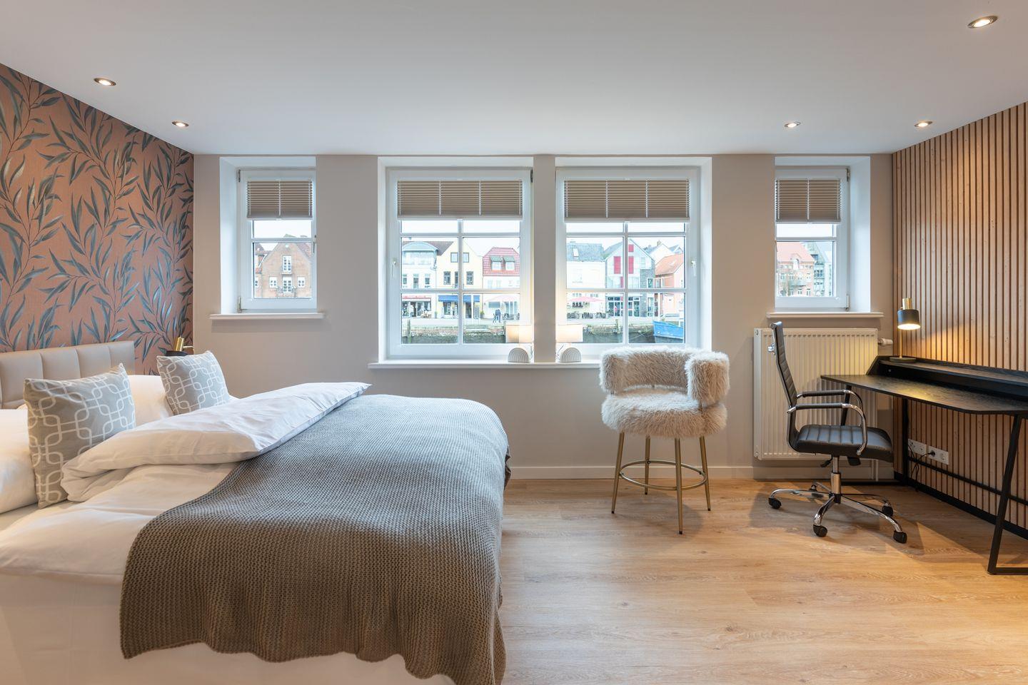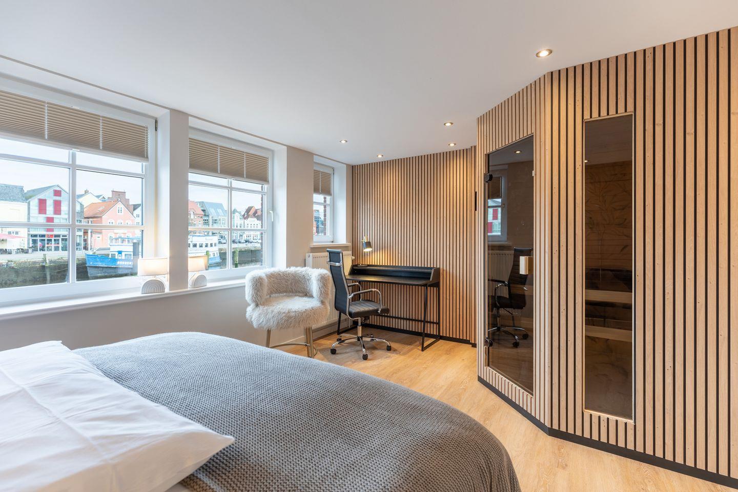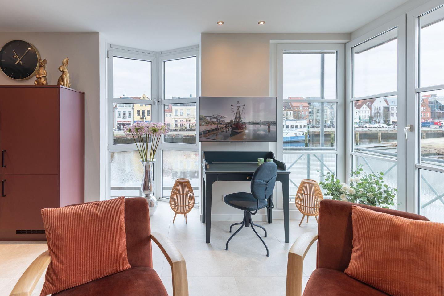 Und falls Sie während Ihres Urlaubs auch mal arbeiten müssen, steht Ihnen ein großer Schreibtisch mit Blick auf den Hafen zur Verfügung.