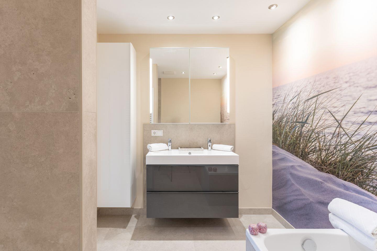 Weitere Annehmlichkeiten: großes Duschbad, separates WC, Nebenraum mit Waschmaschine und Trockner.