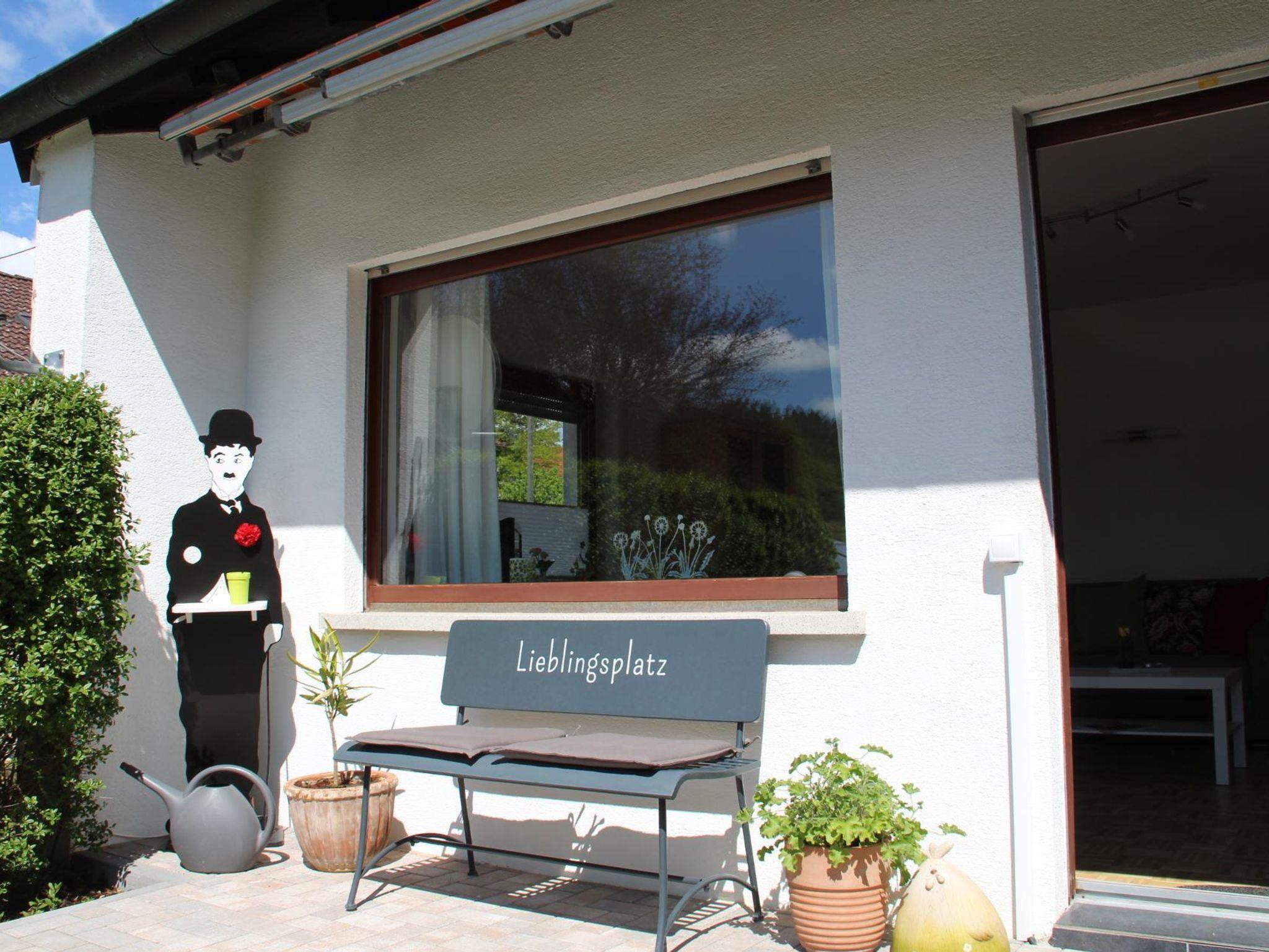 Die überdachte Terrasse sowie der angrenzende Balkon mit Markise, sind nach Süden ausgerichtet und liegen, sofern sie scheint, von morgens bis abends in der Sonne. Entsprechende Möbel stehen unseren Gästen zur Verfügung, sodass ein Frühstück im Freien oder ein Sonnenbad zum Erholen einlädt.