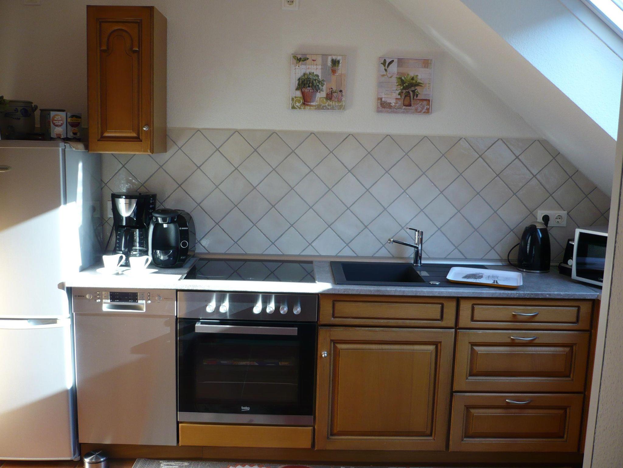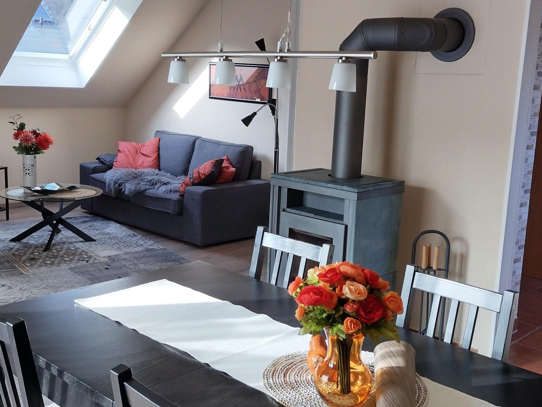 Beliebte 2-Zi-Ferienwohnung mit großem komb. Wohn-/Esszimmer, Balkon, Kaminofen, Küche mit Spülmaschine, Doppelschlafzimmer, Bad mit Dusche und Wanne. Bettwäsche und Handtücher sind vorhanden.
