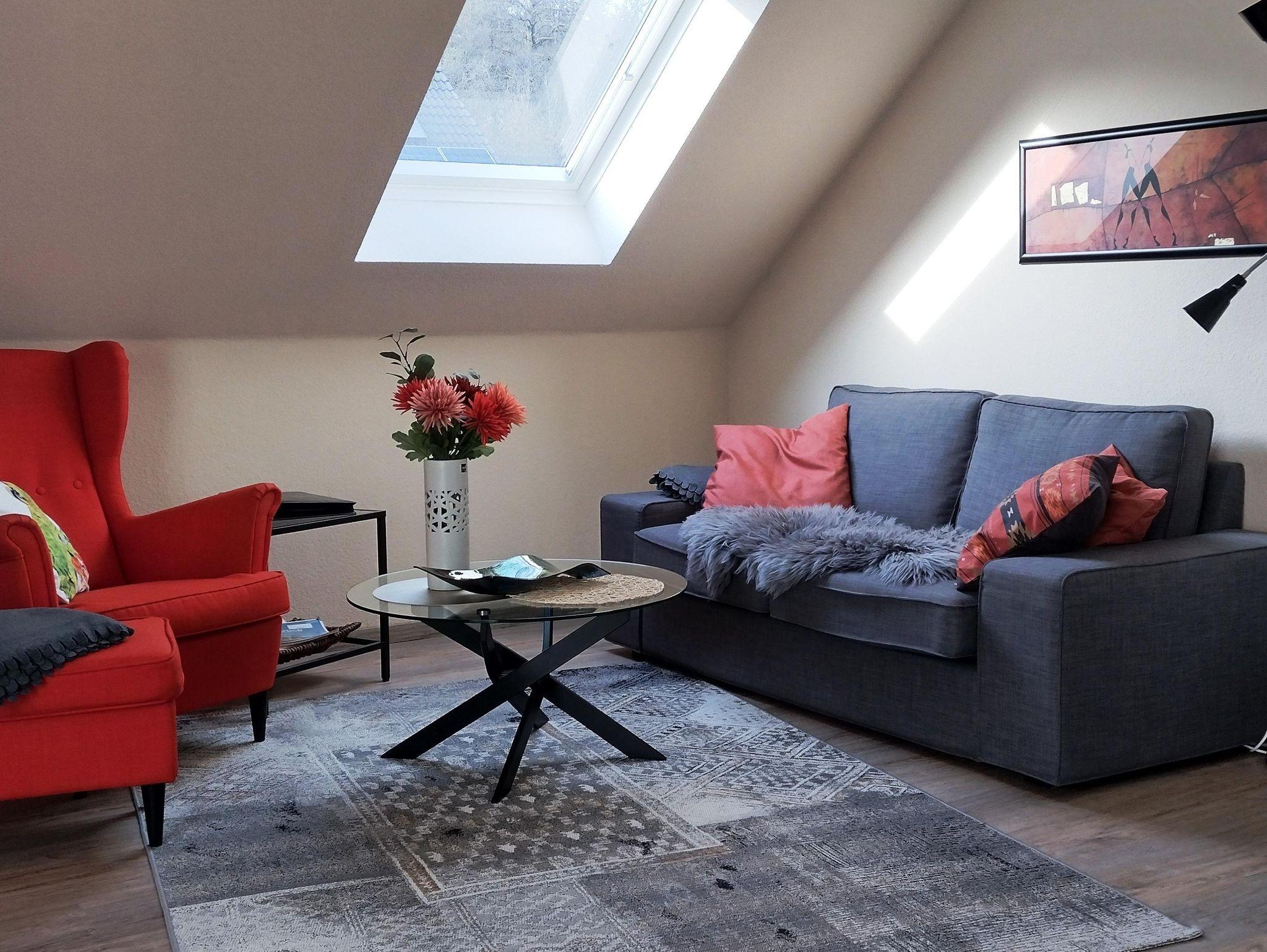 Modern und liebevoll eingerichtete 2-Zi-Ferienwohnung mit Balkon, ruhig und sonnig, direkt am Wald, 7 km vom Marktplatz Oberstein.