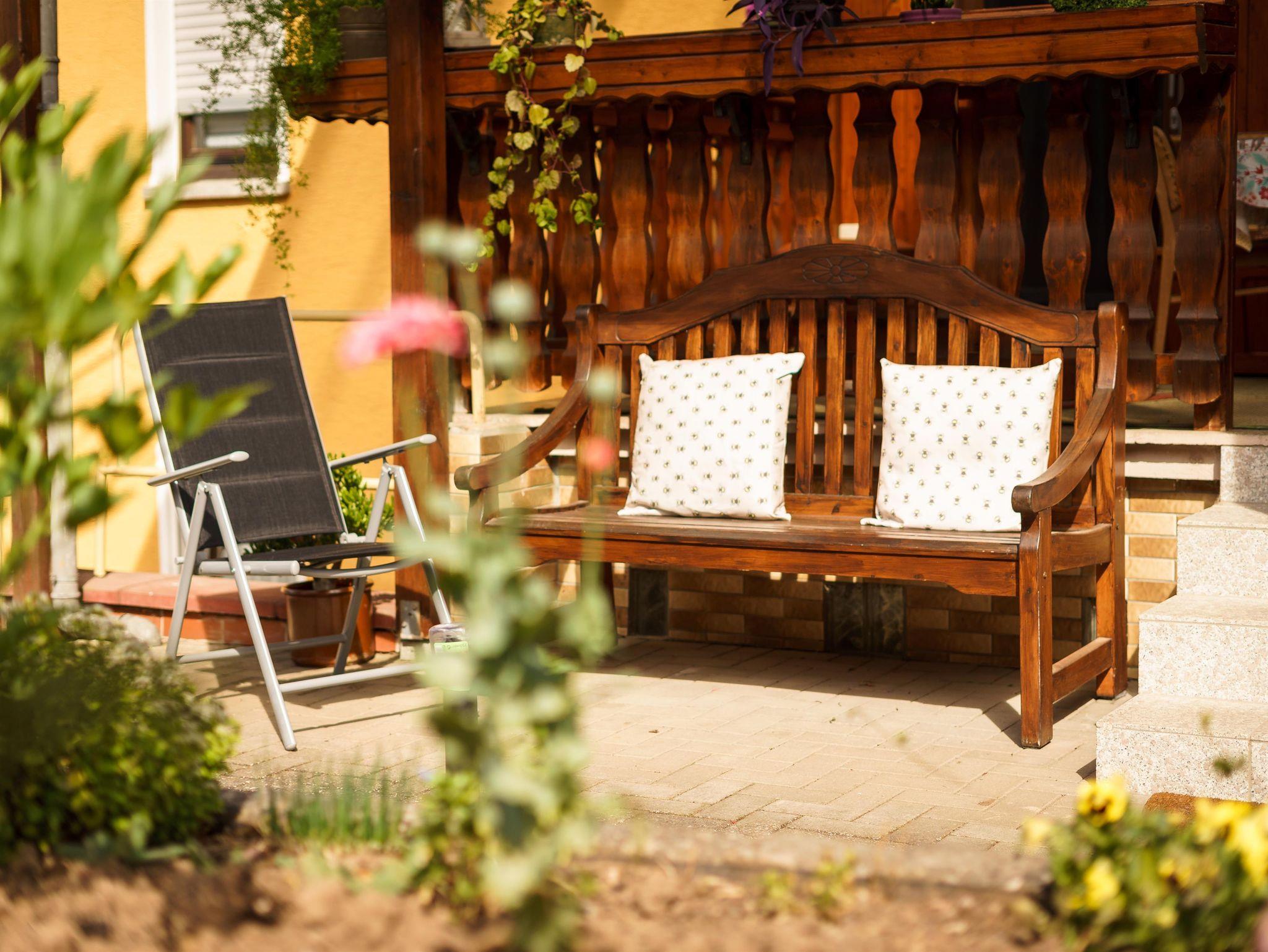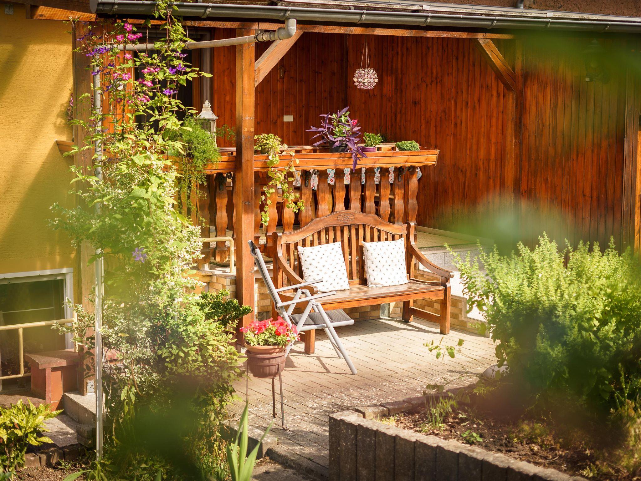 Die Ferienwohnung verfügt über einen Parkplatz, eigenen Eingang mit überdachter Terrasse sowie