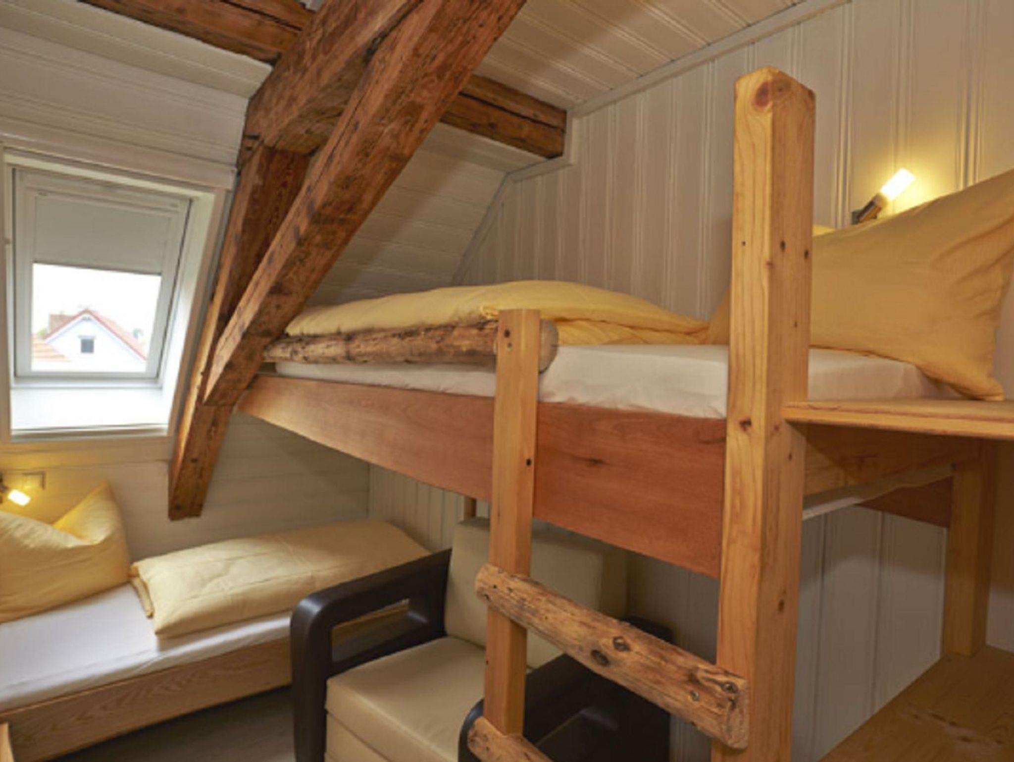 Highlight: Kinderzimmer mit zwischen den Balken eingearbeitete Betten.