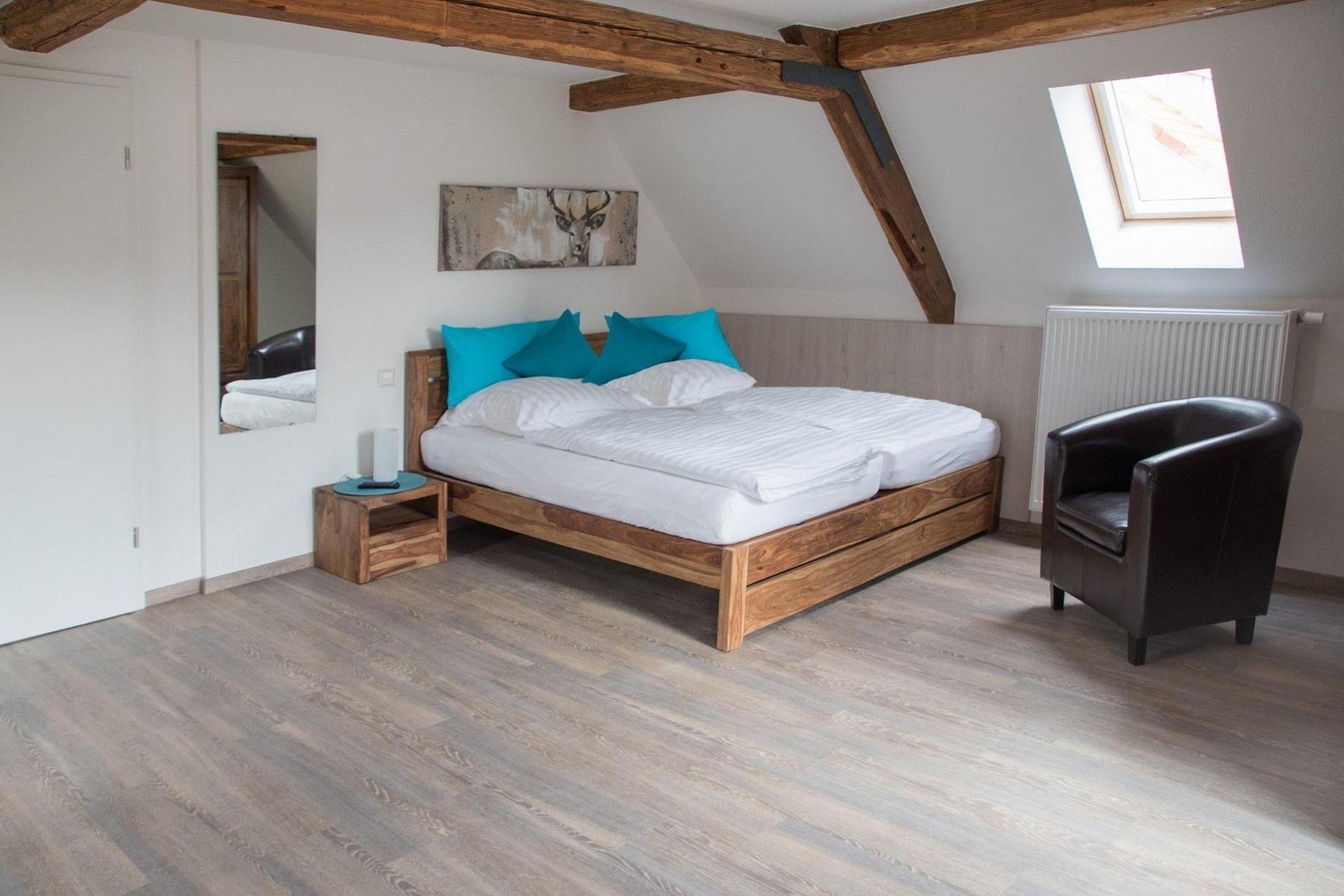 Das geräumige 38 m² große Apartment mit einem 1,80 m breiten Doppelbett befindet sich in der 2. Etage des Bauernhauses. Ein Balkon ist vorhanden. Dieses Apartment bietet Platz für bis zu 3 Personen.