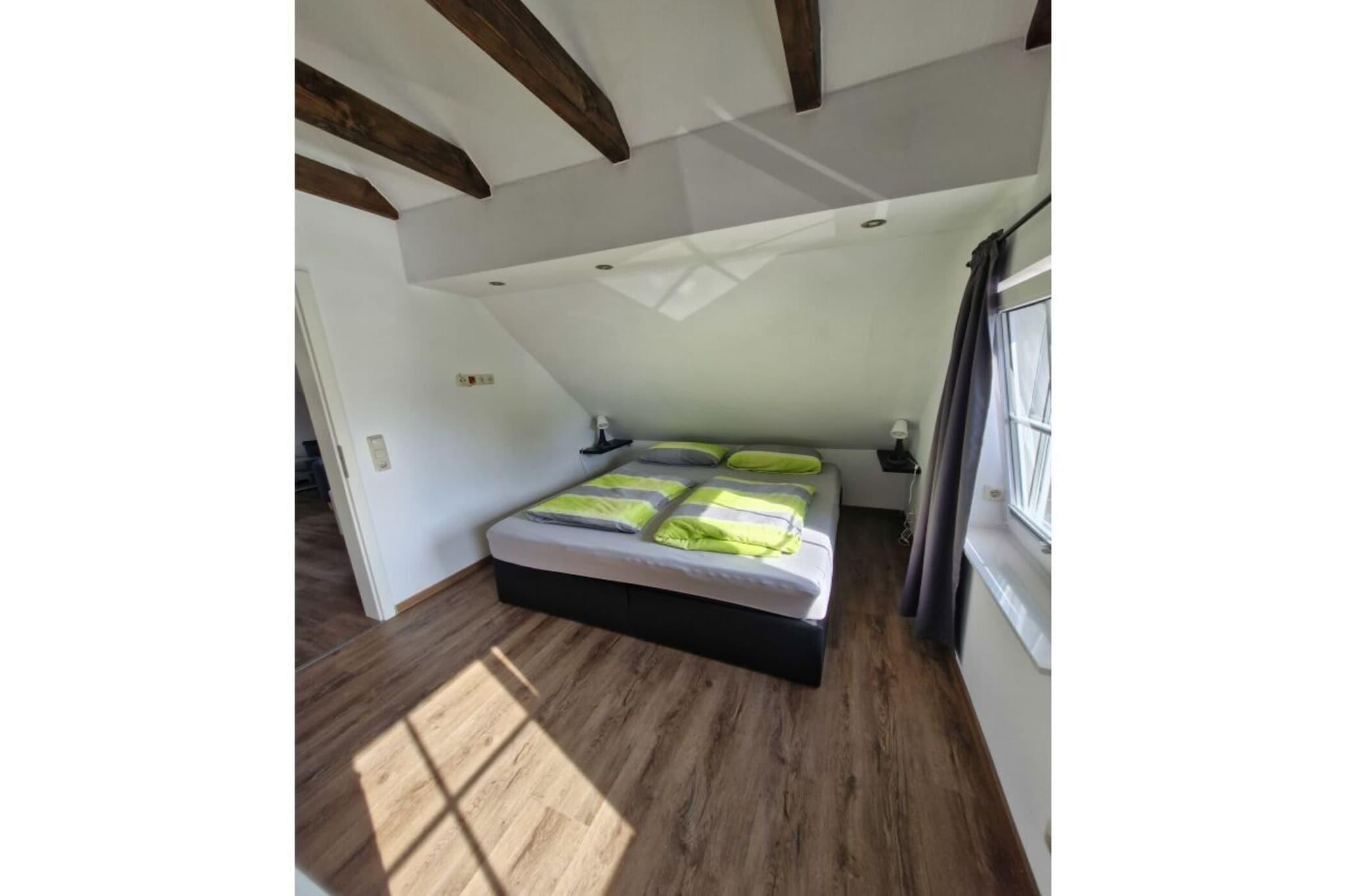 Vores nybyggede ferielejlighed er cirka 55 kvadratmeter stor og inviterer dig til at slappe af og koble fra. Entréområdet har en gang med et klædeskab, hvorfra en trappe fører til den øverste opholdsstue. Den øverste opholdsstue består af et åbent køkken/opholdsrum. Køkkenområdet har et stort spisebord med stole. Det er også udstyret med ovn, elkedel, kaffemaskine, brødrister, æggekoger og airfryer. Opholdsstuen er møbleret med komfortable siddepladser og liggestole samt et fjernsyn. Fra det åbne køkken/opholdsrum er der adgang til det tilstødende soveværelse og det separate badeværelse. Soveværelset har en stor seng, som vil være nyredt ved din ankomst. Der er også en kommode og en bøjlestang med bøjler. Det separate badeværelse, der er tilgængeligt fra køkken/opholdsstuen, har bruser, toilet og håndvask. Håndklæder er også inkluderet. Udenfor, i et roligt hjørne af vores ejendom, finder du et siddeområde med grill og parasol. Der er parkeringsplads til bil og cykelparkering. Du har også mulighed for at oplade dine elcykler her.