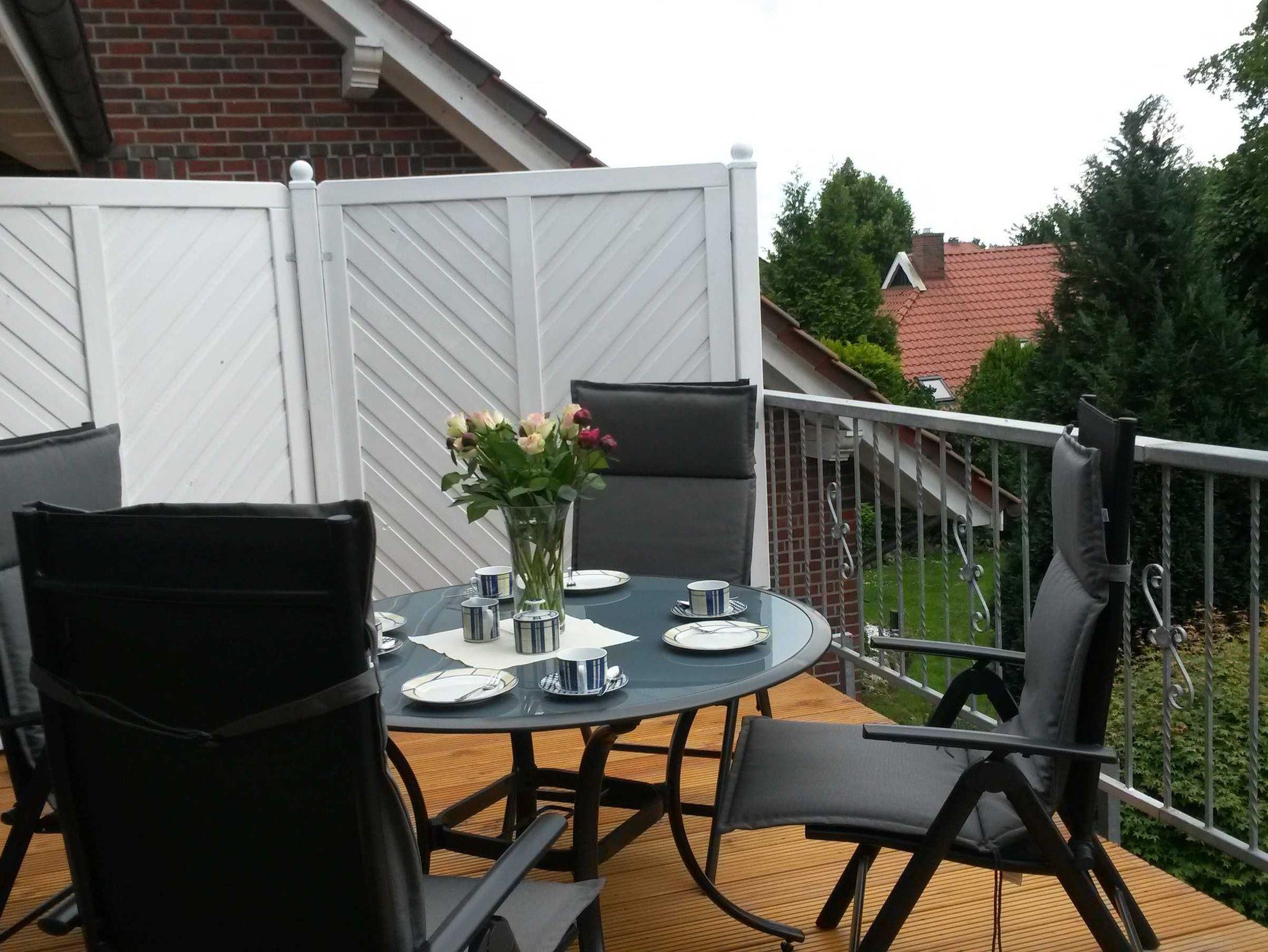 Gemütliche und modern ausgestattete Nichtraucher-Ferienwohnung im Obergeschoss für bis zu 2 Personen in ruhiger, aber zentraler Lage mit Seenähe (Ihler Meer). Die Ferienwohnung ist hell und freundlich eingerichtet und von viel Grün umgeben. Durch den separaten Eingang erreichen Sie einen kleinen Flur, von dem Sie geradeaus über den Balkon die Ferienwohnung erreichen. Sie gelangen direkt in das große Wohn-/ Esszimmer mit Einbauküche. Am Wohnbereich liegen das Badezimmer und das Schlafzimmer an. Einen tollen Blick in den Garten und die Weiten Ostfrieslands können Sie vom Balkon aus genießen. Gerne können Sie auf der großen Liegewiese im hinteren Gartenteil relaxen. Die Umgebung bietet ein reiches Angebot an Freizeit- und Kulturmöglichkeiten, aber auch die Angler kommen hier auf Ihre Kosten. Die nahe gelegenen Kanäle bieten einen reichen Fischbestand.