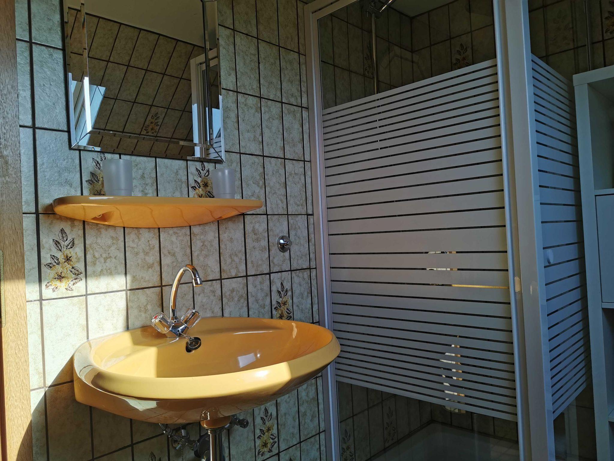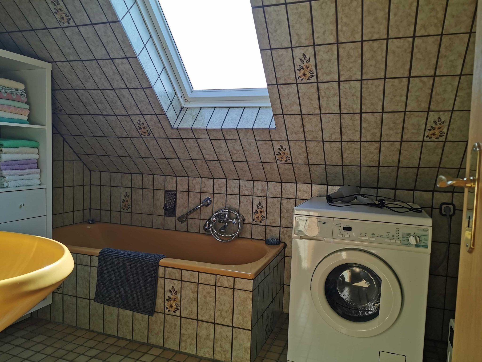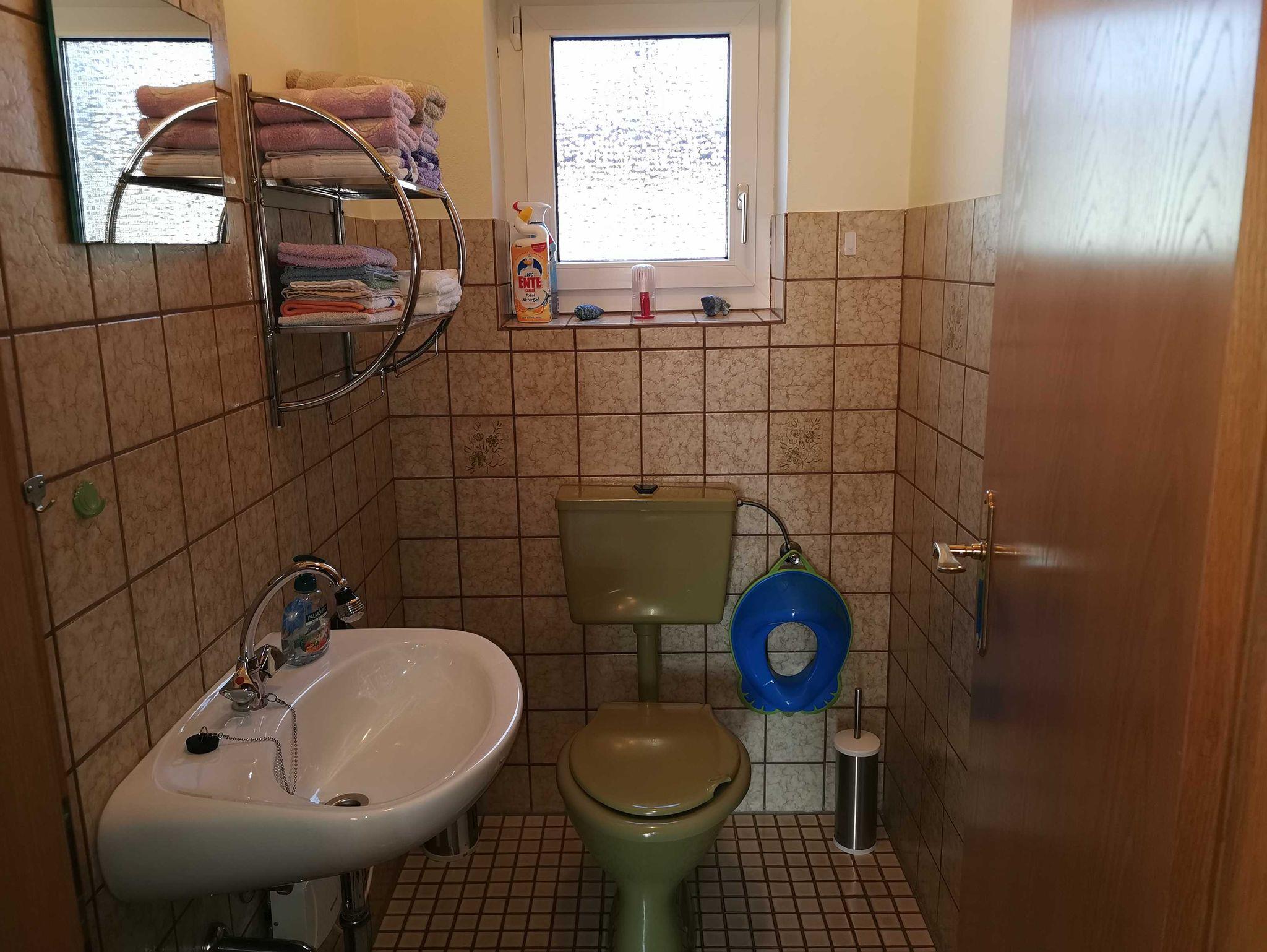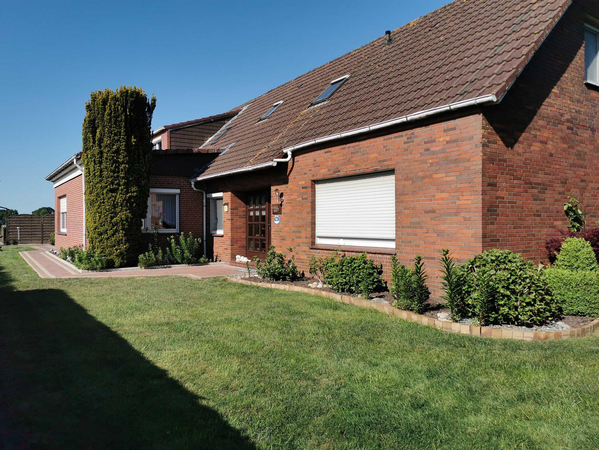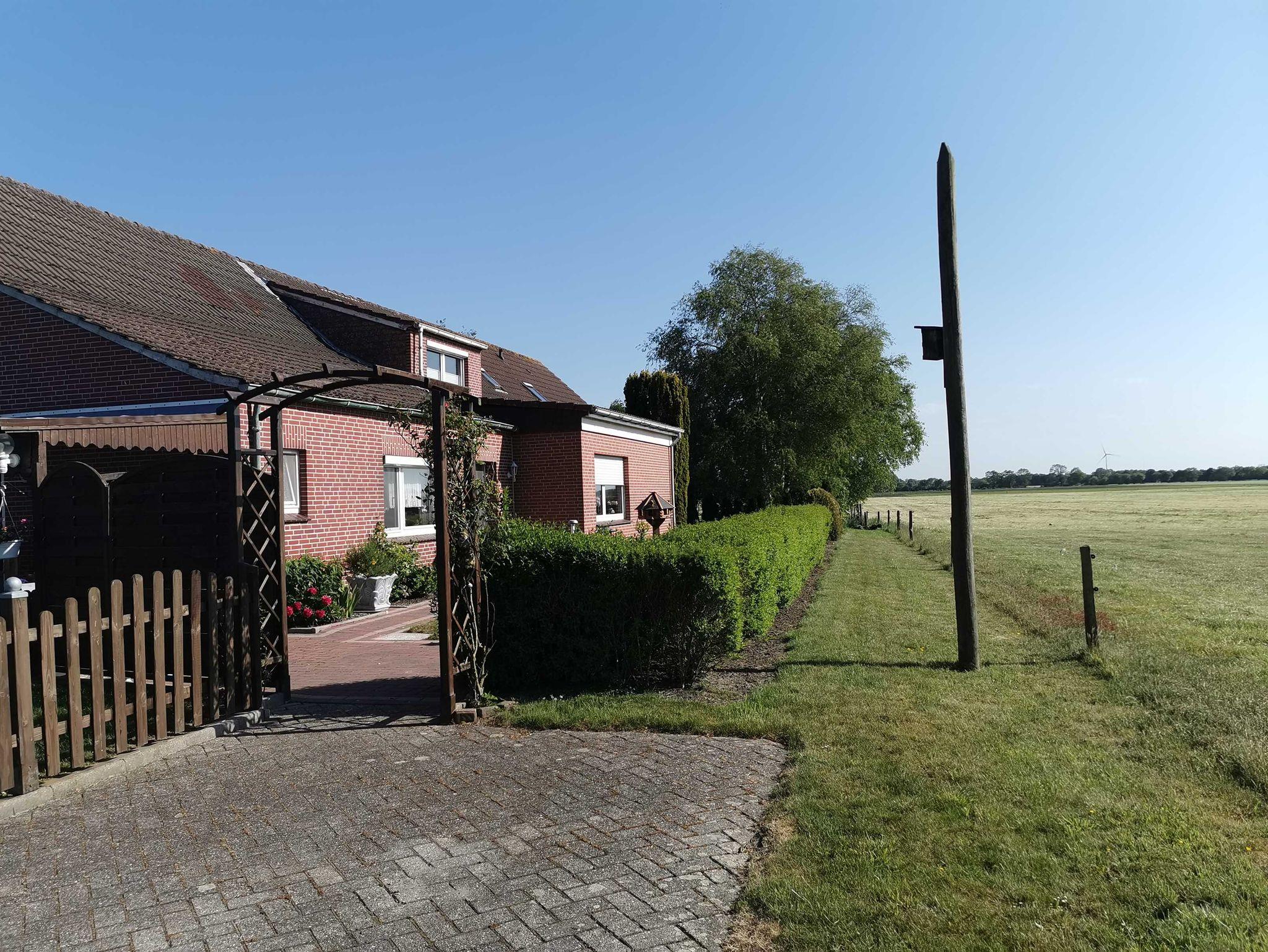 Großes, gemütliches Nichtraucher-Ferienhaus (Anbau, ca. 90 m2) für bis zu 6 Personen + Baby/Kleinkind mitten im „grünen Ostfriesland“. Das Ferienhaus ist von Wiesen & Feldern umgeben, so dass Sie ihren Urlaub mit viel Ruhe genießen können. Das ca. 90 qm große Ferienhaus (Anbau) befindet sich im Erd- und Obergeschoss. Durch den separaten Eingang betreten Sie den Vorflur mit Garderobe. Links befindet sich das Schlafzimmer 1 mit Doppelbett (180x200 cm) und Kleiderschrank, geradeaus ist das WC. Weiter links befindet sich die vollausgestattete Küche u.a. mit Cerankochfeld, Backofen, Mikrowelle, Kaffeemaschine, Wasserkocher und Toaster mit Essecke und Terrassenzugang auf die überdachte Ostterrasse mit Gartenmöbeln. Rechts vom Flur aus kommen Sie in das große Wohnzimmer mit weiterer Essecke, Ecksofa und Flachbildfernseher. Über einen Treppenaufgang im Flur erreichen Sie das Obergeschoss. Links befindet sich das separate WC und das Schlafzimmer 2 mit Einzelbett (120x200 cm) und Kleiderschrank. Vom Treppenaufgang rechts befindet sich das Badezimmer mit Dusche und Badewanne sowie Waschtisch und Waschmaschine inkl. Handtücher, das Schlafzimmer 3 mit Einzelbett (90x200 cm) und Kommode und das Schlafzimmer 4 mit Doppelbett (180x200 cm) und Kleiderschrank. In allen Schlafräumen besteht räumlich die Möglichkeit ein Kinderbett aufzustellen.