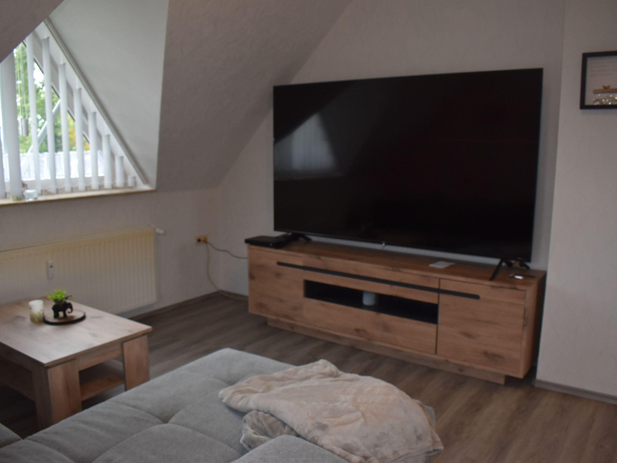Die Fewo befinder sich im ersten Stock eines Einfamilienhauses, mit seperaten Eingang. Die Wohnung hat ein Badezimmer mit Dusche und Badewanne, ein Gäste-WC, zwei Schlafzimmer, eine Küche, einem großen Ess- und Wohnbereich und einen Balkon mit einem schönen Ausblick auf den Ihlower Wald. Zu der Wohnung gehört ebeenfalls ein überdachter Autostellplatz.