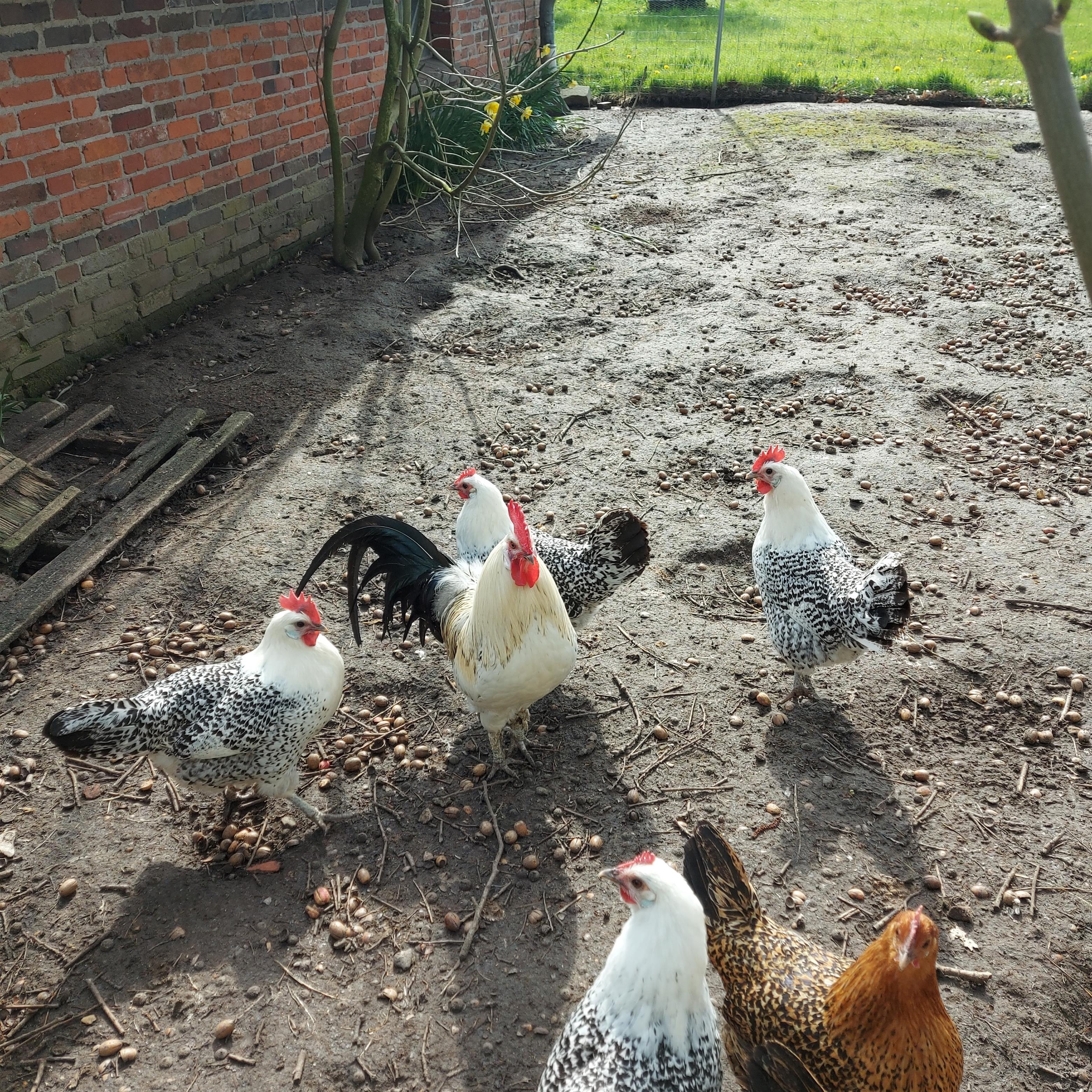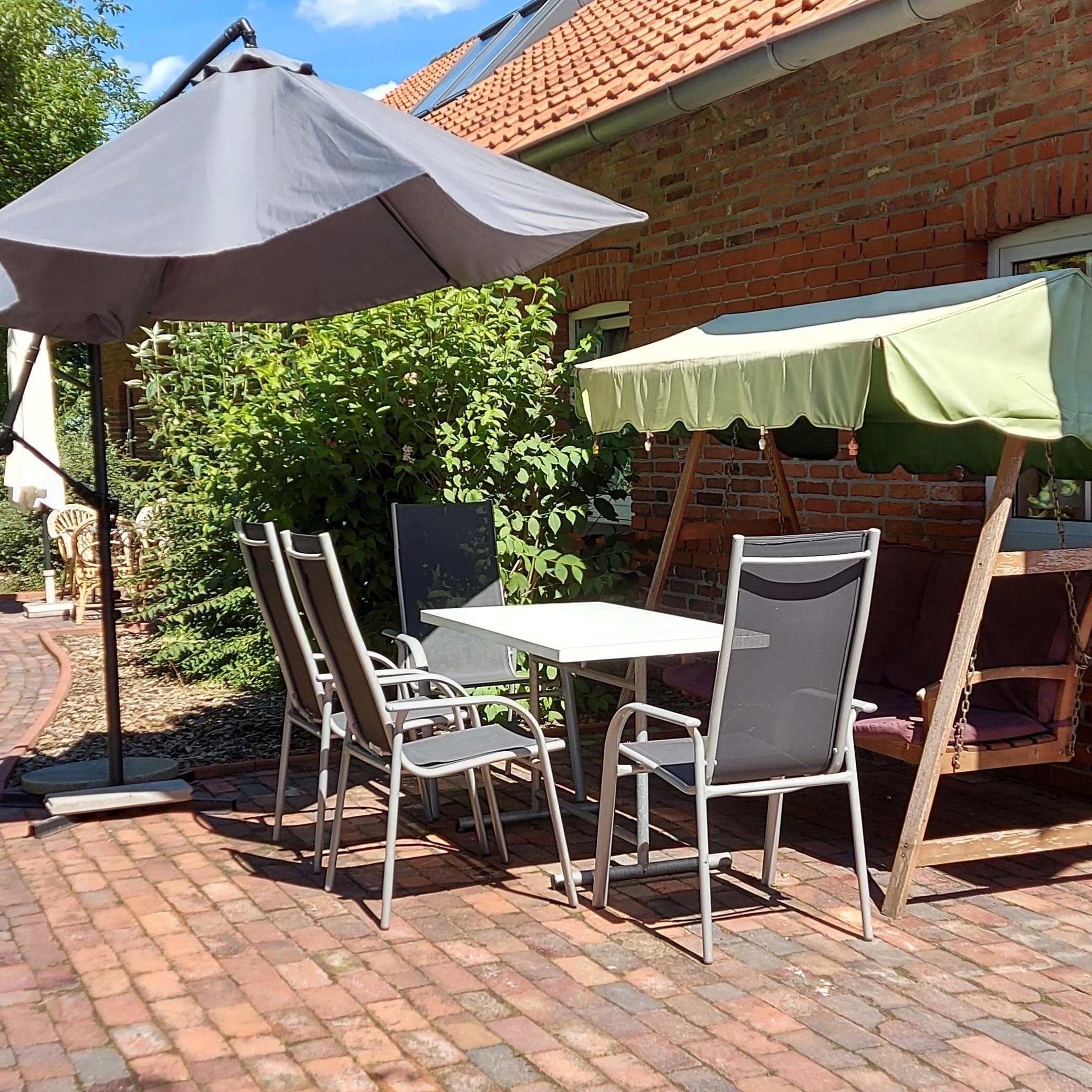 Im Außenbereich gibt es einen großen Garten, ganz viele Tiere: Schafe, Ziegen, Ponys, Esel, Hühner, Kaninchen und Katzen, einen Spielbereich mit Rutsche, Schaukel und Trampolin und eine Terrasse, die zum gemütlichen und angenehmen Ausklingen des Tages einlädt.