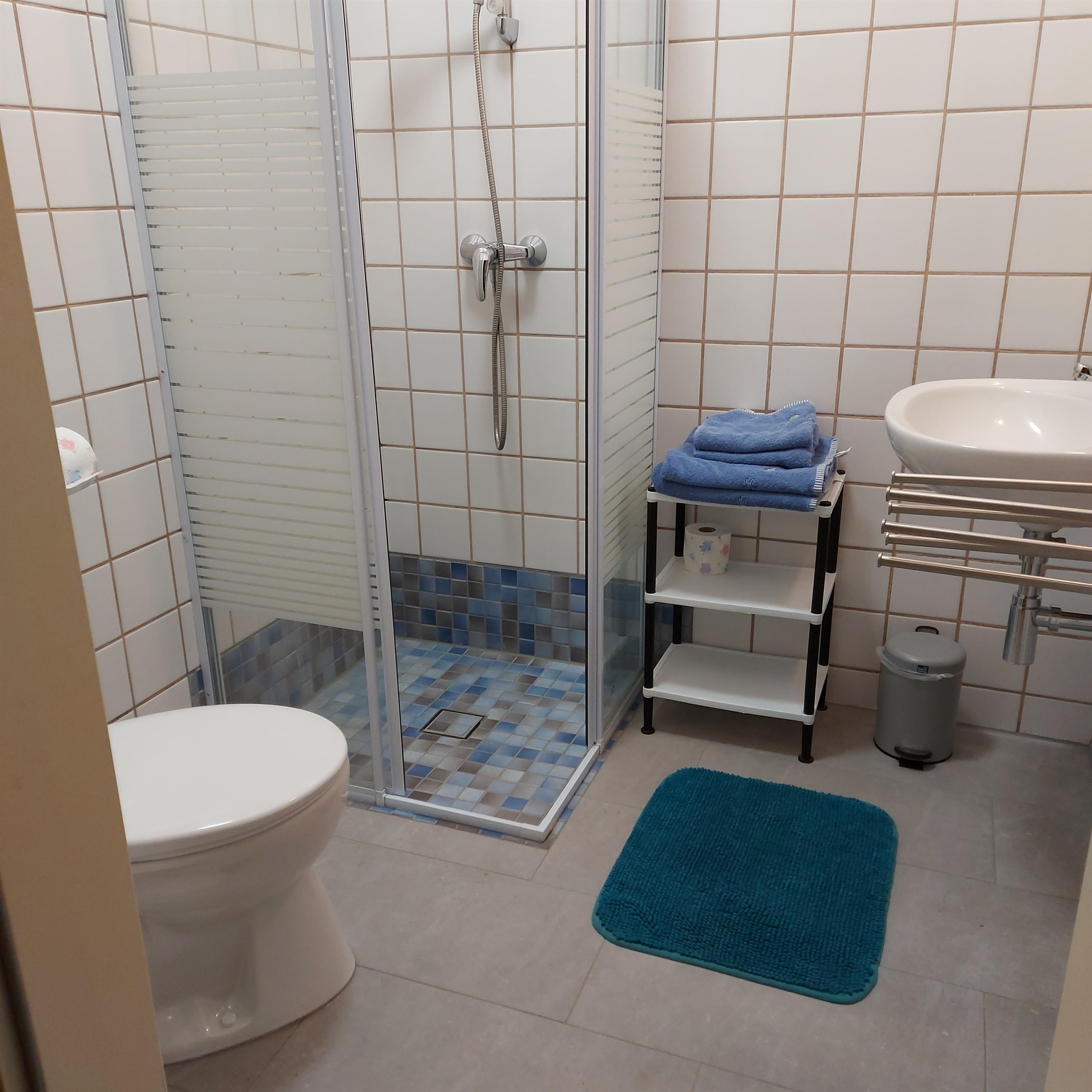 Die Wohnung besteht aus einem Wohnzimmer mit einem Schlafsofa, einem Eizelbett und einem Küchenbereich, einem Schlafzimmer mit einem Doppelbett (140x200) und einem Badezimmer. Draußen steht eine Terasse mit Sitzmöglichkeiten zur Verfügung.