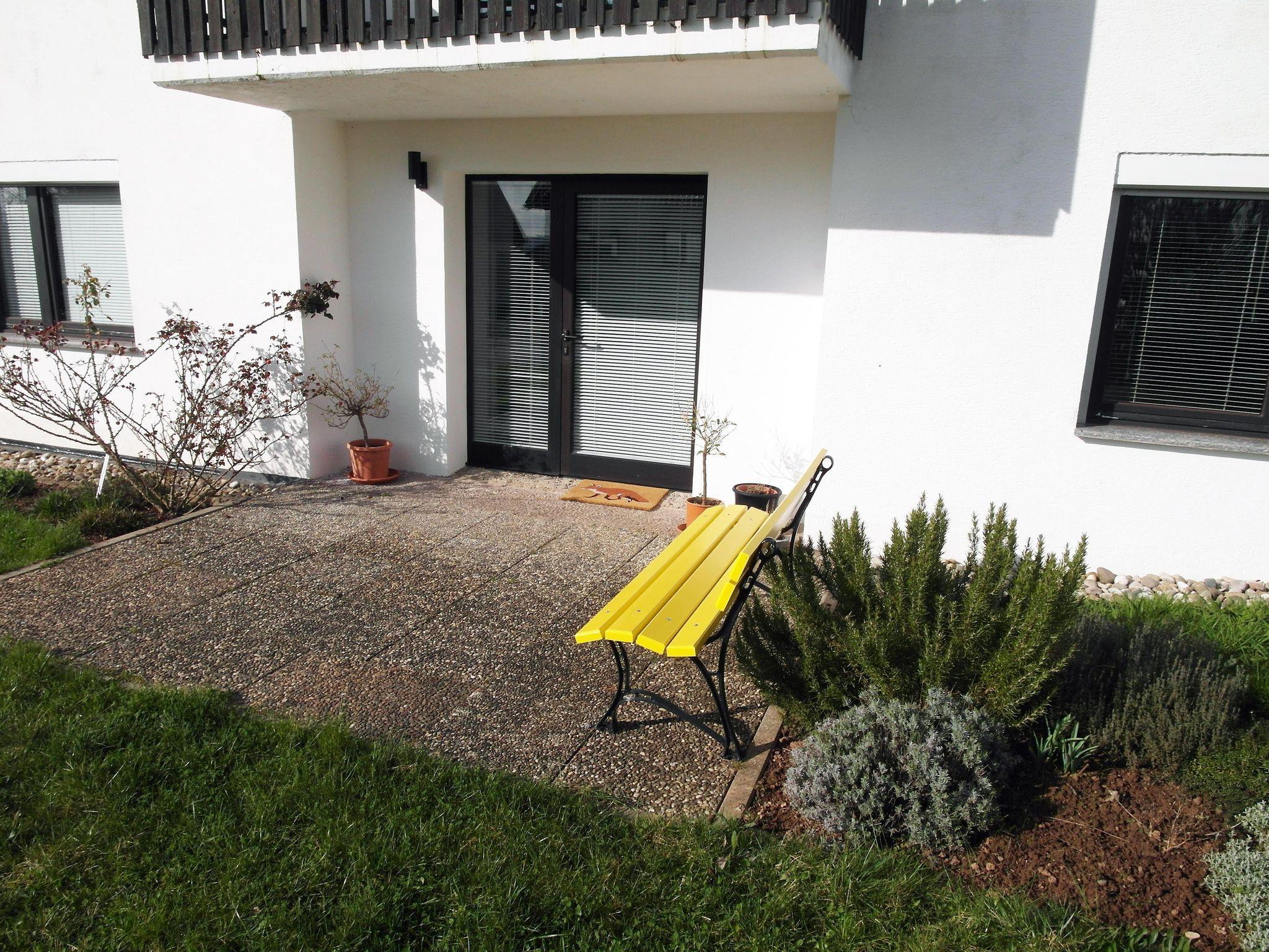Ausstattung Terrasse: Sonnenschirm, Sitzbank, Tischgrill, Küchenmöbel können draußen genutzt werden