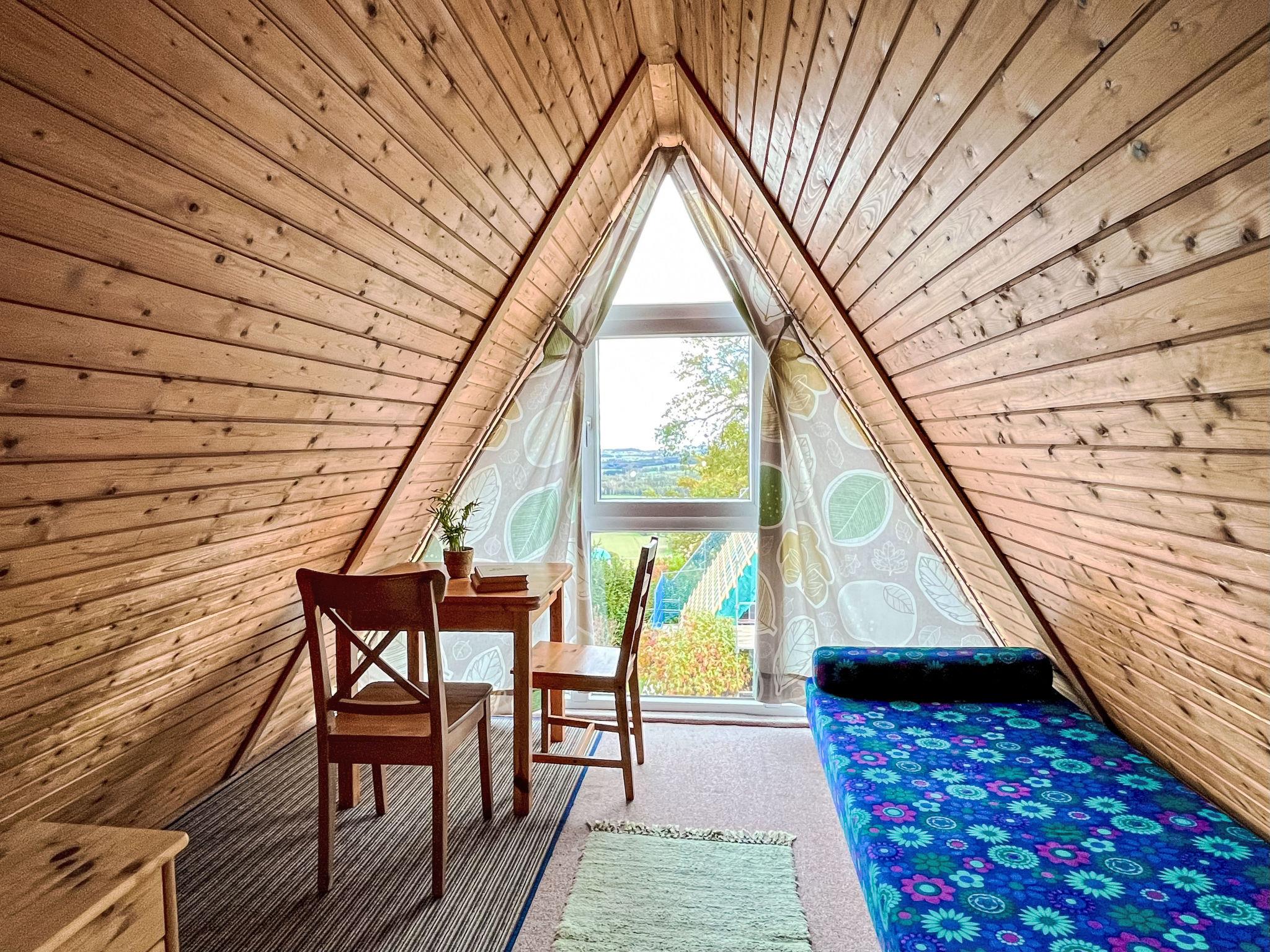 "Riedblick I", 3-room house 70 m2 on 2 levels. Object suitable for 2 adults + 3 children. Simple and wooden furniture furnishings: living/dining room with sloping ceilings with dining table and TV (flat screen). Exit to the balcony. Small kitchen (oven, dishwasher, 4 ceramic glass hob hotplates, toaster, kettle, electric coffee machine). Shower/WC. Top floor: (steep stair), 1 room with sloping ceilings with 2 beds (80 cm, length 200 cm). 1 room with sloping ceilings with 3 beds (75 cm, length 200 cm). Electric heating. Balcony, patio 12 m2, lawn 40 m2. Balcony furniture, electric barbecue (portable). Beautiful view of the valley and the countryside. Facilities: children's high chair, baby cot. Internet (WiFi, free). Parking (2 cars) at the house. Please note: non-smokers only. Maximum 2 pets/ dogs allowed.