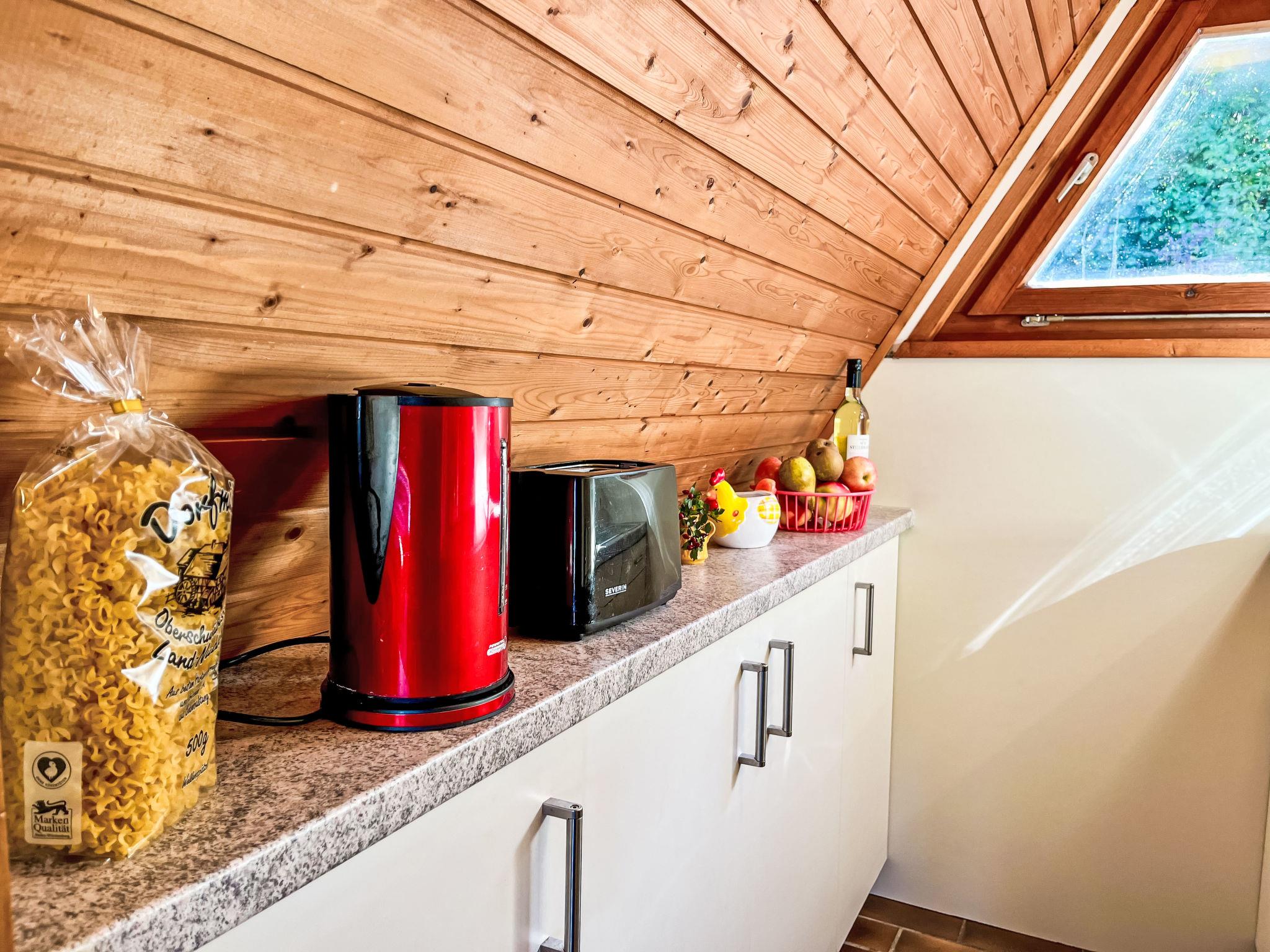 "Riedblick II", 3-room house 70 m2 on 2 levels. Object suitable for 2 adults + 3 children. With sloping ceilings, simple and wooden furniture furnishings: living/dining room with dining table and TV (flat screen). Exit to the balcony. Small kitchen (oven, dishwasher, 4 ceramic glass hob hotplates, toaster, kettle, electric coffee machine). Shower/WC. Electric heating. Top floor: (steep stair), 1 room with sloping ceilings with 2 beds (80 cm, length 200 cm). 1 room with sloping ceilings with 3 beds (75 cm, length 200 cm). Balcony, patio 12 m2, lawn 40 m2. Balcony furniture, barbecue. Beautiful view of the valley and the countryside. Facilities: children's high chair, baby cot. Internet (WiFi, free). Parking (2 cars) at the house. Please note: non-smokers only. Maximum 2 pets/ dogs allowed.