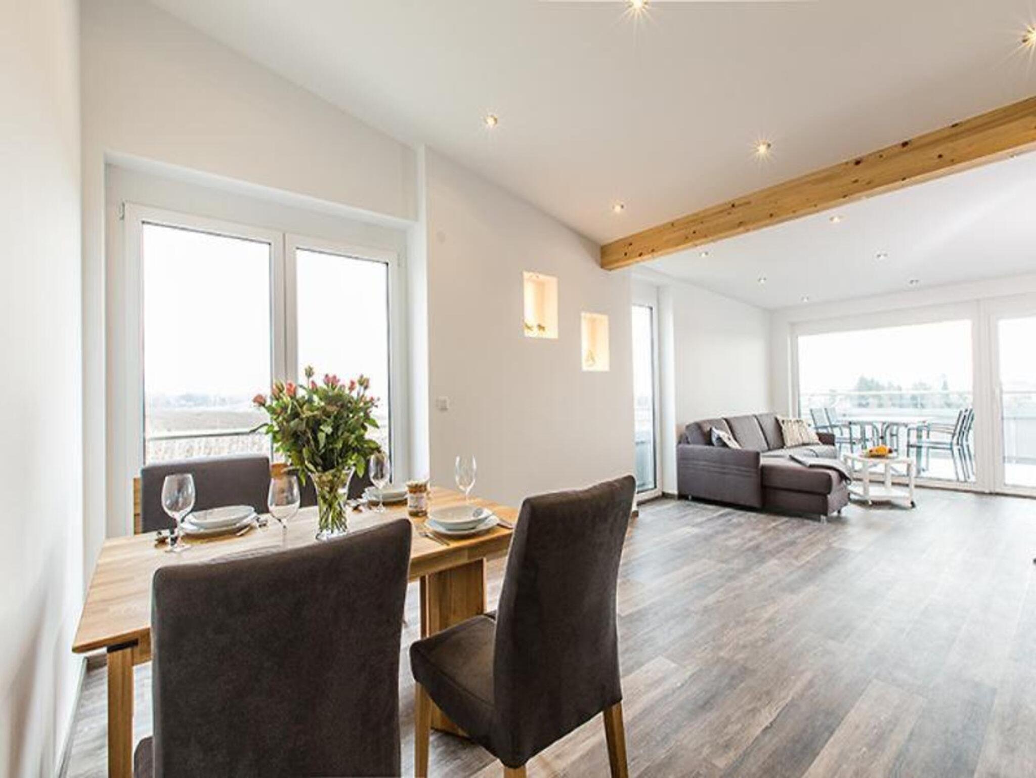 Diese komfortable Ferienwohnung erstreckt sich über 75 m² und bietet Platz für bis zu vier Erwachsene, ideal auch für Familien mit Kindern. Das separate Schlafzimmer garantiert erholsame Nächte, während der großzügige Wohnbereich mit Schlafcouch (ausklappbares Vollbett) und integrierter Küchenzeile Raum für gemeinsames Entspannen, Kochen und geselliges Beisammensein bietet. Das helle Badezimmer verfügt über eine ebenerdige Dusche, WC, Haartrockner und ein Fenster für angenehmes Tageslicht. Highlight der Wohnung ist der überdachte, möblierte Balkon mit herrlichem Panoramablick auf den Bodensee, die Alpen und die umliegende Landschaft – perfekt, um die Aussicht bei einer Tasse Kaffee zu genießen. Die voll ausgestattete Küche lässt keine Wünsche offen und beinhaltet Herd, Geschirrspüler, Kühlschrank mit Tiefkühlfach, Mikrowelle, Kaffeemaschine, Wasserkocher, Toaster, Küchenutensilien, Hochstuhl sowie Kindergeschirr. Weitere Annehmlichkeiten sind WLAN, Satelliten-TV, TV, Radio, Waschmaschine, Wäschetrockner, Heizung, Rauchmelder sowie inklusive Bettwäsche und Handtücher. Die Ferienwohnung ist barrierefreundlich gestaltet und Haustiere sind nicht erlaubt. Ein stilvolles Zuhause auf Zeit, das Komfort, Funktionalität und einen atemberaubenden Ausblick vereint.