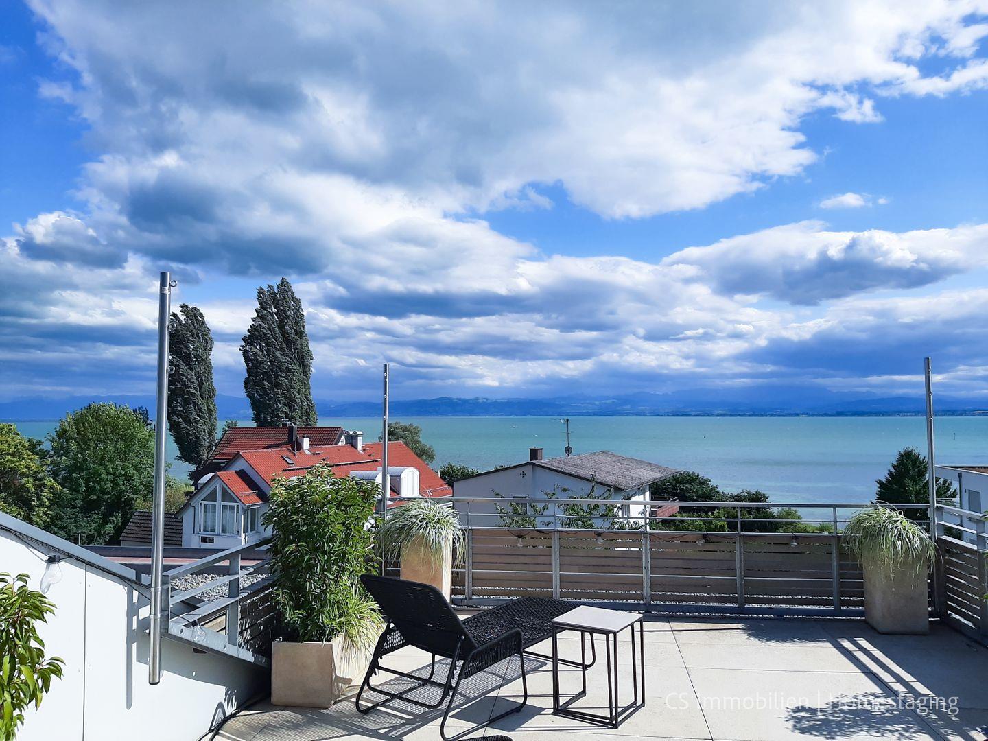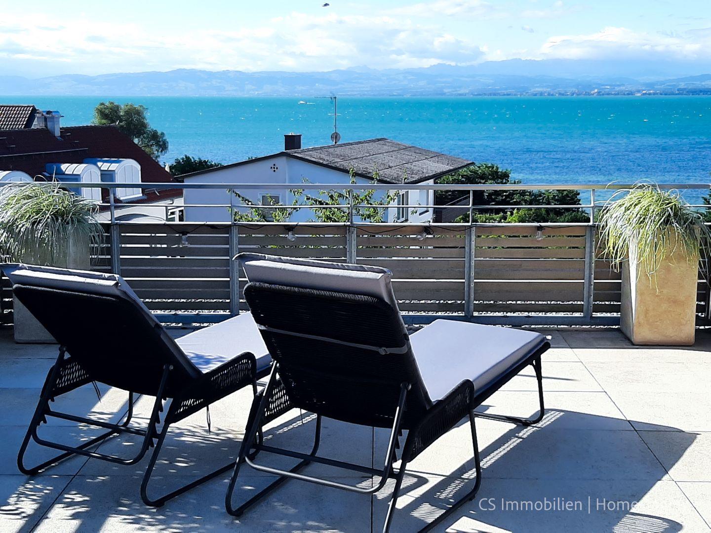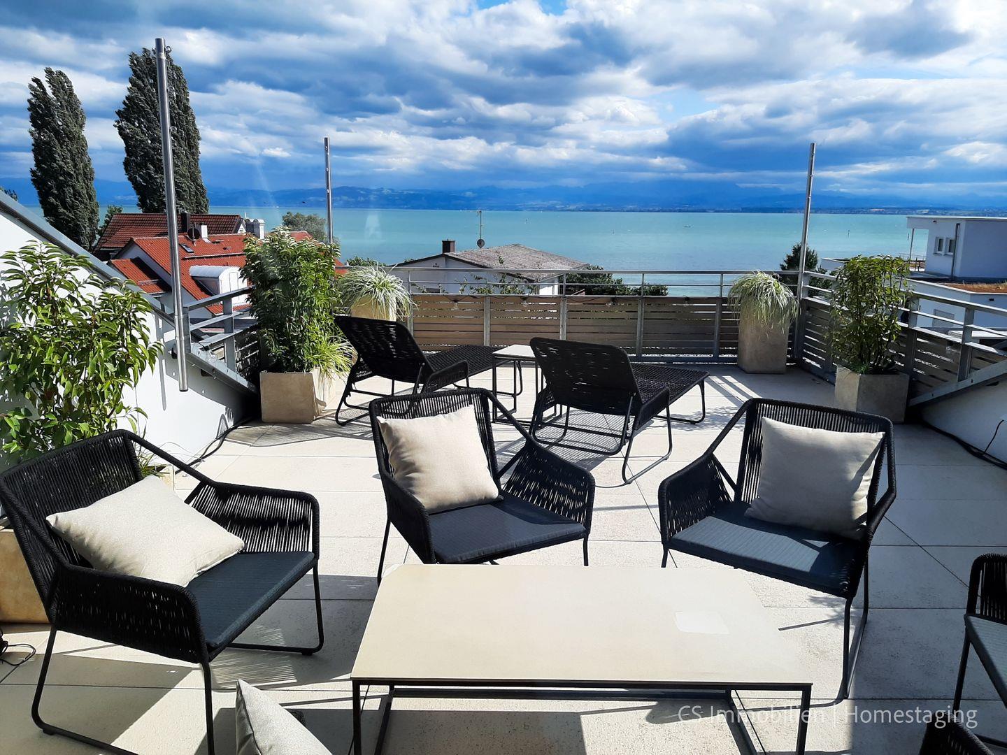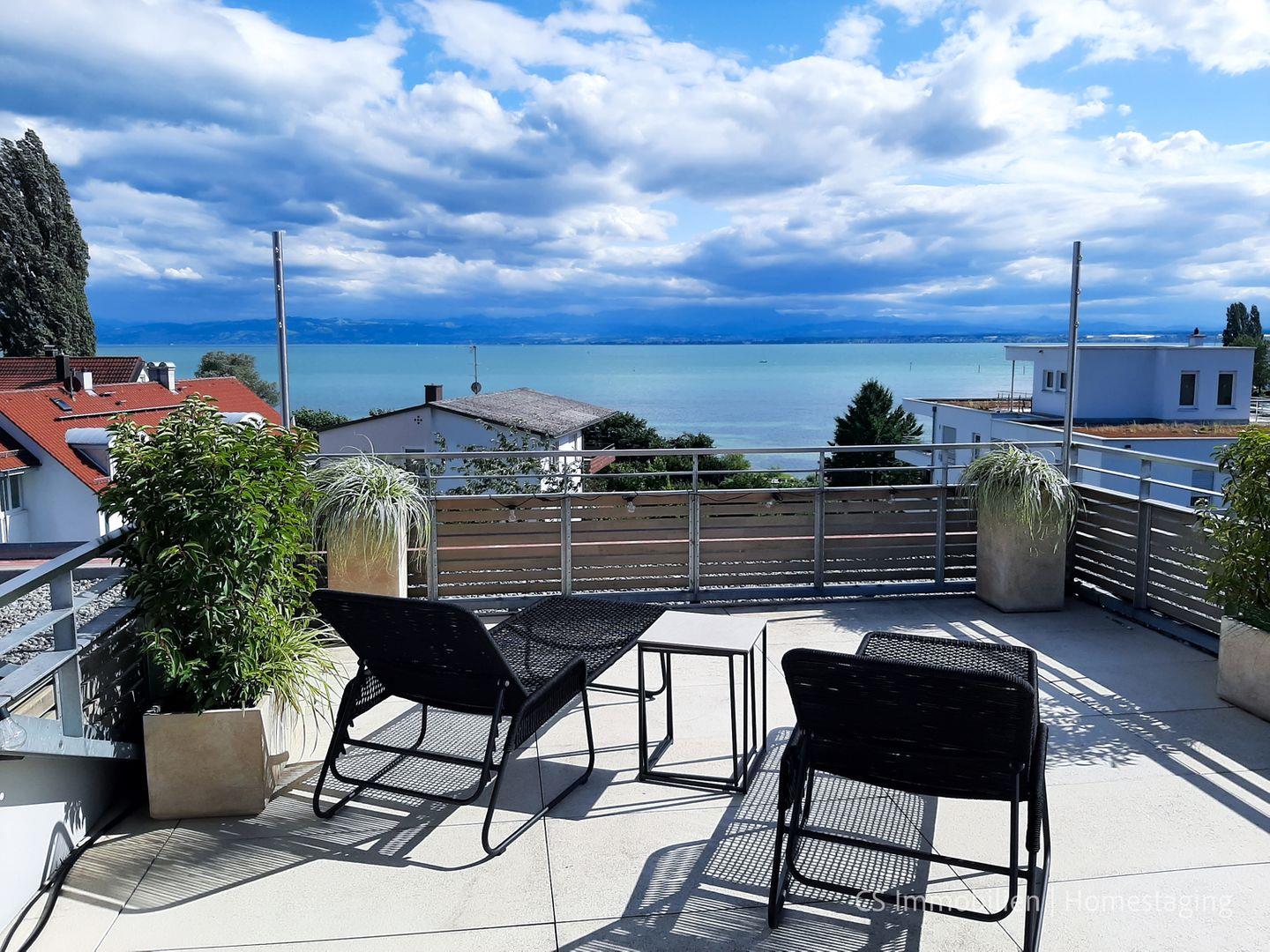 Anspruchsvolles Designer- Apartment in 2. Seereihe mit 79m2 , ausgestattet mit sehr privater Dachterrasse - Weitblick auf den Bodensee, der in wenigen Metern mit einer Badestelle und einem öffentlichen Park mit Liegemöglichkeit und Sitzbänken zu erreichen ist, das Strandbad Immenstaad und die Fähranlegestelle, sowie Läden, Restaurants und Ärzte sind fußläufig erreichbar. Genießen Sie bei einem kühlen Glas Wein den wunderbaren Blick auf den See und fühlen Sie sich einfach nur wohl!
