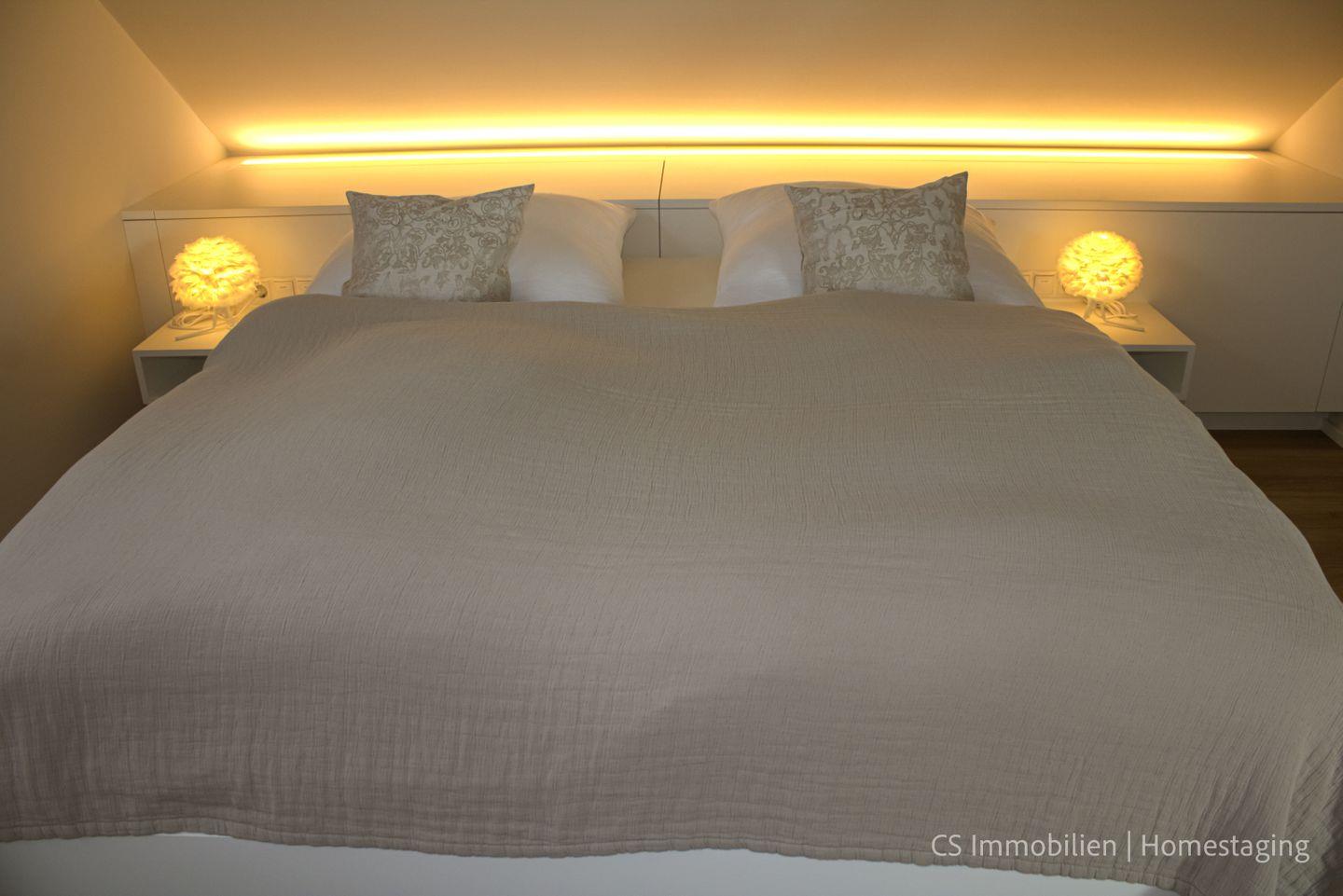 Dieses Luxusloft wurde mit hochwertigen Materialien ausgestattet und bietet höchsten Komfort. Das großzügige Schlafzimmer mit Doppelbett, beleuchtetem Einbauschrank und Klimaanlage sorgt für angenehme Nächte. Die Nachtbeleuchtung mit Bewegungsmelder macht die Orientierung auch im Dunkeln einfach.