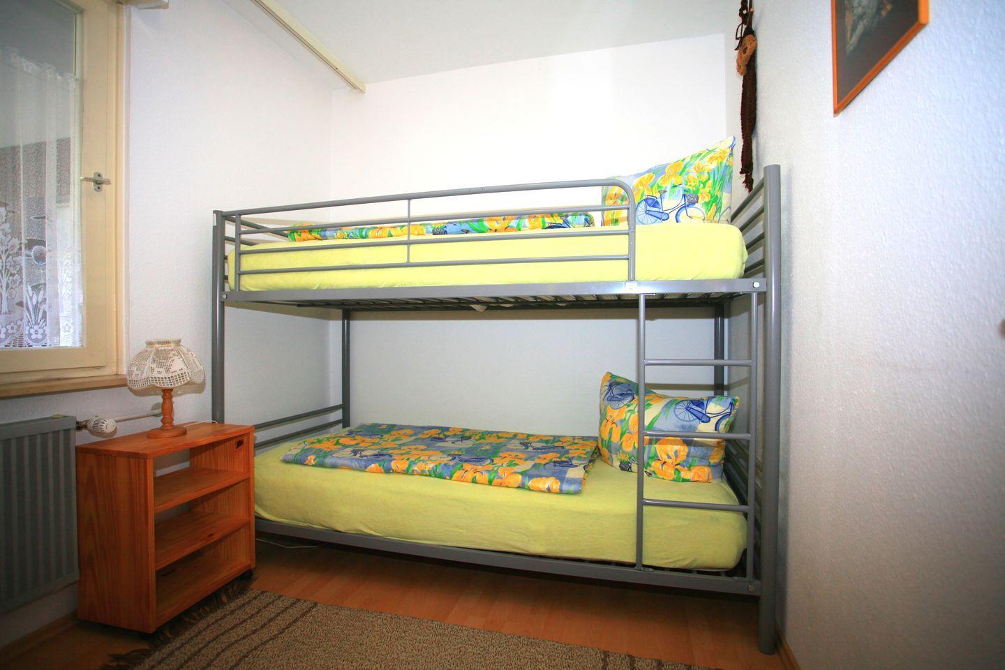 Die Wohnung im 5. Obergeschoss, das bequem mit dem Aufzug erreichbar ist, bietet auf 68 m² viel Platz für einen erholsamen Aufenthalt. Sie verfügt über ein Schlafzimmer mit Doppelbett, ein weiteres Schlafzimmer mit Hochbett, ein Badezimmer, ein separates WC, eine abgeschlossene Küche mit moderner Einbauküche und einen großzügigen Wohn-/Essbereich. Der Südwest-Balkon lädt dazu ein, den Tag mit einem Glas Bodensee-Wein und einem traumhaften Blick auf den See ausklingen zu lassen.