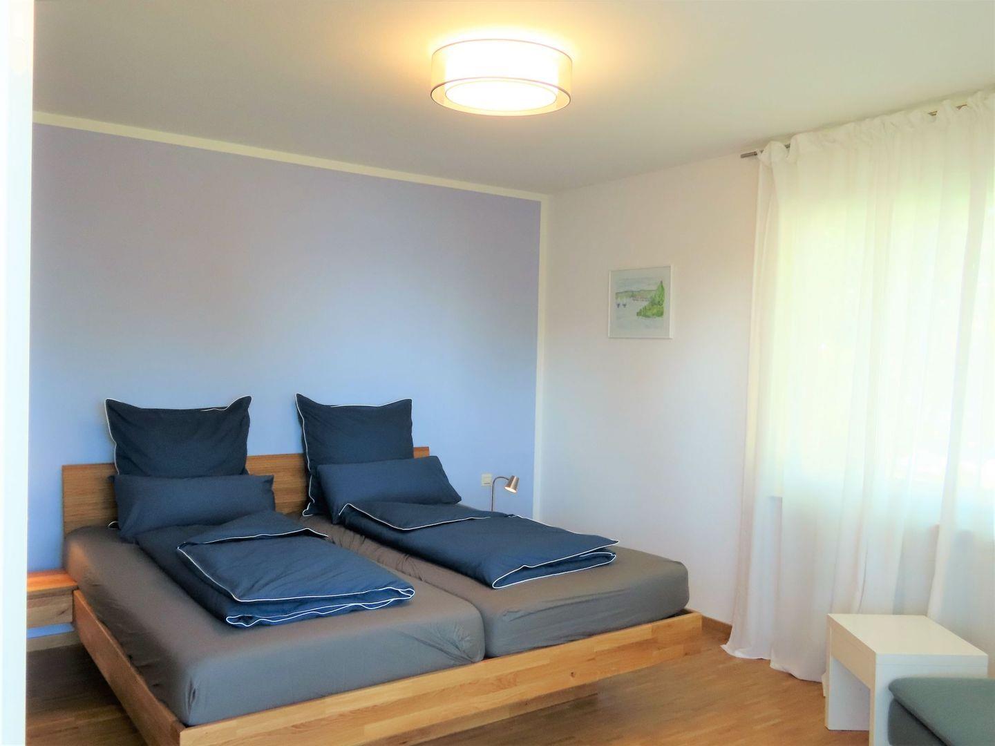 Ruhesuchende und Wassersportler finden hier das ideale Urlaubs-Zuhause. Sehr ruhig gelegen genießen Sie den Blick auf den See und die Schweizer Alpen vom Balkon oder im Garten mit Naturstrand. Die großzügigen Räume bieten ausreichend Platz für Paare oder Familien für erholsame Ferientage. Der weiträumige Balkon lädt ein zum Frühstück in der Morgensonne. Gemeinsames Kochen macht dank der neu eingebauten Küche viel Spaß. Nur analoge TV-Sender. Die Ortsmitte mit den Restaurants und dem Schiffsanleger erreichen Sie in wenigen Gehminuten. Ein Supermarkt, ein Fischhändler, verschiedene Hofverkäufe und ein familienfreundliches Strand- und Hallenbad befinden sich ebenfalls im Ort.