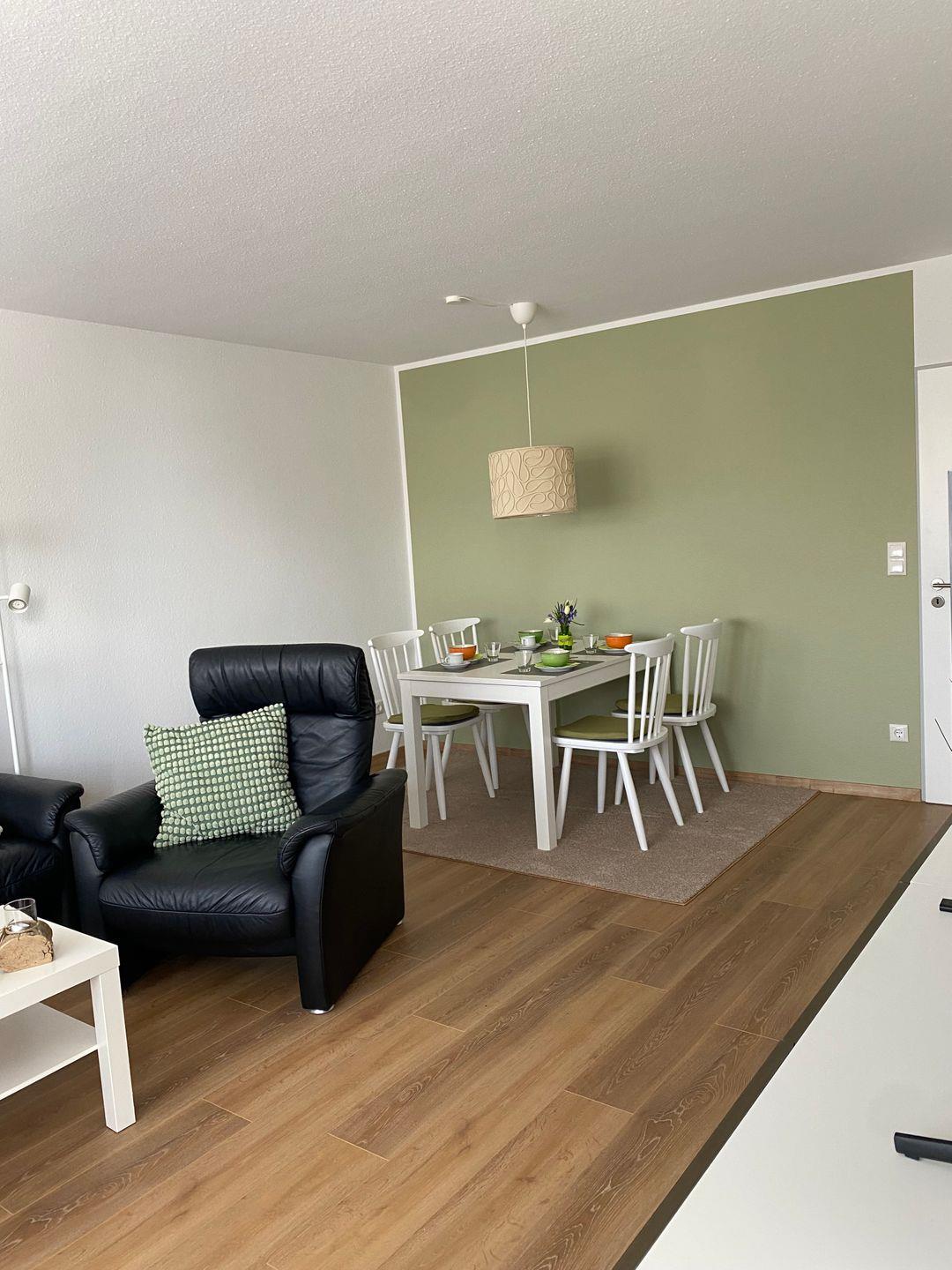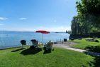 In ruhigen Naturtönen stilvoll eingerichtet, sorgt Ihr Urlaubszuhause für entspannte und erholsame Tage. Highlight ist das idyllische Seegrundstück, das allen Hausgästen offensteht. Mit verschiedenen Sitzgelegenheiten, Liegen und einem Naturkiesstrand. Sie baden in Trinkwasserqualität mit Blick auf die imposanten Schweizer Berge gegenüber. Nach einem erlebnisreichen Tag lässt sich der Abend dort im Sonnenuntergang verbringen oder komfortabel auf dem großzügigen Sofa. Ein zusätzlicher Fernseher befindet sich in einem der Schlafzimmer. Drei neu gestaltete Schlafzimmer bieten ausreichenden Komfort und Stauraum bis zu 4 Personen. Gut frühstücken mit leckeren Brötchen von der Dorfbäckerei, lässt es sich auch auf dem geschützten Balkon mit Teilseesicht. Ihr PKW steht sicher auf dem Grundstück, Ihre Fahrräder in der benachbarten Garage.
