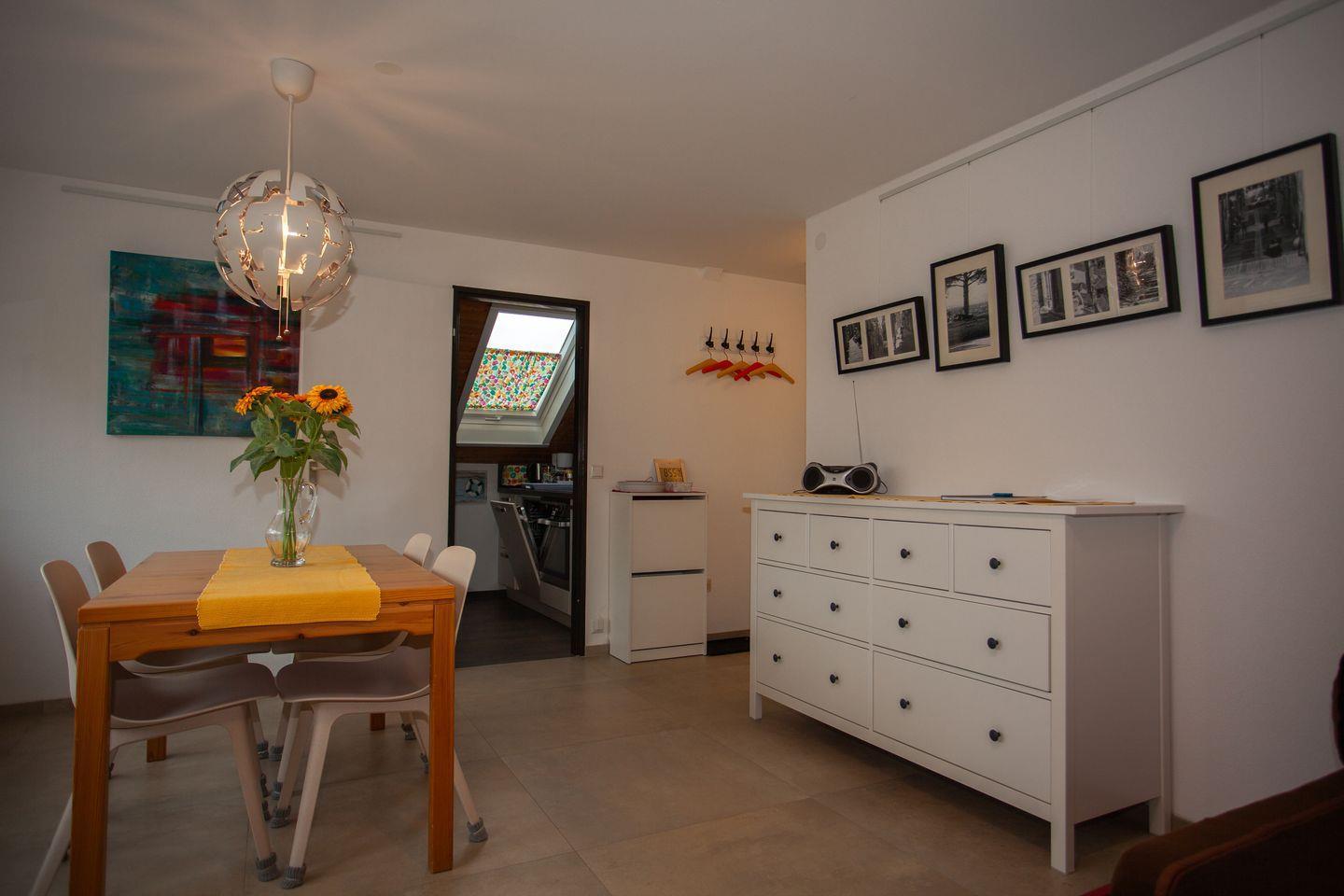 Die ca. 40 m² große Wohnung im Dachgeschoss verfügt über einen Flur, ein Badezimmer, eine abgeschlossene Küche mit moderner Einbauküche .Der großzügige Wohn-/Essbereich lädt zum Entspannen ein, während Waschtrockner im Bad zusätzlichen Komfort bieten. Ein Außenstellplatz gehört ebenfalls zur Wohnung.