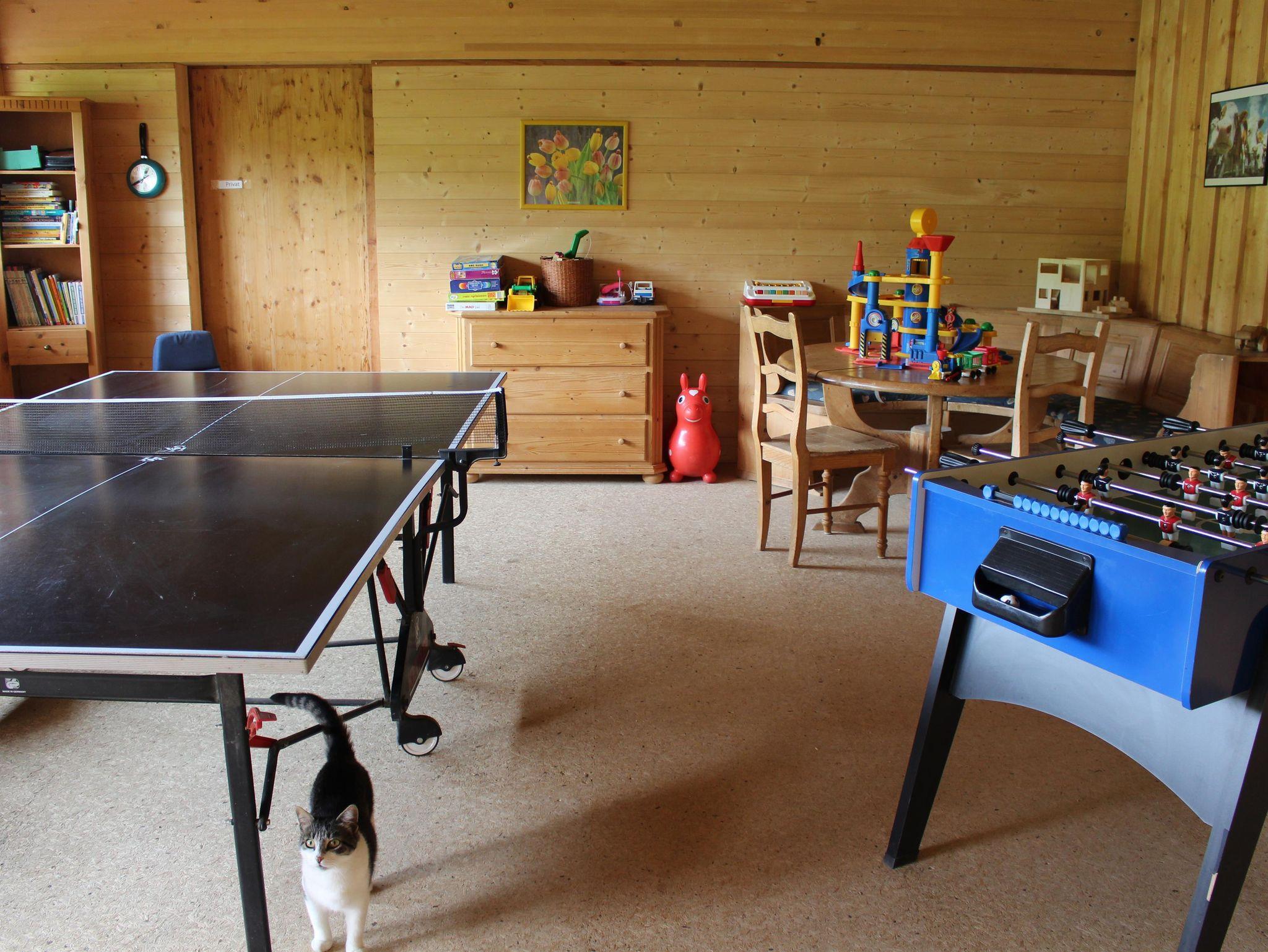Wir haben viele Streicheltiere auf unserem Bauernhof wie z.B. Katzen, Hasen, Ziegen, Schafe, Esel. Unsere Ochsen und Hühner lassen sich gerne bewundern und stehen für Urlaubsfotos bereit. Für unsere kleinen Gäste bieten wir viele Kinderfahrzeuge, wie z.B. Bobbycars, Traktoren, Dinofahrzeuge, Dreiräder usw. Für Teenager gibt es eine Tischtennisplatte und einen Kickerkasten. Hier kommt sicher keine Langeweile auf!
