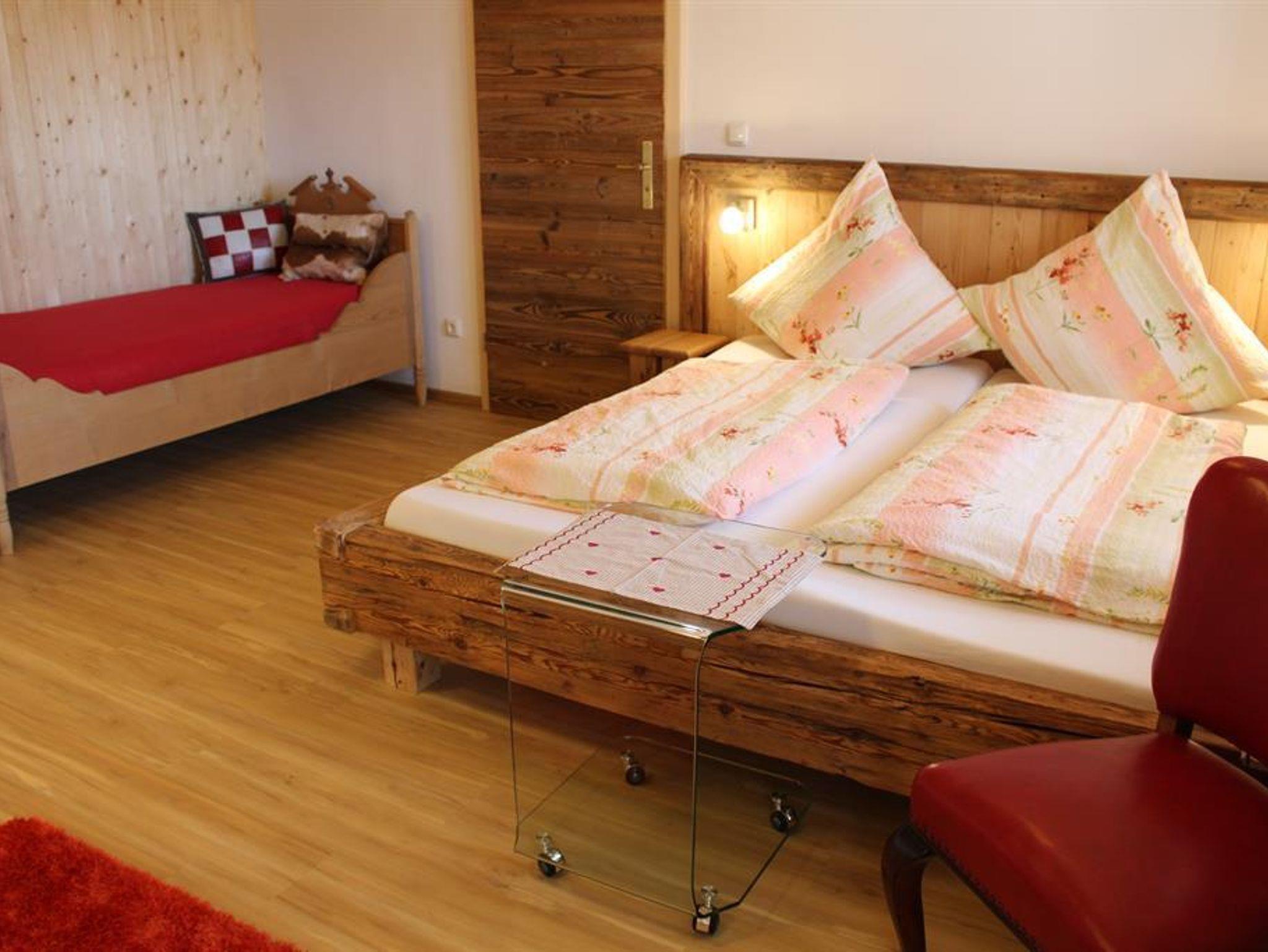 Sehr gemütliche Wohnung, mit 2 Schlafzimmern in Landhausstil und in Altholz. 2 Bäder jeweils mit WC und Dusche. Parkettböden, Holzdecken, Fussbodenheizung in einem Bad, großer Balkon, sep. Eingang für die Fewo´s, Fliegengitter, Toaster, Eierkocher, Kaffeemasch., Wasserkocher, Stand.gewürze, Kinderspiele, Kinderbücher, Kleinkinderfahrzeuge (Traktor, Bobbycar, Dreirad, usw.) vorhanden, Kikerkasten und Tischtennisplatte, große Spiellandschaft mit Sandkasten und Schaukel, 2 gr. Gokards Grillplatz, 2 Liegestühle auf dem Bakon, Wasch.-u. Spülmasch. vorhanden viele Tiere (Katzen, Ochsen,Hasen, Hühner, Schafe, Ziegen, Esel, Enten) herrliche Berg-Panorama-Sicht, Wandermöglichkeit von der Ferienwohnung aus, 10 min Autofahrt zu zwei Seen. 20 min Autofahrt zum nächsten Skilift und Langlaufloipe, Rauchen nur auf Balkon.