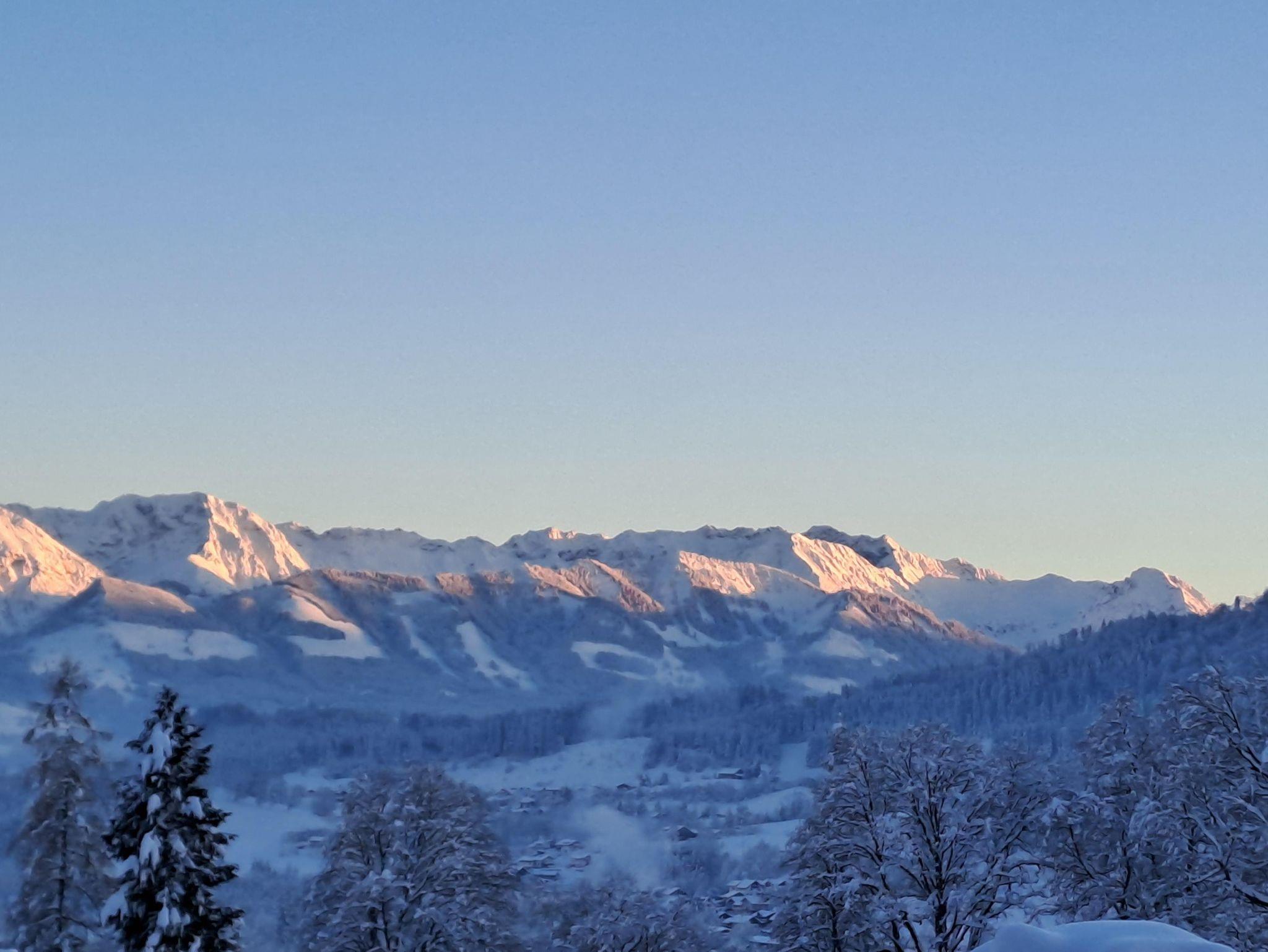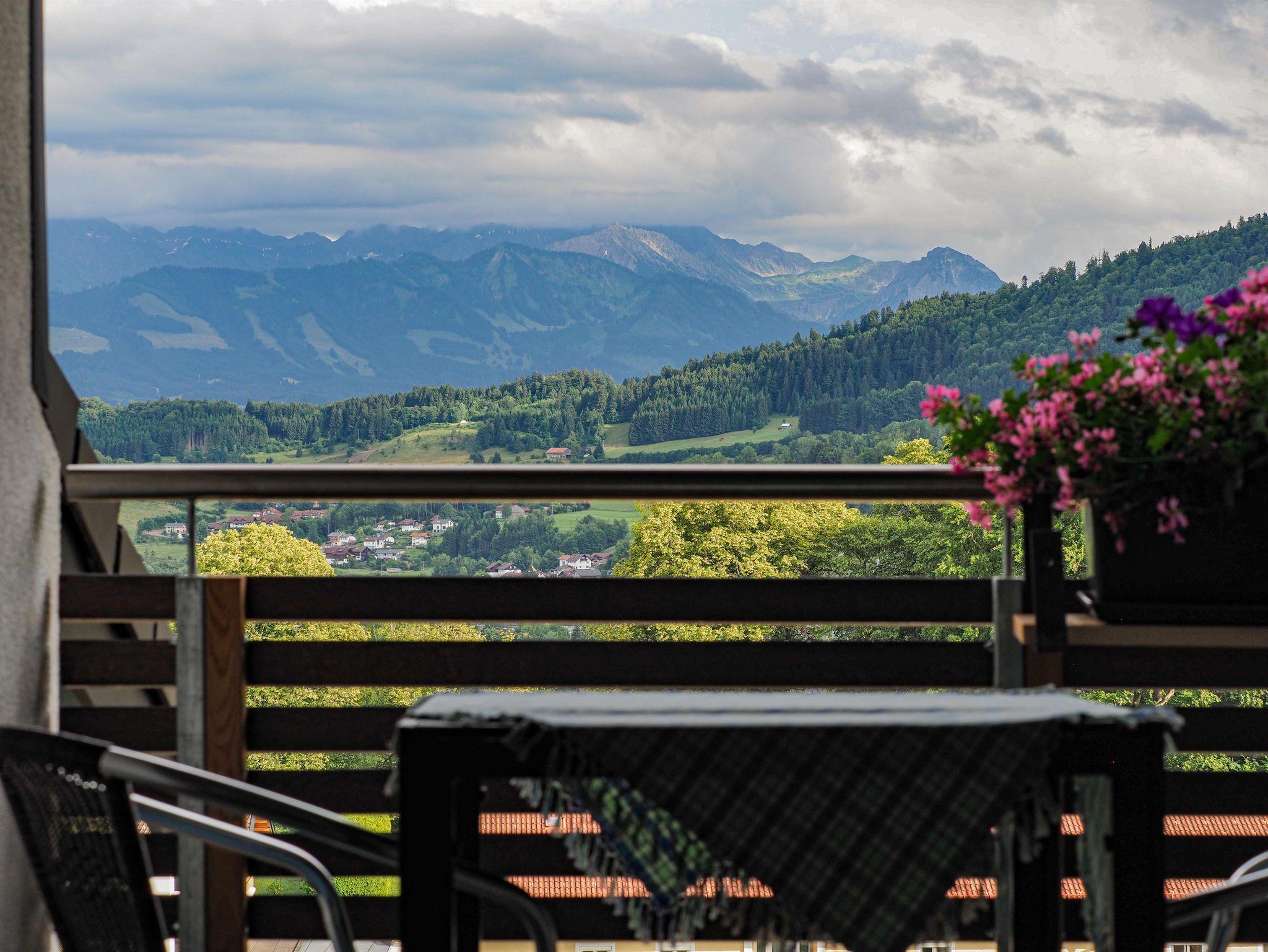 Vom Wohnzimmer gelangen Sie auf unseren Panorama Balkon, hier genießen Sie die großartige Aussicht der Oberallgäuer Berge.