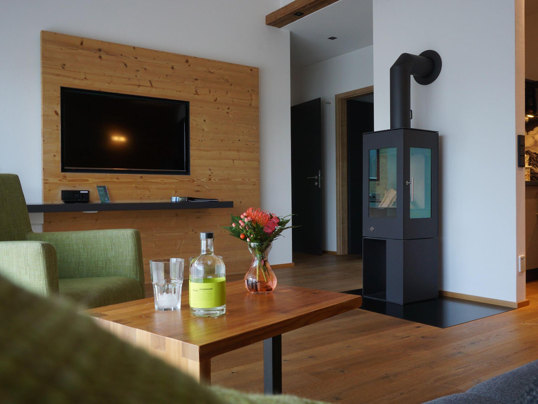 Unser luxuriöses Chalet bietet zwei Schlafzimmer, zwei Bäder mit Dusche bzw. Badewanne, eine voll ausgestatte Küchenzeile, Holzfußboden und einen Kaminofen.