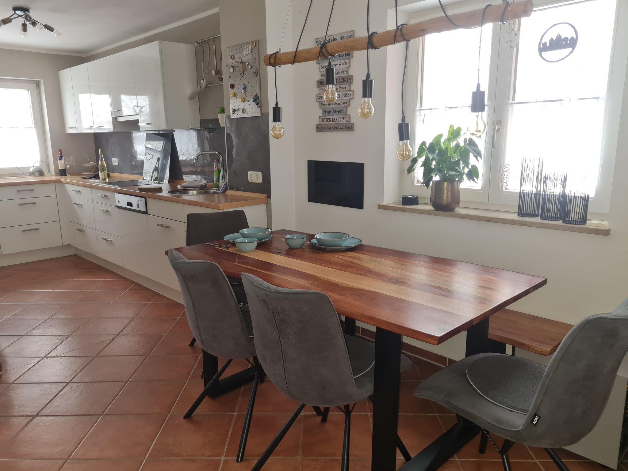 Unser charmantes Reiheneckhaus bietet viel Platz und eine ideale Lage für vielfältige Freizeitaktivitäten. Im Erdgeschoss erwartet Sie ein großzügiger Wohn- und Essbereich mit Schwedenofen, der zum Entspannen und Zusammensein einlädt. Die voll ausgestattete Küche lässt keine Wünsche offen, ergänzt durch ein praktisches Gäste-WC mit Dusche.
