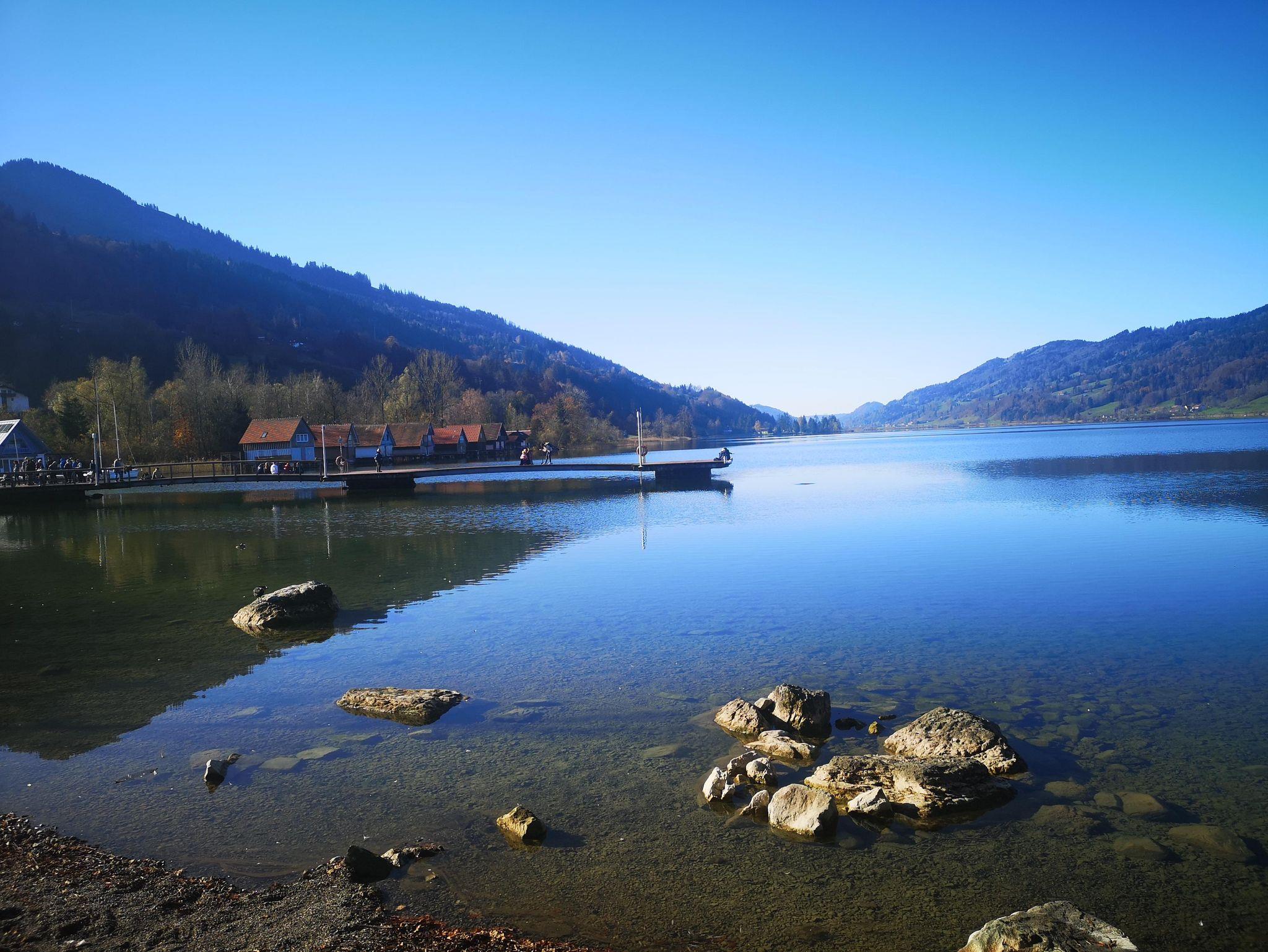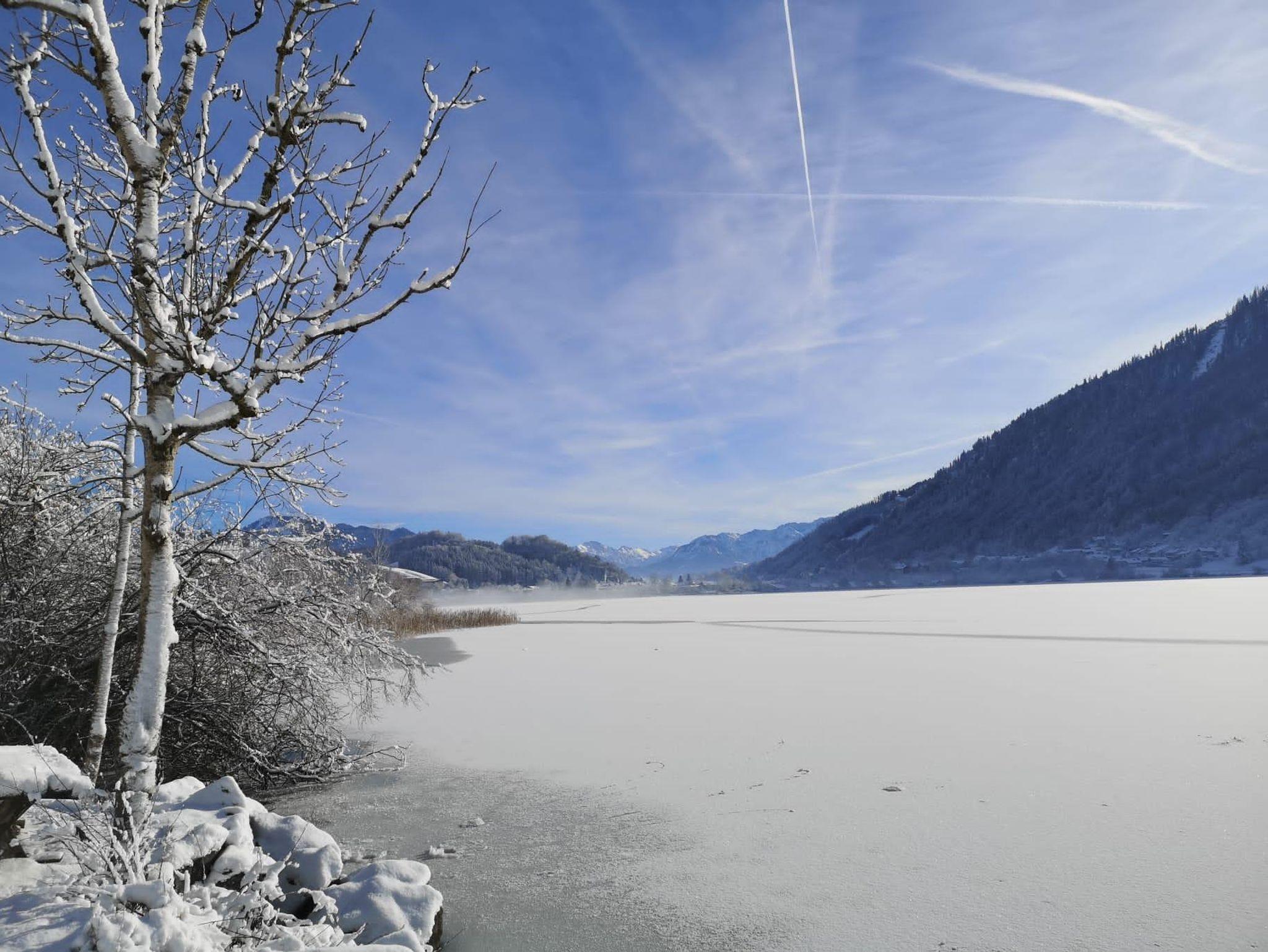 Der Große Alpsee ist in rund 20 Gehminuten erreichbar und bietet klares Wasser, traumhafte Aussichten und vielfältige Freizeitmöglichkeiten wie Baden, Stand-up-Paddling oder Spaziergänge am Ufer.