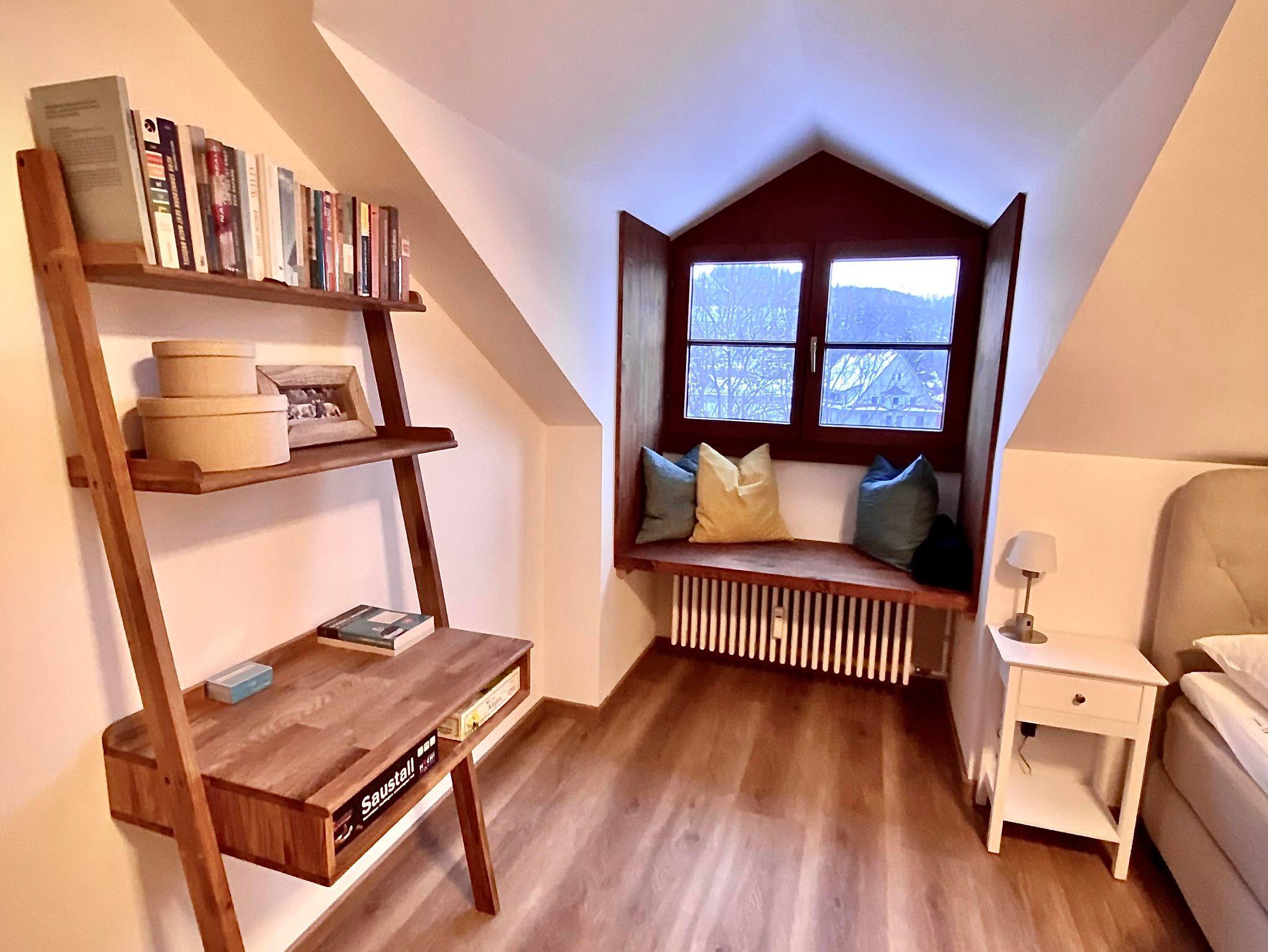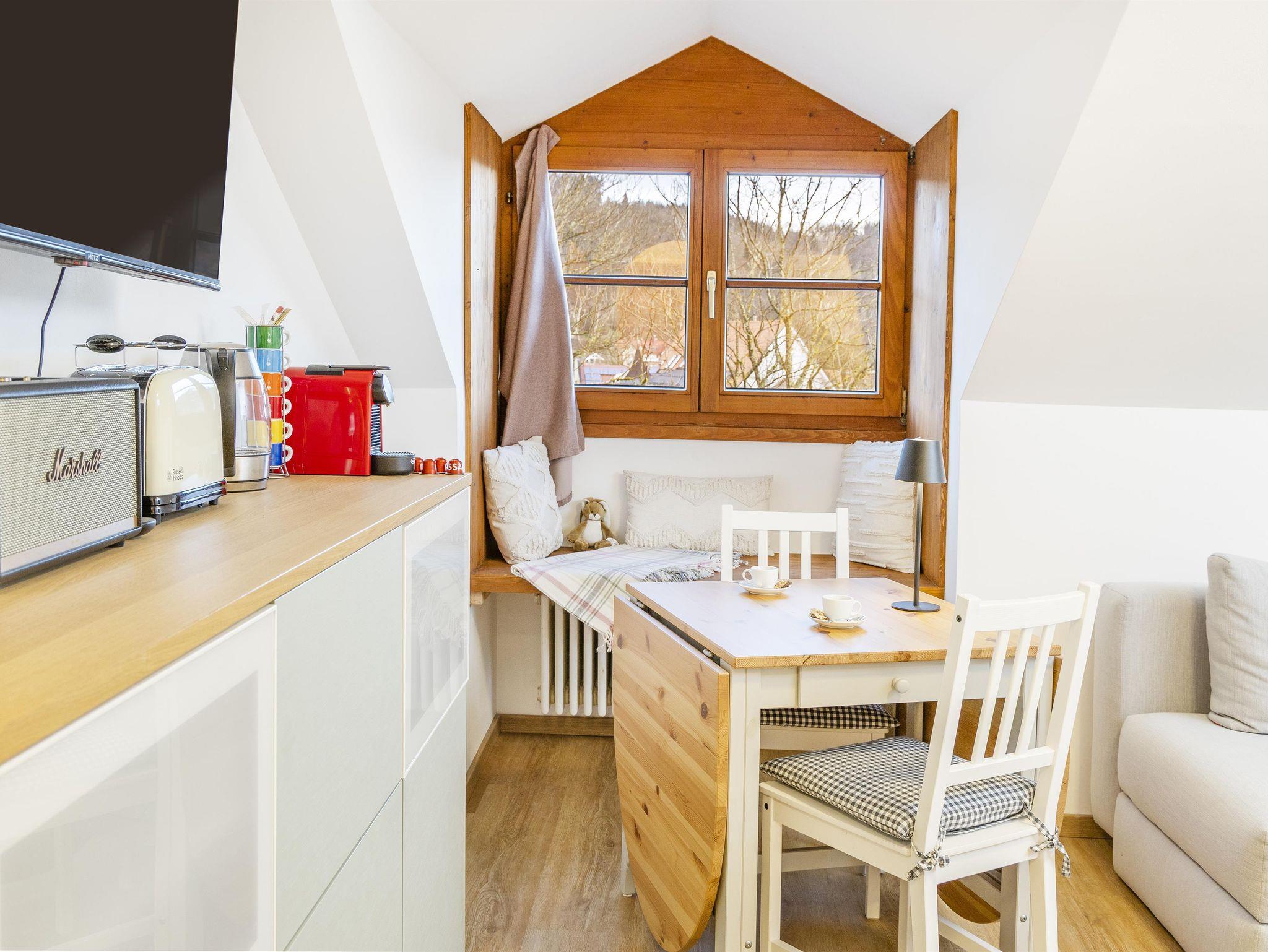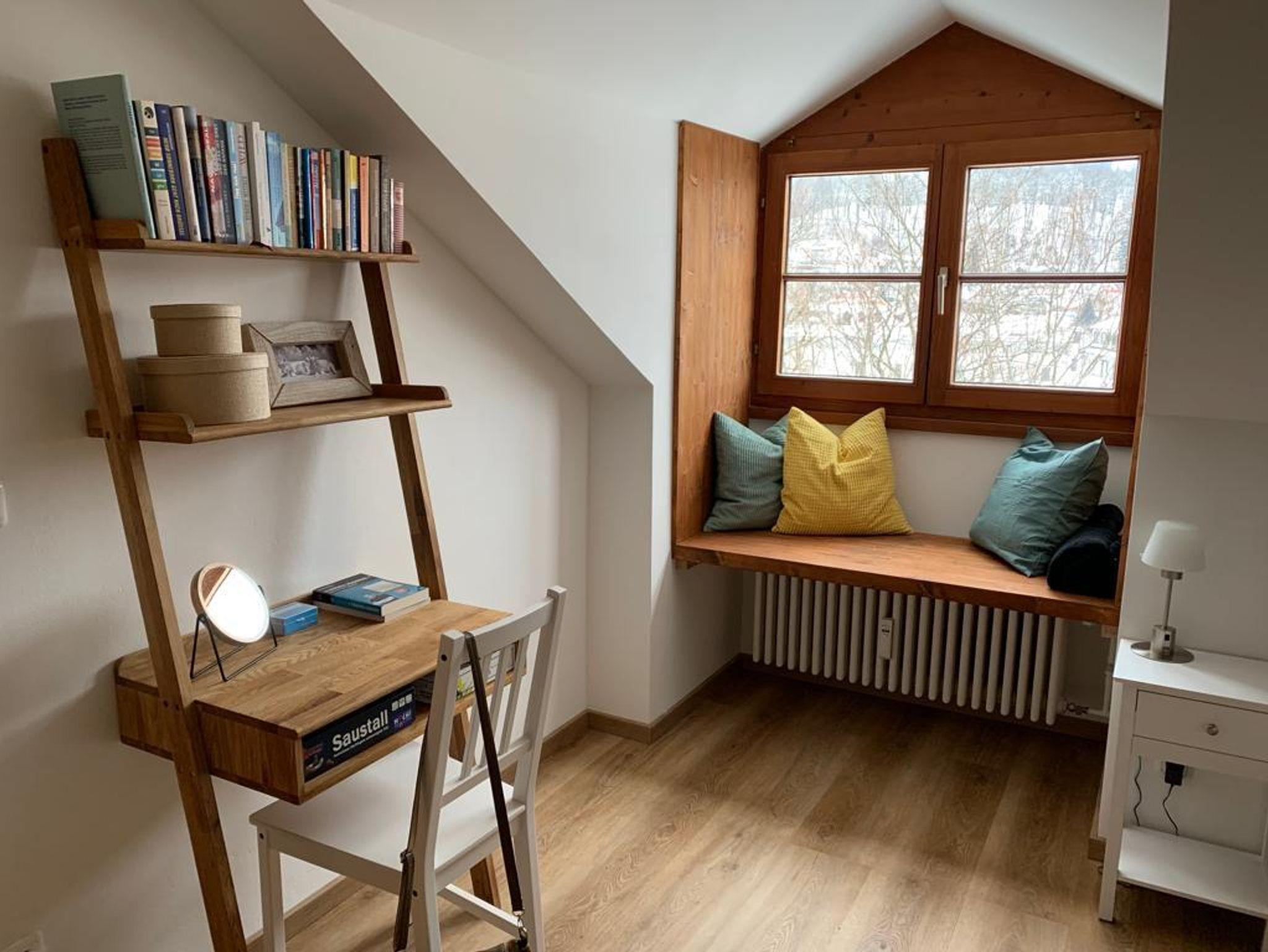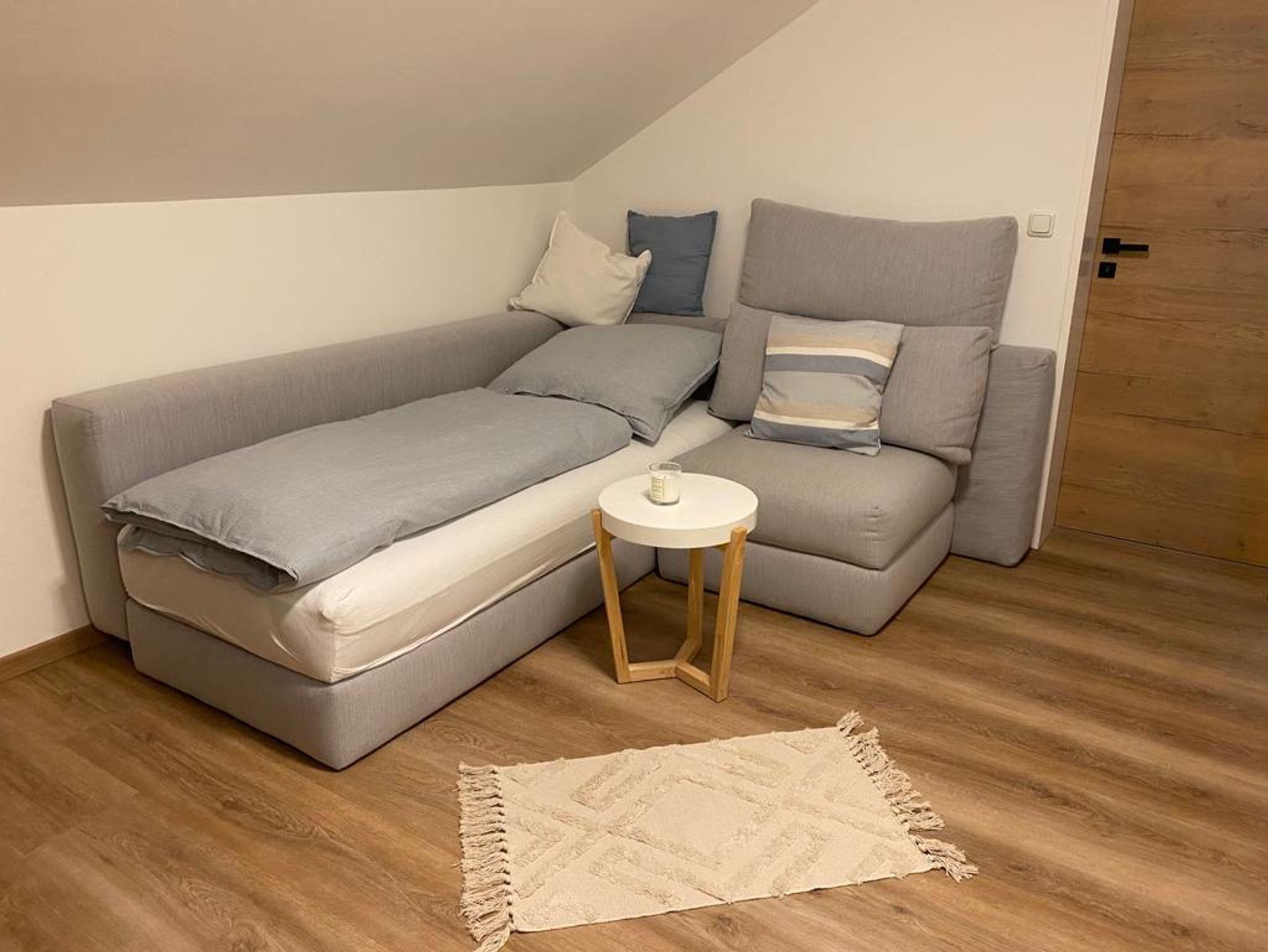 Herzlich Willkommen in unserer gemütlichen Ferienwohnung im Herzen von Immenstadt im Allgäu! Auf 35m² im Dachgeschoss erwartet Sie eine perfekte Auszeit vom Alltag. Die Wohnung verfügt über ein separates Schlafzimmer, in dem Sie sich nach einem ereignisreichen Tag im Allgäu zurückziehen und entspannen können. In den gemütlichen Kuschelkojen am Fenster können Sie Ihren Blick über die Dächer von Immenstadt schweifen lassen und den Tag ausklingen lassen. Das Wohn-Esszimmer ist mit einem gemütlichen Sofa ausgestattet, das bei Bedarf zu einem großen Doppelbett ausgeklappt werden kann und so bis zu zwei weiteren Gästen Platz bietet. Hier können Sie es sich bei einem guten Buch oder einem Film auf dem Flatscreen-TV gemütlich machen. Die Pantryküche ist mit allem ausgestattet, was Sie für die Zubereitung einer leckeren Mahlzeit benötigen. Die Nespressomaschine sorgt für den perfekten Kaffeegenuss am Morgen oder zwischendurch. Das Badezimmer mit seiner tollen Regendusche können Sie sich nach einem Tag voller Aktivitäten im Allgäu erfrischen. Wir laden Sie herzlich ein, unsere kleine, gemütliche Ferienwohnung in Immenstadt im Allgäu zu besuchen und sich vom Charme dieser Region verzaubern zu lassen. Wir freuen uns auf Sie!