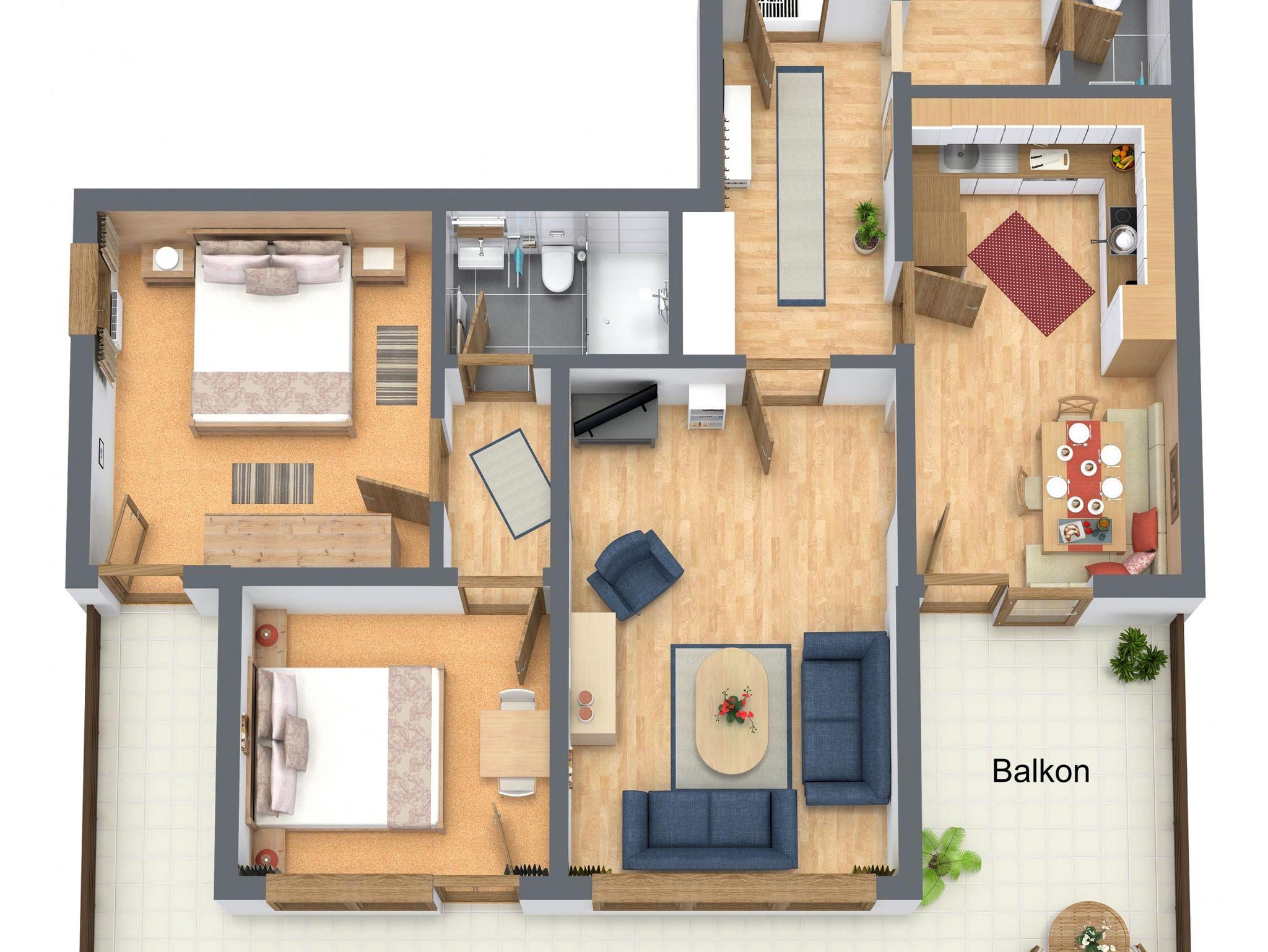 Die Ferienwohnung mit großer, komfortabel eingerichteter Wohnküche, gemütlichem Wohnzimmer, zwei Schlafzimmer getrennt und großes Bad, extra WC. Der große Südbalkon mit herrlichem Blick in die Berge lädt zum Erholen und Entspannen ein.