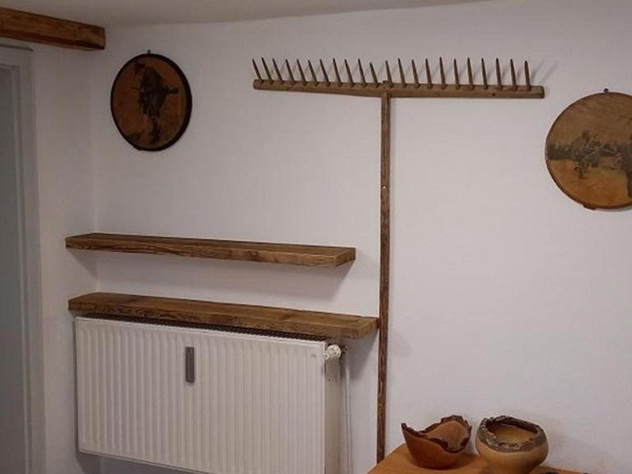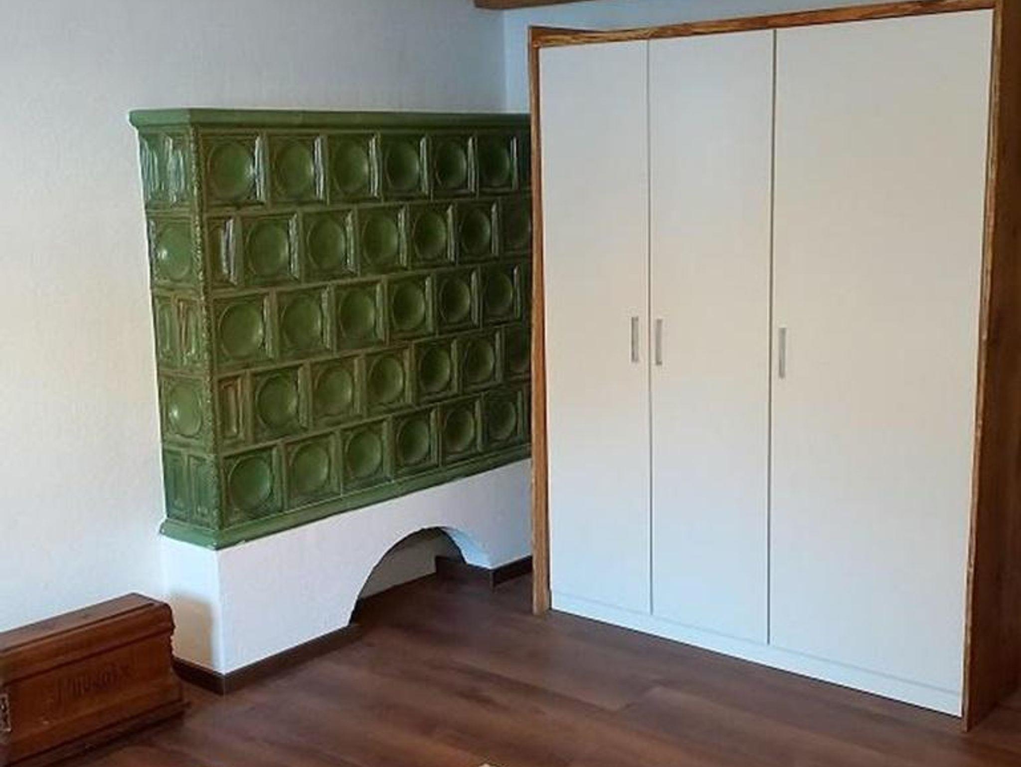 Der Esstisch bietet Platz für bis zu 8 Personen. (bei Buchung beider Wohnungen auch 10). Und in der Stube können Sie (müssen aber nicht) selbst den Kachelofen befeuern der Ihnen im Winter eine wollige Wärme schenkt.