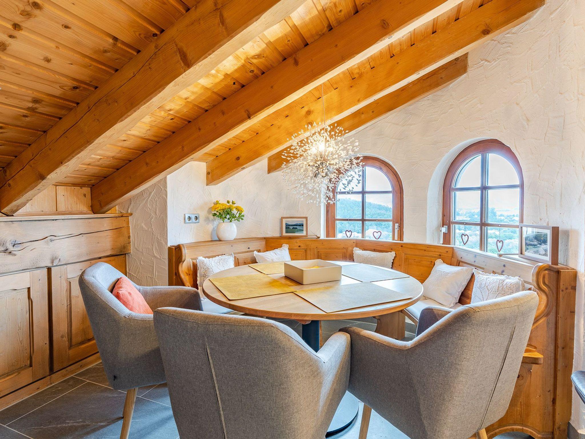 Die Ferienwohnung ist perfekt für den Urlaub mit Oma und Opa oder Freunden. Die drei Schlafzimmer verfügen über ein Doppelbett mit Kleiderschrank. Eine moderne Küche grenzt an den gemütlichen Essbereich mit Blick in die Berge, daß angrenzende Wohnzimmer mit Kaminofen und Bergblick komplettiert die Wohnung. Das Badezimmer mit Badewanne und separatem WC sowie einer Waschmaschine befindet sich auf der gleichen Etage.