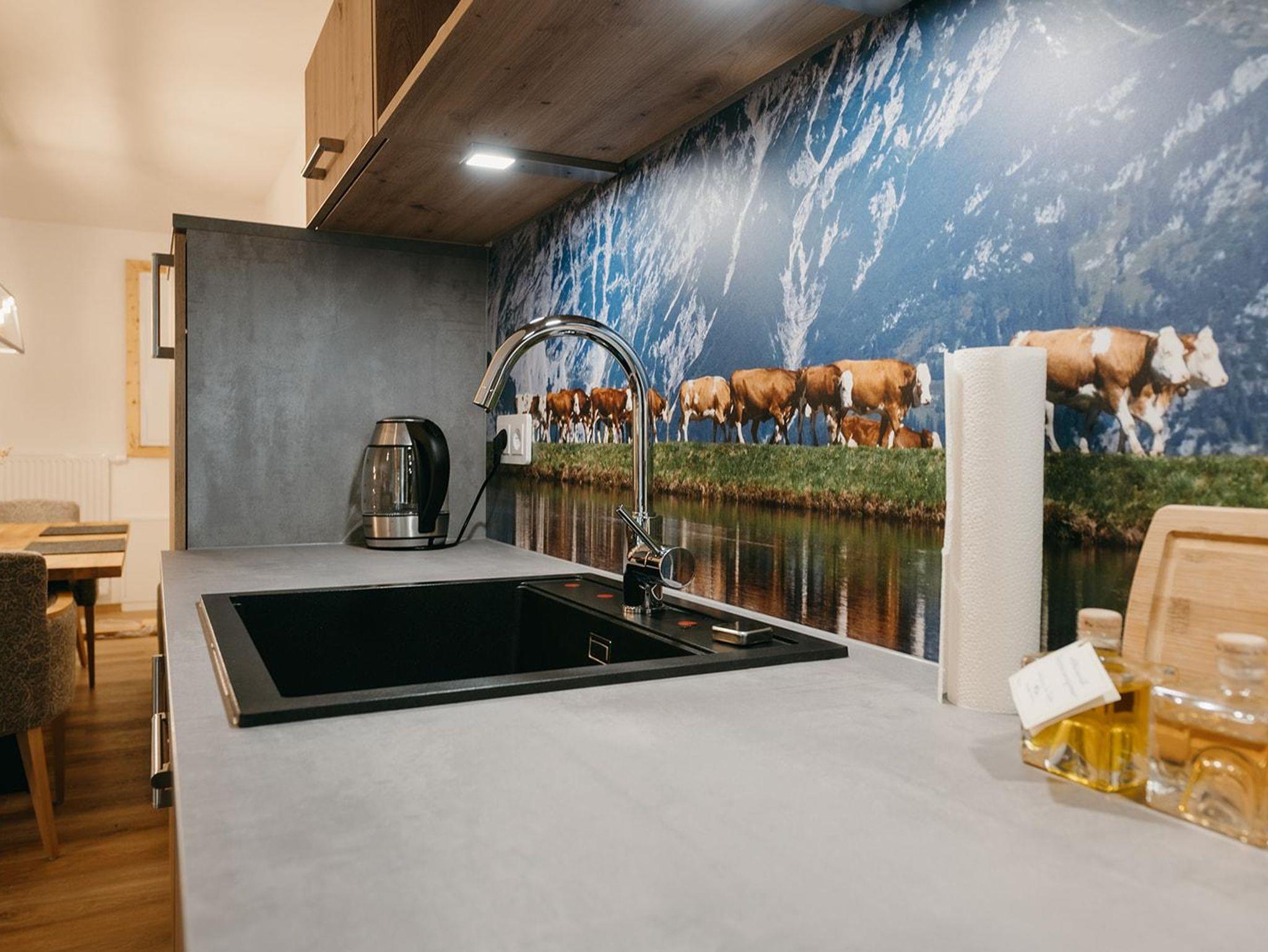 Im Inneren finden Sie in jeder Wohnung eine voll ausgestattete Küche, ideal zum Kochen Ihrer eigenen Mahlzeiten während Ihres Aufenthalts. Entspannen Sie sich nach einem langen Tag des Erkundens der schönen Allgäuer Region in der luxuriösen Whirlpool-Badewanne oder Sauna.