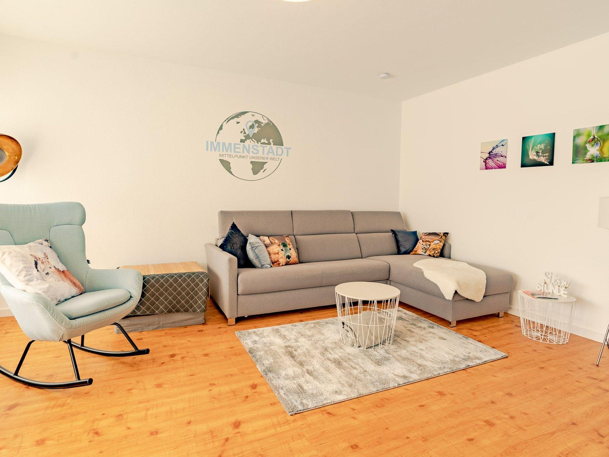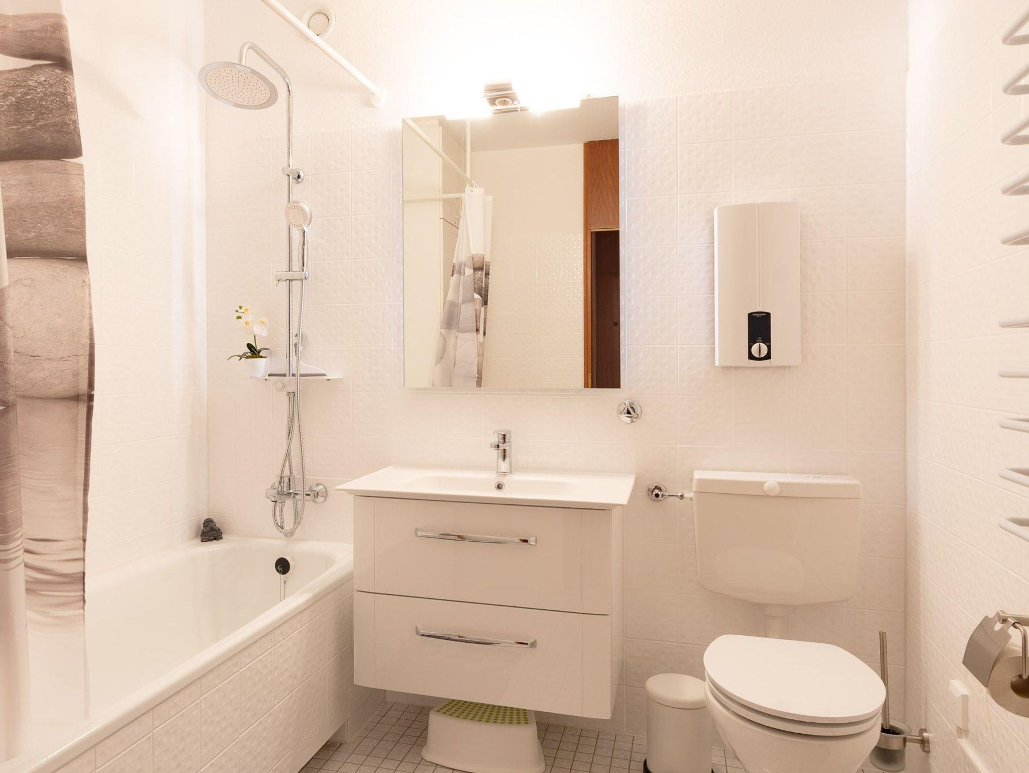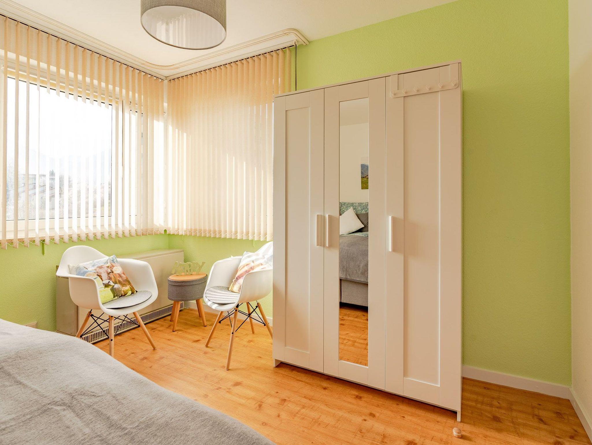 Der Wohnraum ist hell und modern eingerichtet. Sie finden hier eine gemütliche Sitzecke mit Couchtisch, wo Sie entspannen und das TV-Programm genießen können. Hier gelangen Sie auch auf den grosszügig angelegten Balkon, von welchem Sie eine phantastische, unverbaute Sicht in die Berge haben. Bei einem Gläschen Wein können Sie hier den Tag entspannt ausklingen lassen. Das Schlafzimmer ist mit einem Doppelbett und einem 3-türgen Kleiderschrank ausgestattet und bietet ausreichend Stauraum für Ihre Urlaubsgarderobe. Auch die geräumige Küche bietet Ihnen alle Möglichkeiten, um Ihr Talent als Hobbykoch zu erproben. Der schöne Essplatz in der Küche am Fenster lädt nicht nur zu den Mahlzeiten ein, sondern auch zum Spielen und Verweilen. Ebenfalls wird das schöne Bad Ihre Zustimmung finden.