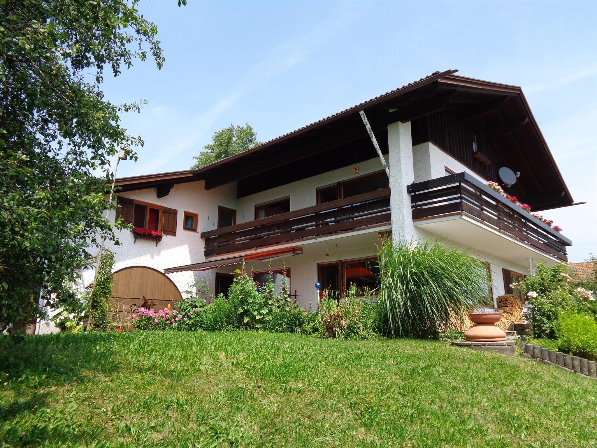 in Eckarts, Ortsteil von Immenstadt, finden Sie unser Haus mit wunderschönen Blick auf den Grünten und in die Allgäuer Hochalpen. Die großzügige Ferienwohnung (ca. 100 m²) liegt im 1. OG und hat einen großen Balkon auf der Süd- und Ostseite. Südseitig ist der Balkon überdacht. Unser Haus steht am Ortsrand von Eckarts.