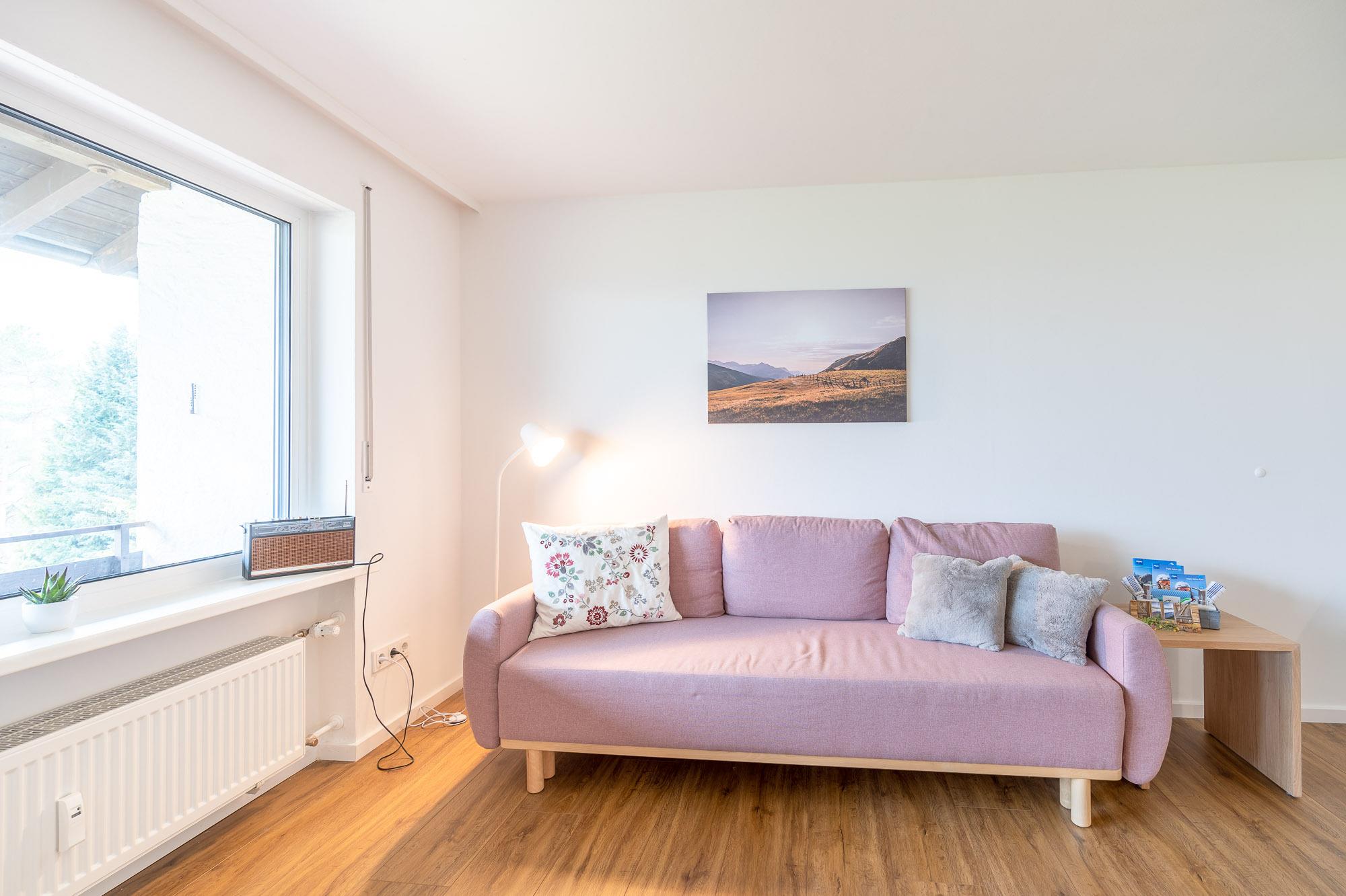 Die Wohnung verfügt über einen großen hellen Wohnraum mit gemütlichem Sofa und Panoramafenster, die in den Raum integrierte Küchenzeile bietet genügend Platz um auch im Urlaub einige Köstlichkeiten zubereiten zu können. Die kleine Essgruppe läd zum gemeinsamen genießen ein. Das neu gestaltete Badezimmer beinhaltet eine große Dusche, ein WC und einen schönen Waschtisch mit großem Spiegel. Im Schlafzimmer befindet sich ein bequemes Doppelbett und ein geräumigen Kleiderschrank.