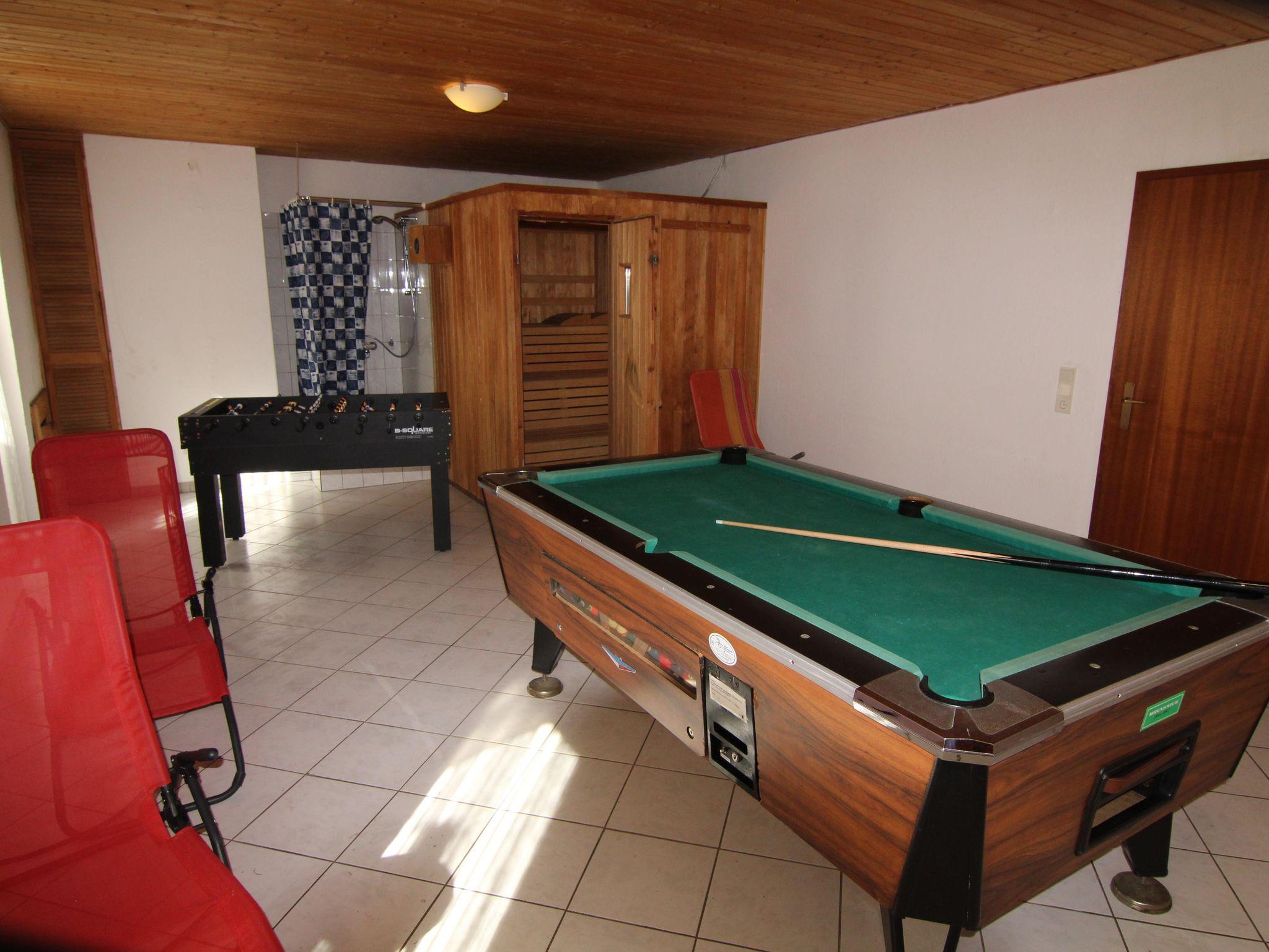 Auf der Gemeinschaftsterrasse und dem Gelände rund um unsere Ferienhäuser befinden sich eine Tischtennisplatte und ein Kinderspielplatz mit Schaukel und Rutsche, eine Kletterwurzel sowie Sitzgelegenheiten im Grünen. Im Freizeitraum im Nebenhaus gibt es einen Billardtisch und einen Tischkicker zur kostenlosen Nutzung sowie eine Sauna.