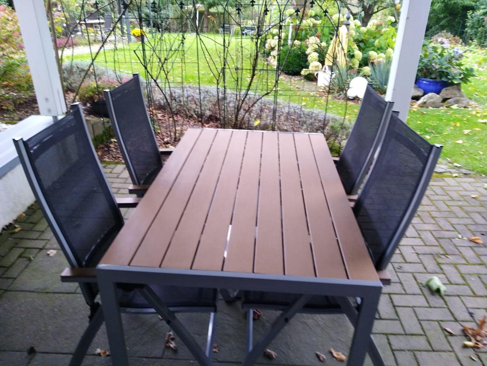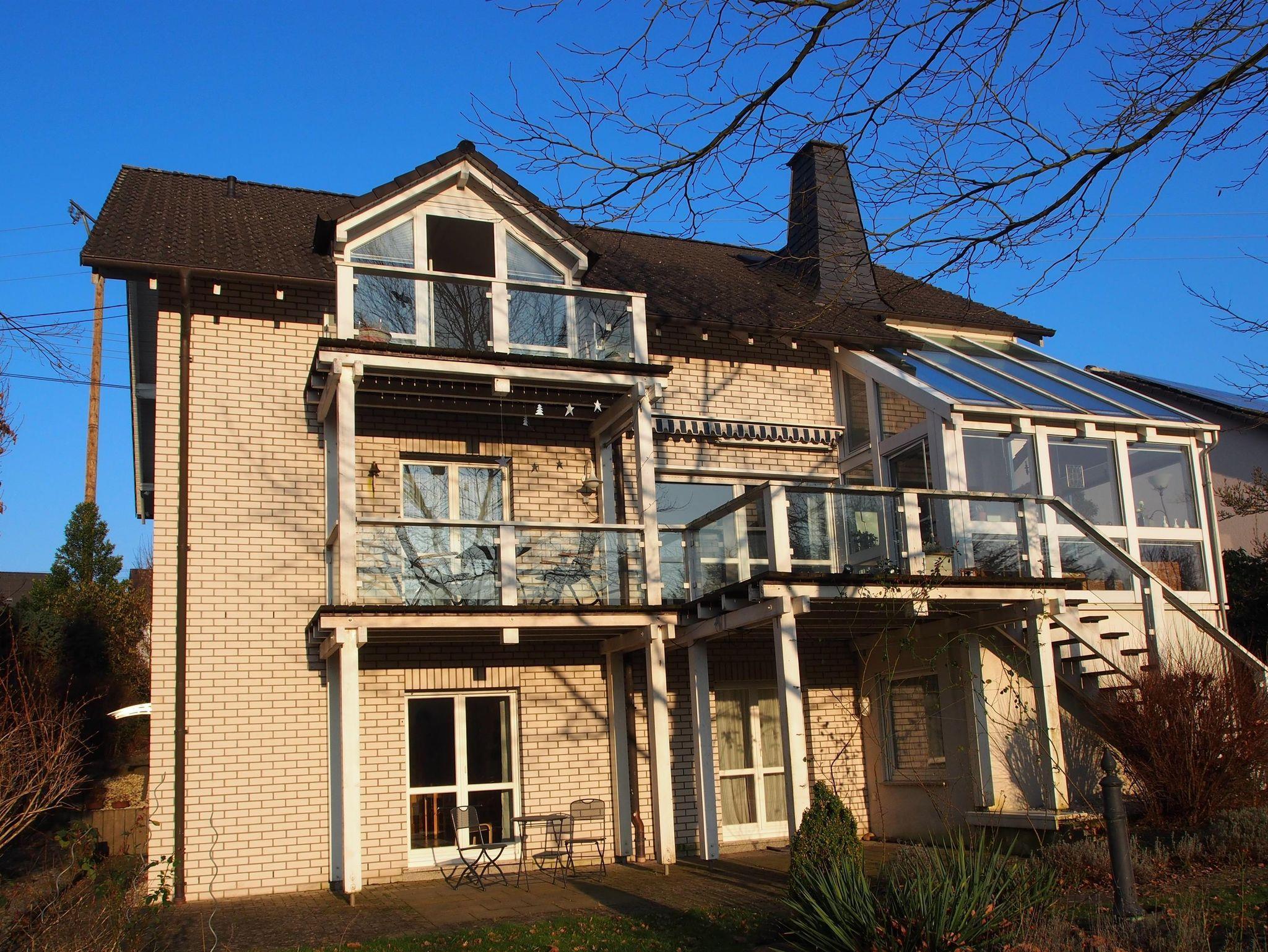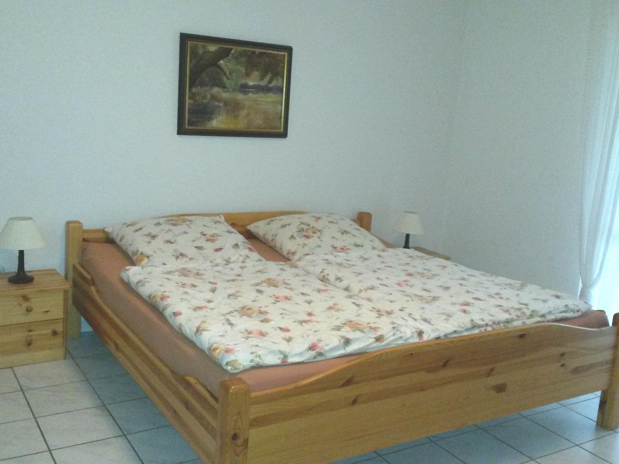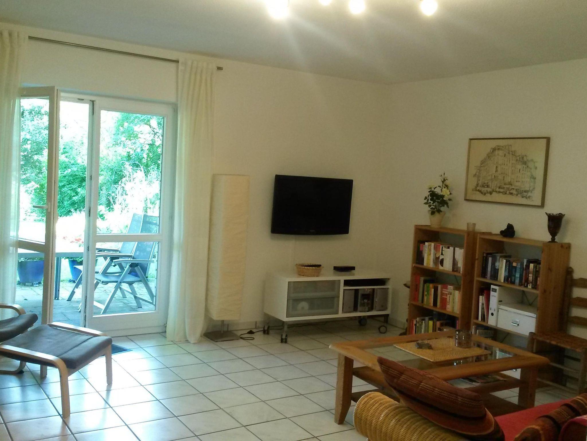 Die Wohnung ist gefliest und hat Fußbodenheizung. Vom Schlafzimmer und Wohnzimmer gehen Türen auf die große Terrasse (36 m²). Von hier aus sieht man in den Garten (2000 m²).