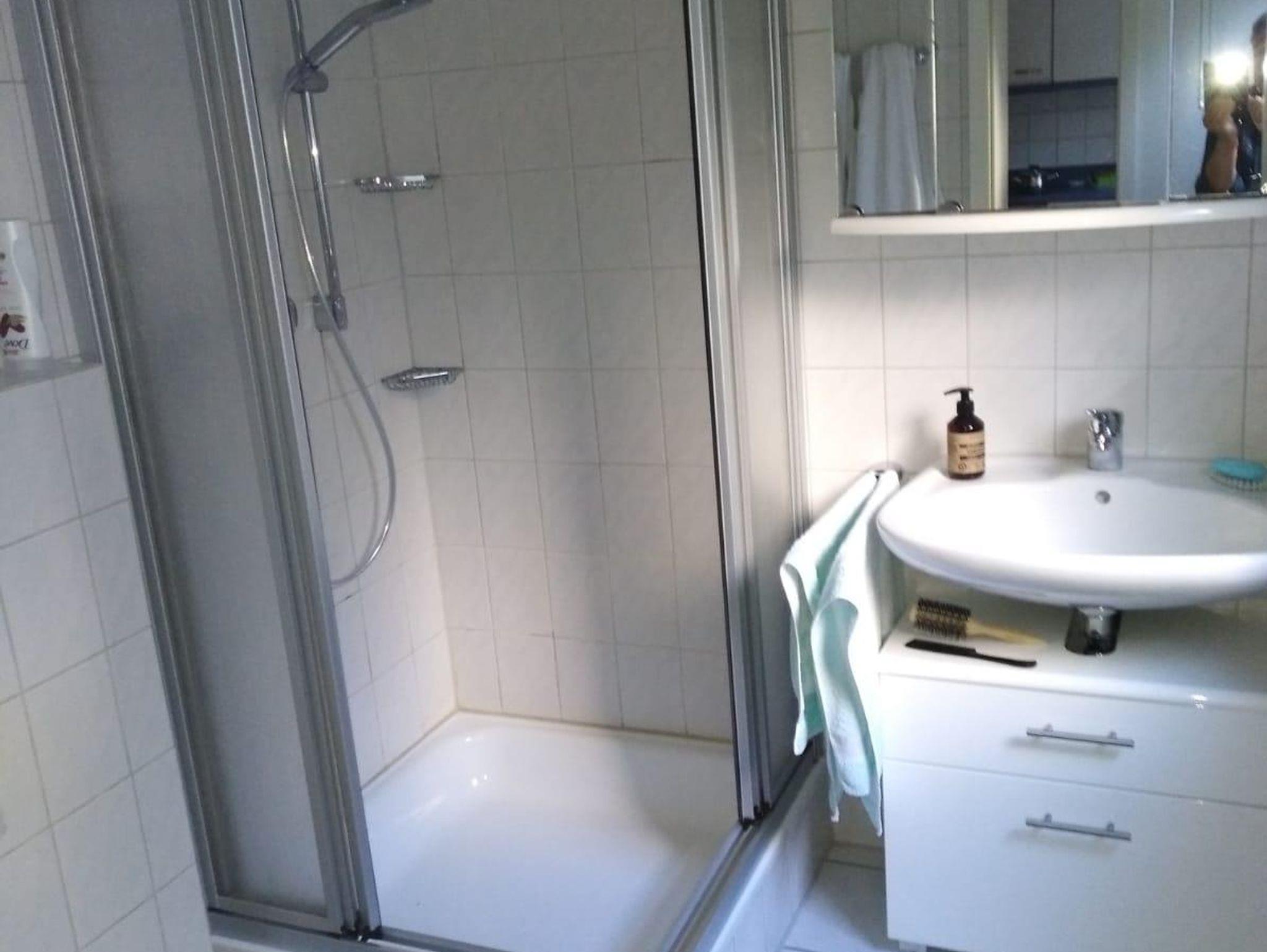Die Wohnung hat ein modernes Duschbad mit bequemem Einstieg, WC und Waschbecken. Außerdem ist noch eine kleine Diele mit Flurgarderobe vorhanden.