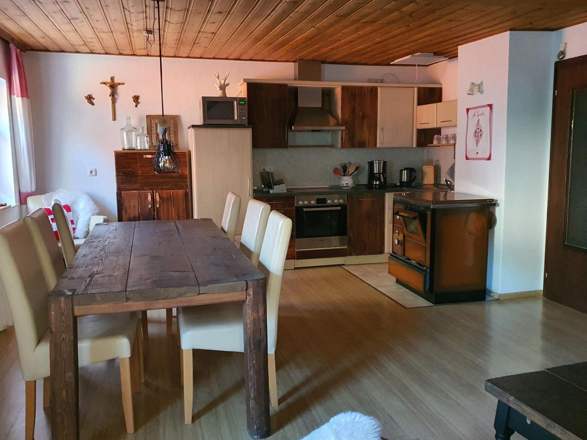1 große Wohn- und Essküche ist der gemütliche Mittelpunkt Ihres Urlaubsdomizils, der große schwere Holztisch bietet genügend Platz